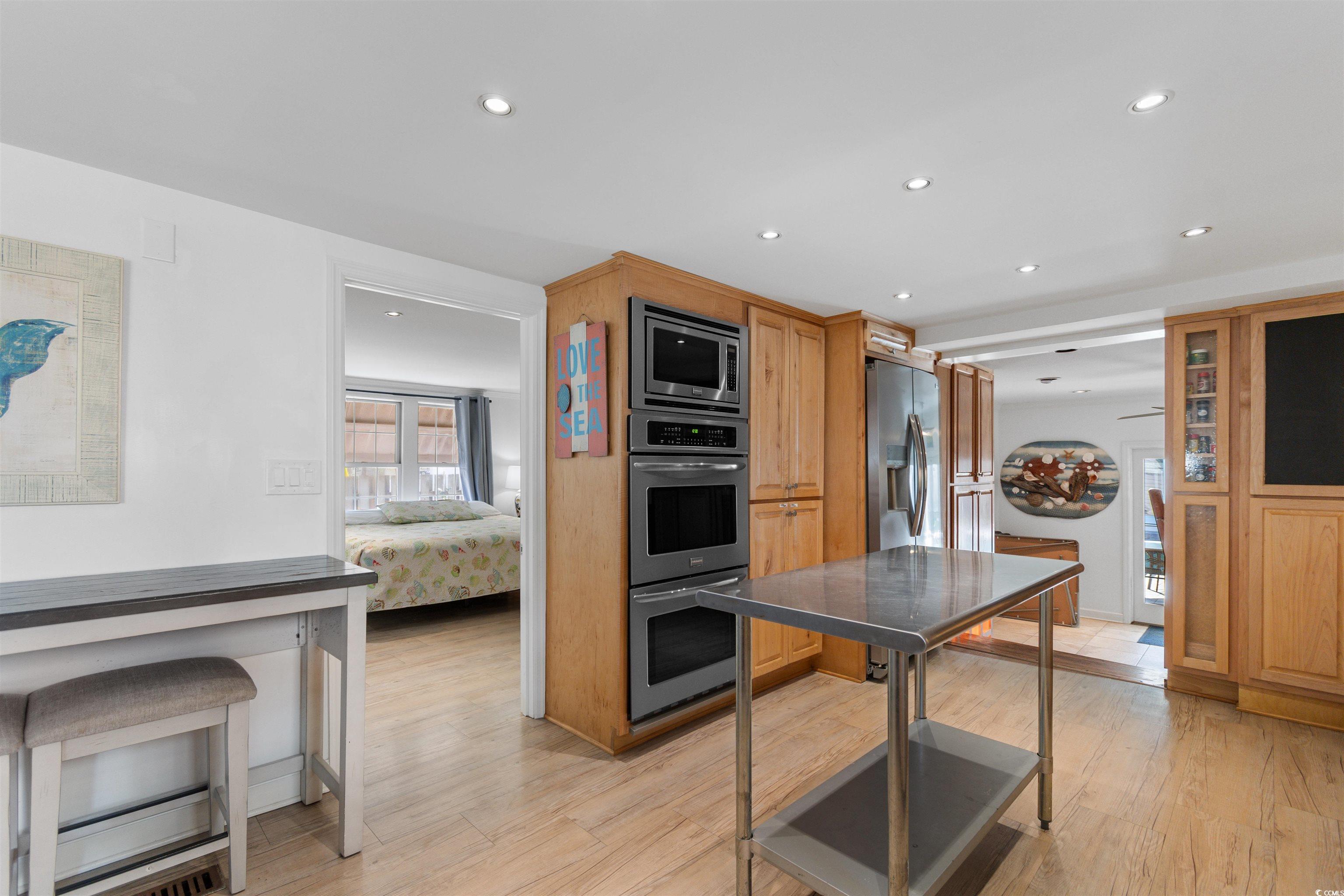Coastal Living at Its Finest! Versatile Home in Crescent Beach - nestled just moments from the sandy shores of Crescent Beach, this stunning two-story home offers the perfect blend of comfort, convenience, and investment potential. Whether you are searching for a spacious primary residence with the ease of an elevator or a duplex with incredible rental income potential, this 7-bedroom, 4-bathroom property is designed to fit your lifestyle. Step inside and discover thoughtfully designed spaces on both levels. The first floor has been beautifully renovated, featuring luxury vinyl plank flooring, fresh walls, a gas stove, walk-in shower, and a dedicated office space. Upstairs, the expansive second floor includes a master suite, sitting area, private office, and a stackable washer/dryer, making it ideal for relaxed, everyday living or a turnkey rental. This home is as functional as it is beautiful, with 42-inch cabinets, sleek solid surface countertops, stainless steel appliances, and smooth ceilings throughout. With five TVs on each level, entertaining is effortless, whether you're hosting guests or welcoming vacation renters. Step outside and enjoy your own private oasis with a heated saltwater pool, outdoor shower, and a spacious 15x12 covered back porch set the scene for endless coastal memories. The backyard also features plenty of storage, a well-maintained storage area, and ample parking for a golf cart, motorcycle, or even a boat. For added peace of mind, this home is equipped with a whole-home generator powered by propane, ensuring you'll never be without power. The gas fireplace, gas stove and tankless hot water heater upstairs add to the efficiency and comfort of this incredible property. With private entry options via the exterior staircase or interior elevator, this home provides flexibility, privacy, and the potential for multi-generational living or a high-yield rental investment. Surrounded by lush landscaping and coastal charm, this is a rare opportunity to own a slice of paradise in North Myrtle Beach. Live in one unit, rent the other, or enjoy the entire home as your personal retreat. The possibilities are endless! Schedule your private showing today. **ALL SHOWINGS MUST BE ACCOMPANIED BY ACTIVE SC REAL ESTATE LICENSEE.**