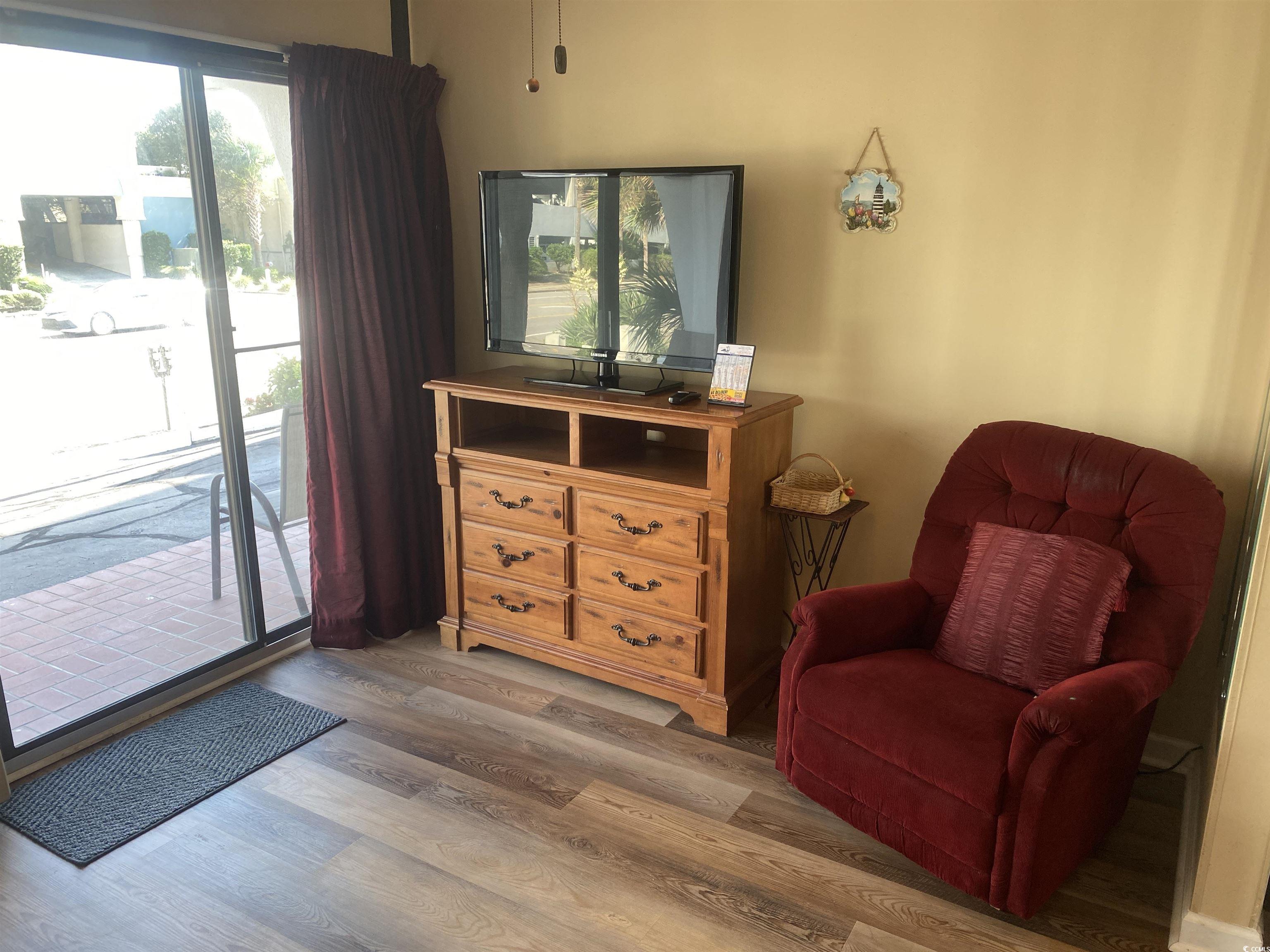 Great Location! Great getaway condo located conveniently on South Ocean Blvd across from the beach. 1 bedroom unit (suit style/walkthrough bedroom). Low HOA dues include basic utilities and building insurance. The unit features a full kitchen/Livingroom combo that sleeps 4. Front Desk rental program is available. Property features outdoor pool and hot tub along with picnic/grill area. Listing agent is closely related to seller. Sq Footage and all measurements are approximate and not guaranteed. Buyer is responsible for all measurements.