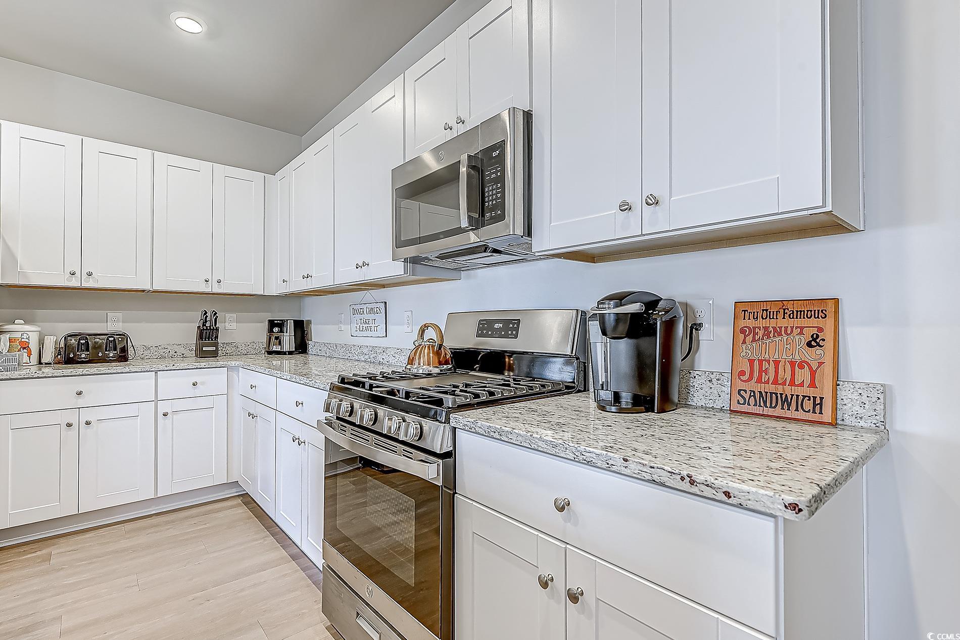 This in in a Natural Gas Community!! Imagine yourself in this charming 3-bedroom, 2-bathroom home, perfectly designed for comfort and ease. Why buy new when you can move into this home that already has everything. Gutters, Fenced yard, Blinds, Fridge, Washer, Dryer, new kitchen faucet, ceiling fans in all the rooms, and a storm door. Step inside to discover a bright and inviting living space, enhanced by granite countertops in the kitchen and ceiling fans in every room to keep you cool year-round, but the real gem of this home awaits outdoors! Enjoy your morning coffee or evening meals on the covered back porch, overlooking a fenced-in backyard that offers both privacy and a fantastic view of the serene pond. It's the ideal spot for entertaining, gardening, or simply relaxing with loved ones. You'll also have access to a beautiful community pool, perfect for those hot summer days or simply unwinding after a long week. This home offers the perfect blend of indoor comfort and outdoor enjoyment. This is really a family friendly neighborhood that organizes events like pool opening party, cookie swaps, game night, pool aerobics, yard sales and golf cart parades. This home is close to shopping, restaurants, and doctors only 16 minutes. The Beach is only 14 minutes away.