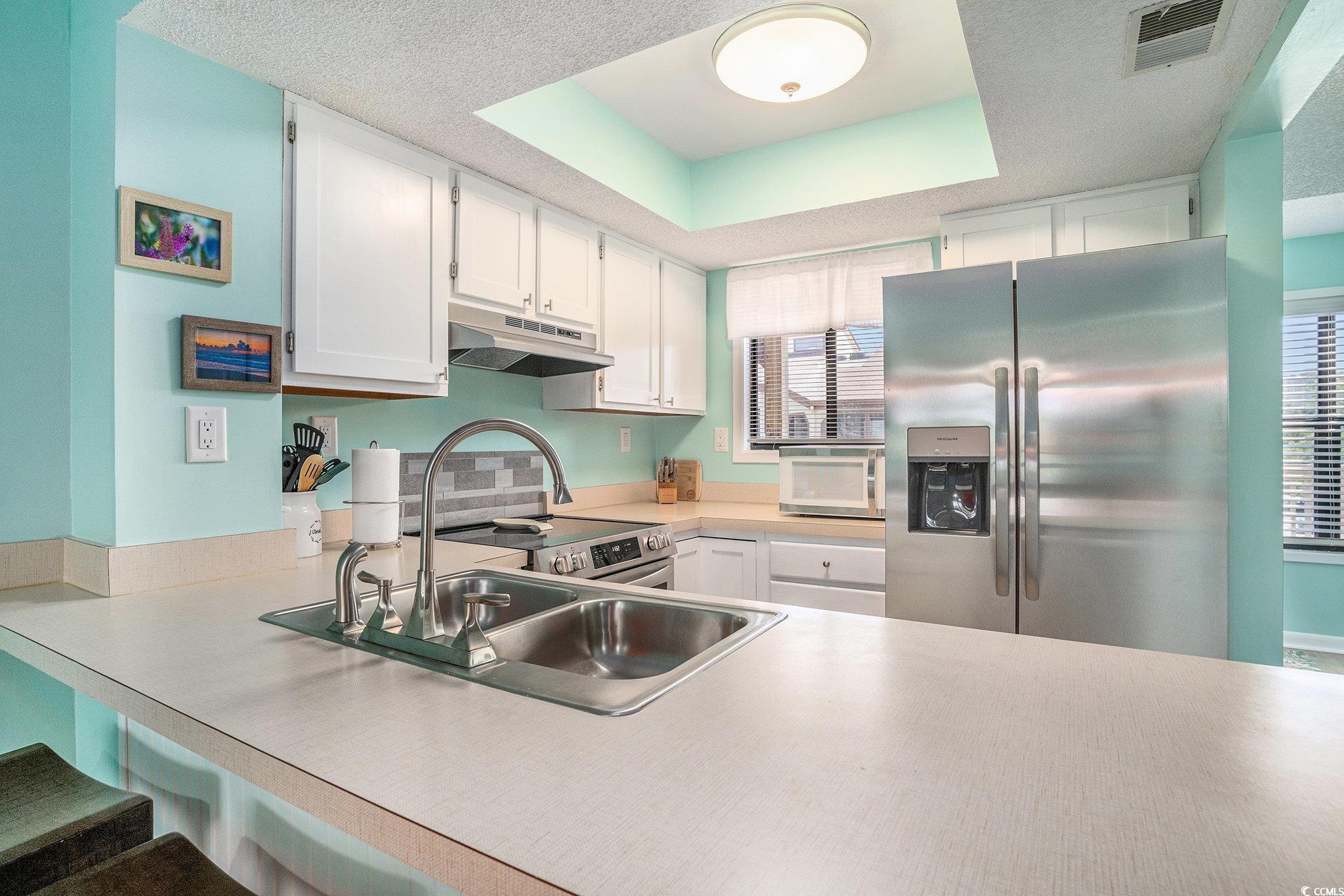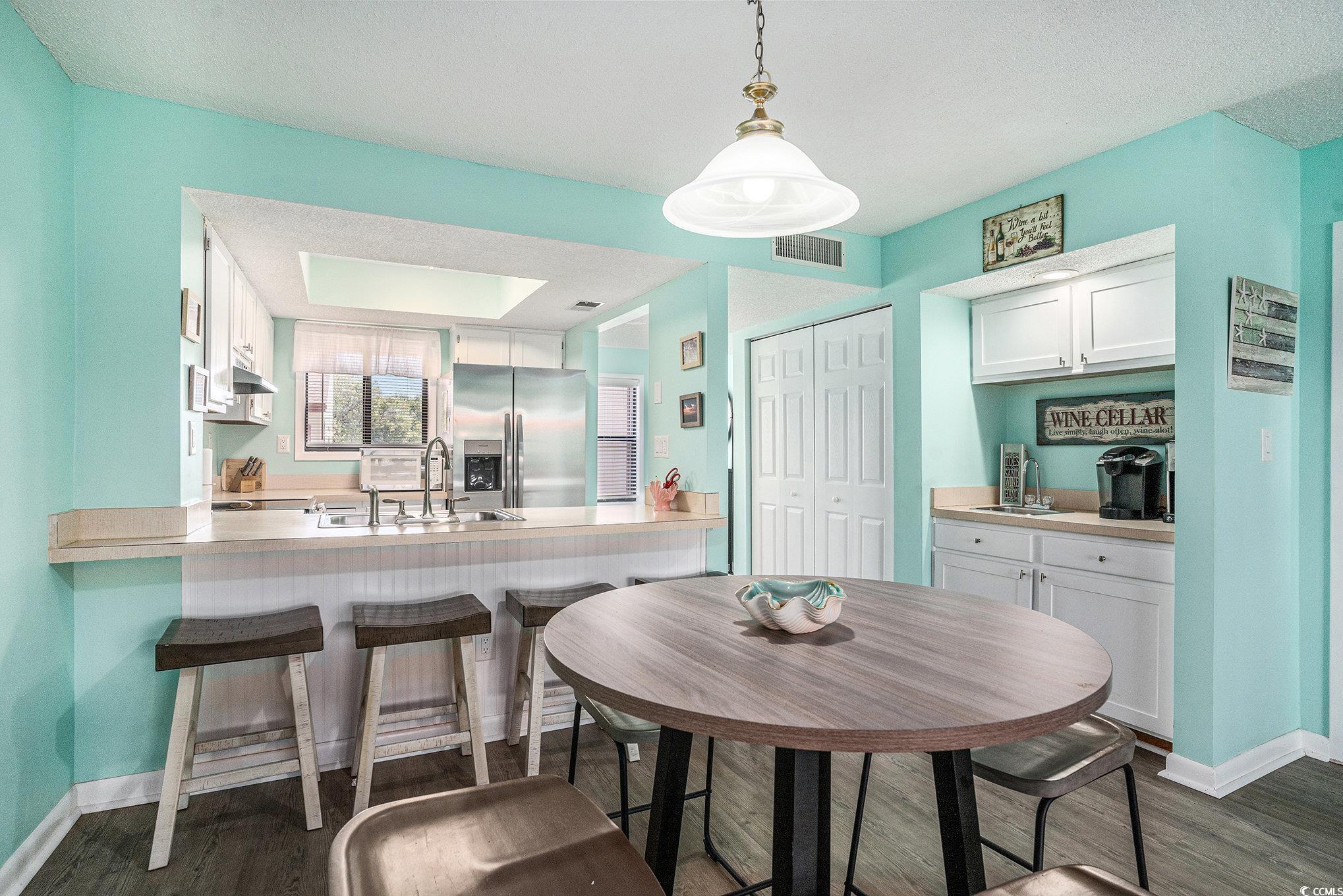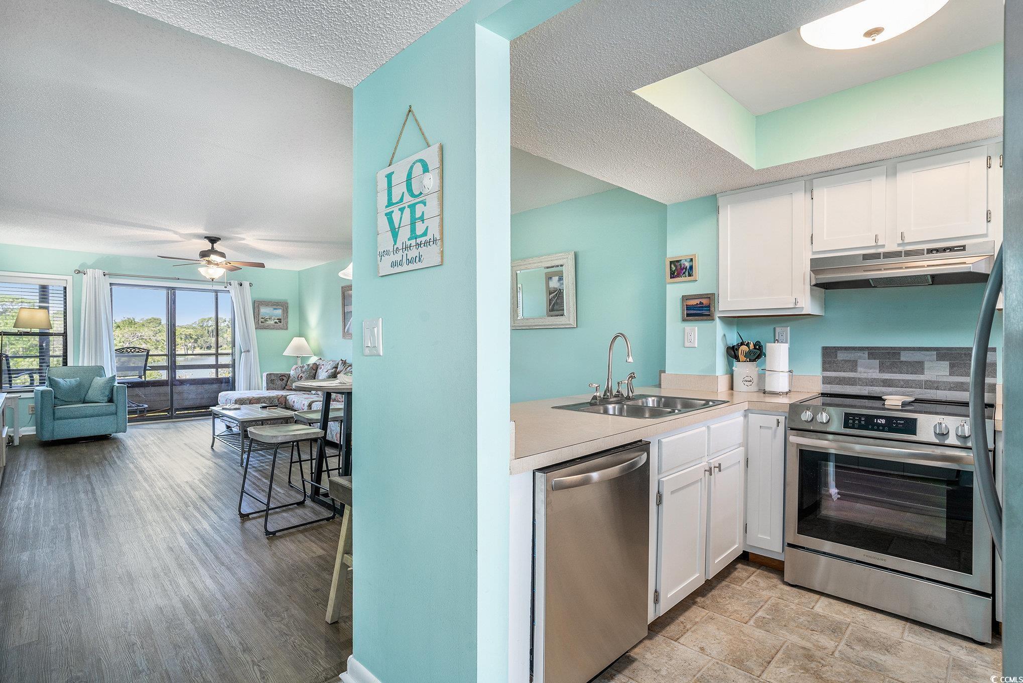 UPDATED KITCHEN AUGUST 2025! THIS UNIT HAS BEEN UPDATED WITH BRAND NEW STAINLESS STEEL APPLIANCES!!! Are you searching for the perfect beach getaway? Look no further! This property offers both short and long-term rental options, making it ideal for an investment or full-time living.This well-maintained 3rd-floor unit boasts beautiful views overlooking the prestigious Dunes Club Golf Course and is just a short walk or golf cart ride from the beach. The condo comes completely furnished and has been recently updated with new LVP flooring in the living area and a new sleeper sofa, HVAC 2019, fully stocked with everything you need - it's truly move-in ready! Enjoy your morning coffee or an evening glass of wine on the HUGE screened balcony overlooking the pond on the golf course. As a bonus, owners are allowed golf carts and pets! Dunes Pointe also offers fantastic amenities, storage area for your golf cart, indoor and outdoor pools and hot tubs, tennis/pickleball courts, grilling areas, and a clubhouse with a pool table. Conveniently located in the Myrtle Beach Arcadian area, you'll be close to shopping at the Tanger Outlets, dining on Restaurant Row, and plenty of golf courses!