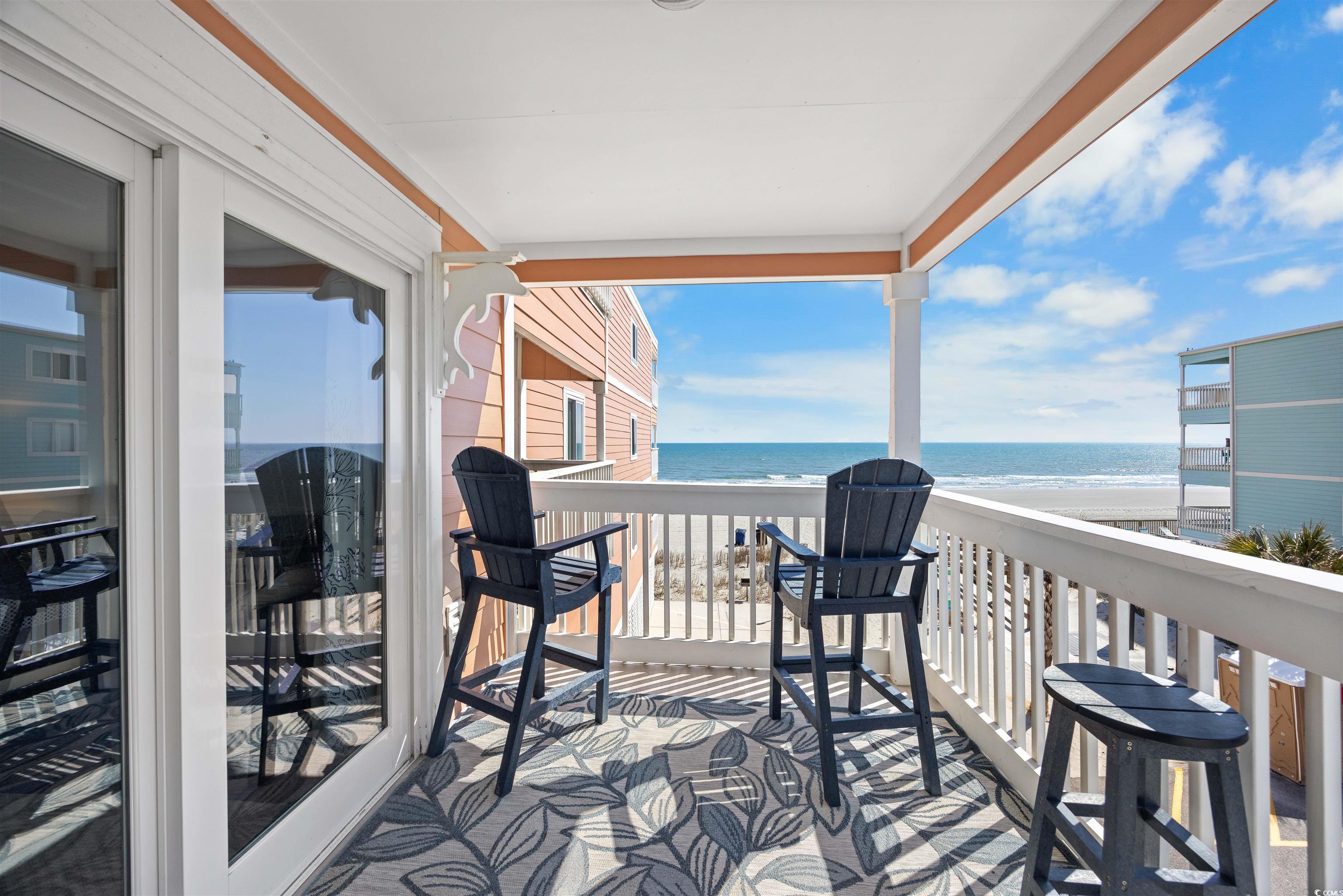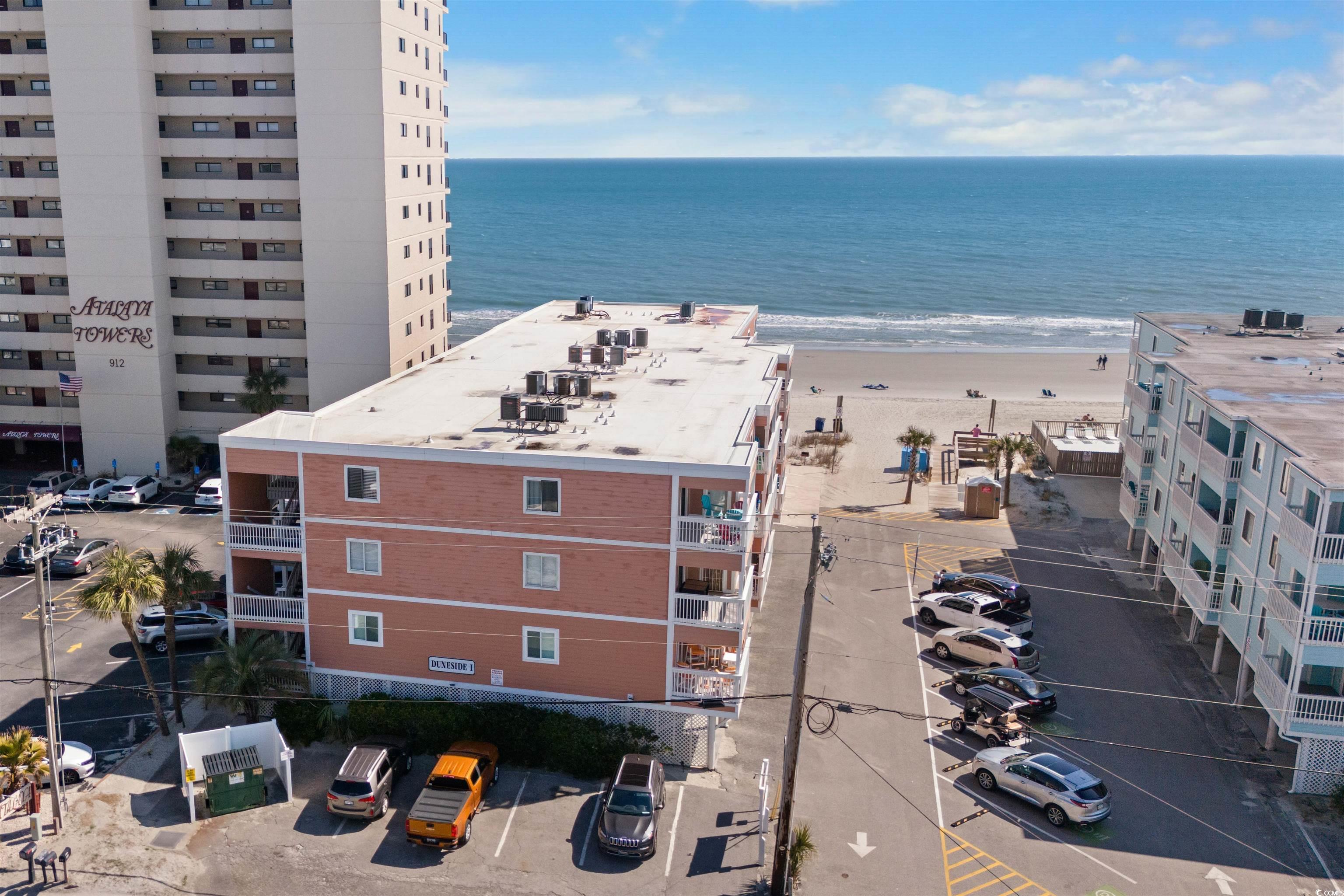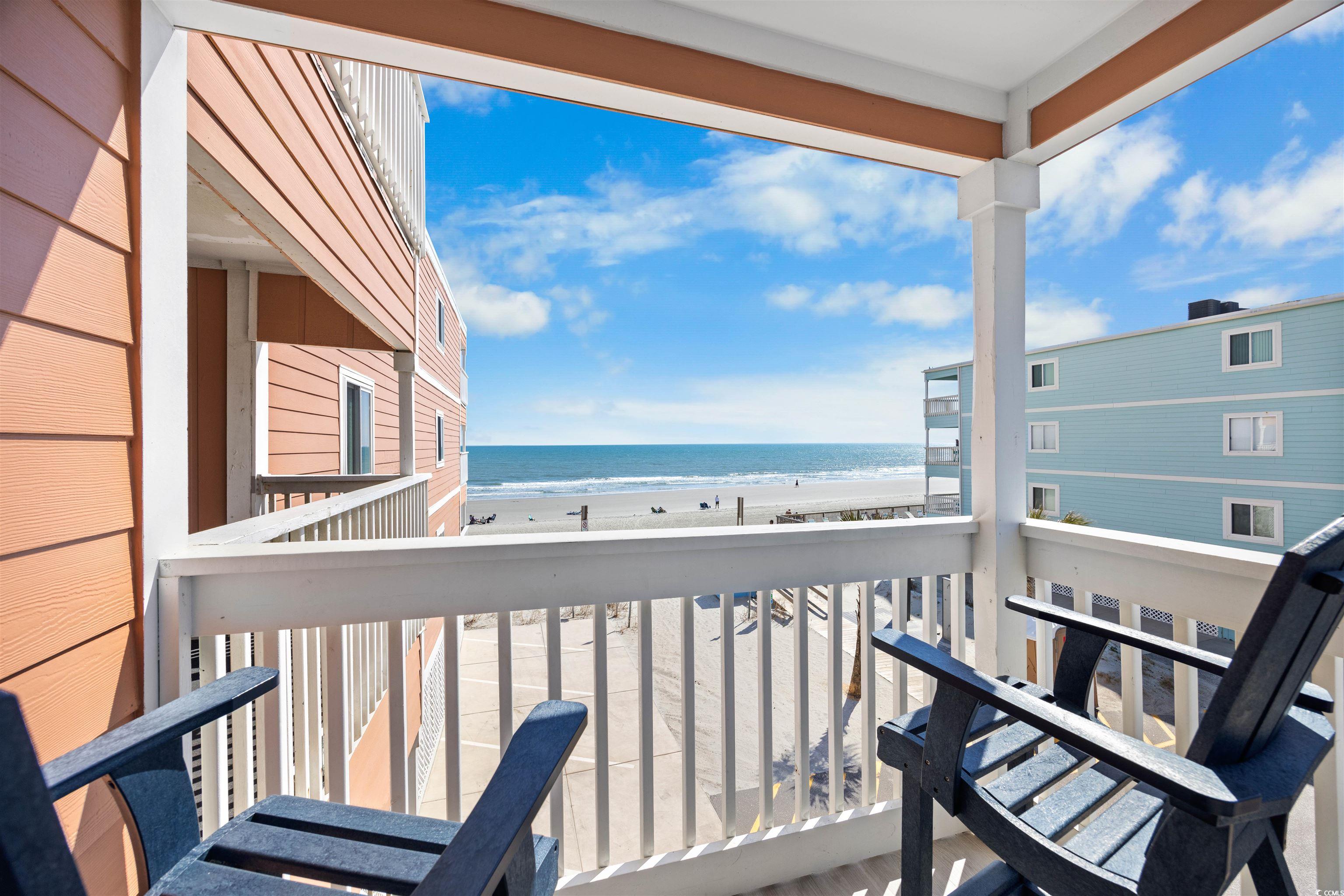 Charming, fully furnished, ocean view condo on Garden City Beach. Located on the second floor of Duneside I, a low-rise oceanfront complex, this 3-bedroom, 2.5-bath condo boasts single-level living with beautiful ocean views from the covered balcony and primary bedroom. The accommodating floor plan includes a centrally located kitchen and dining area with two sitting areas situated on either side. Parking and outdoor storage is available under the building. No pool or elevator means lower HOA dues. Short and long-term rentals are permitted, providing excellent ownership opportunities. Duneside I enjoys a fantastic beach location just 0.5 miles north of Garden City Pier, where amusements and dining venues are an easy walk away.