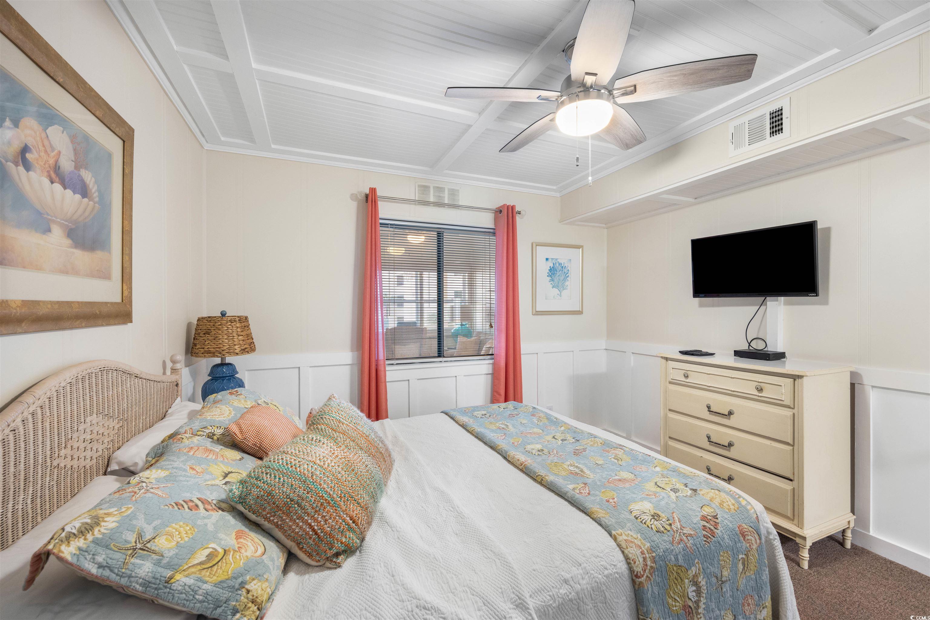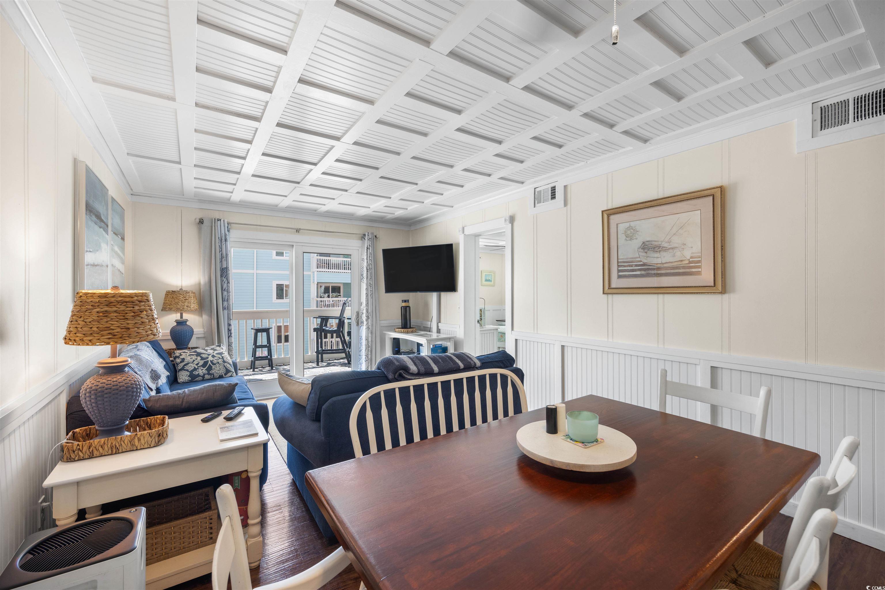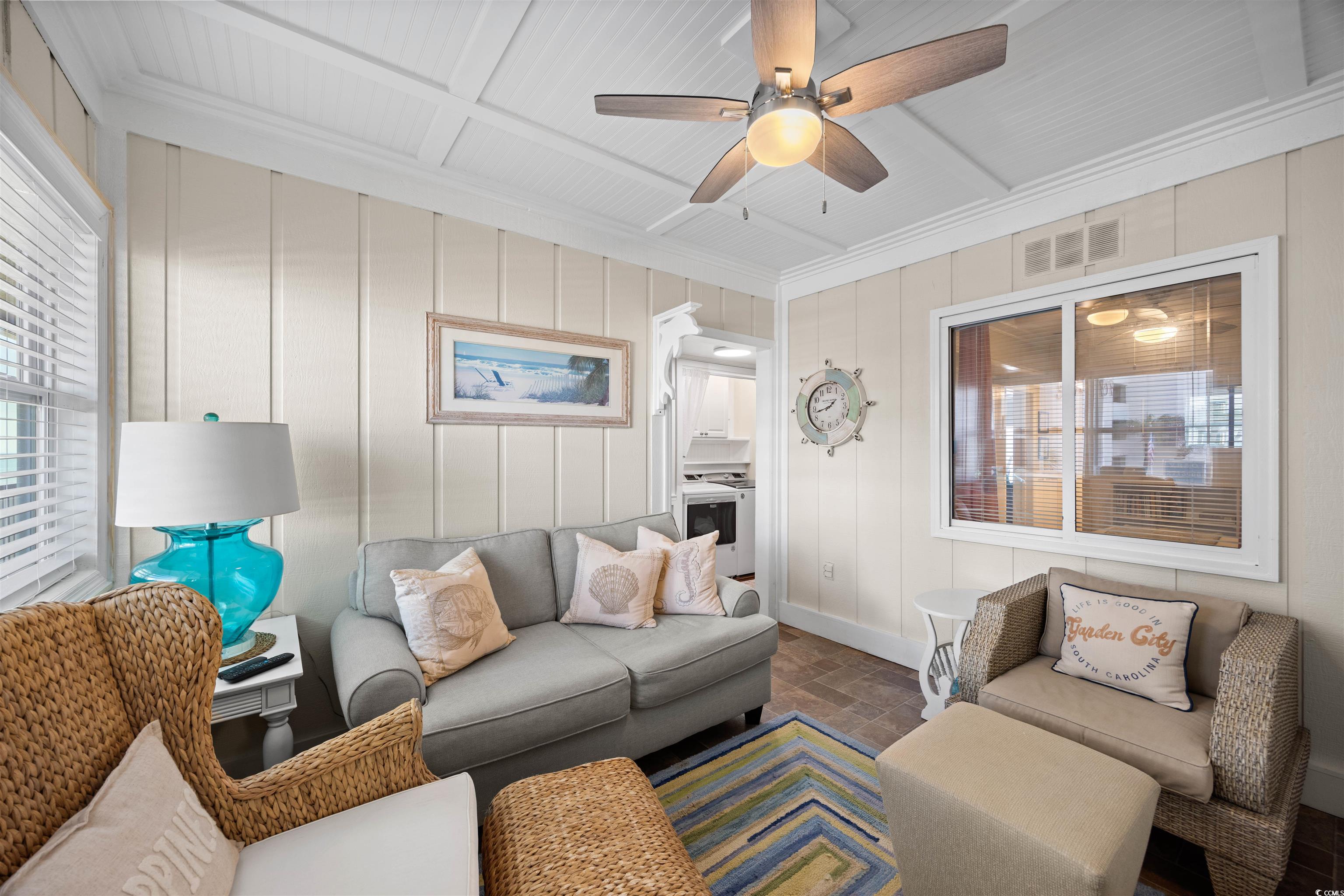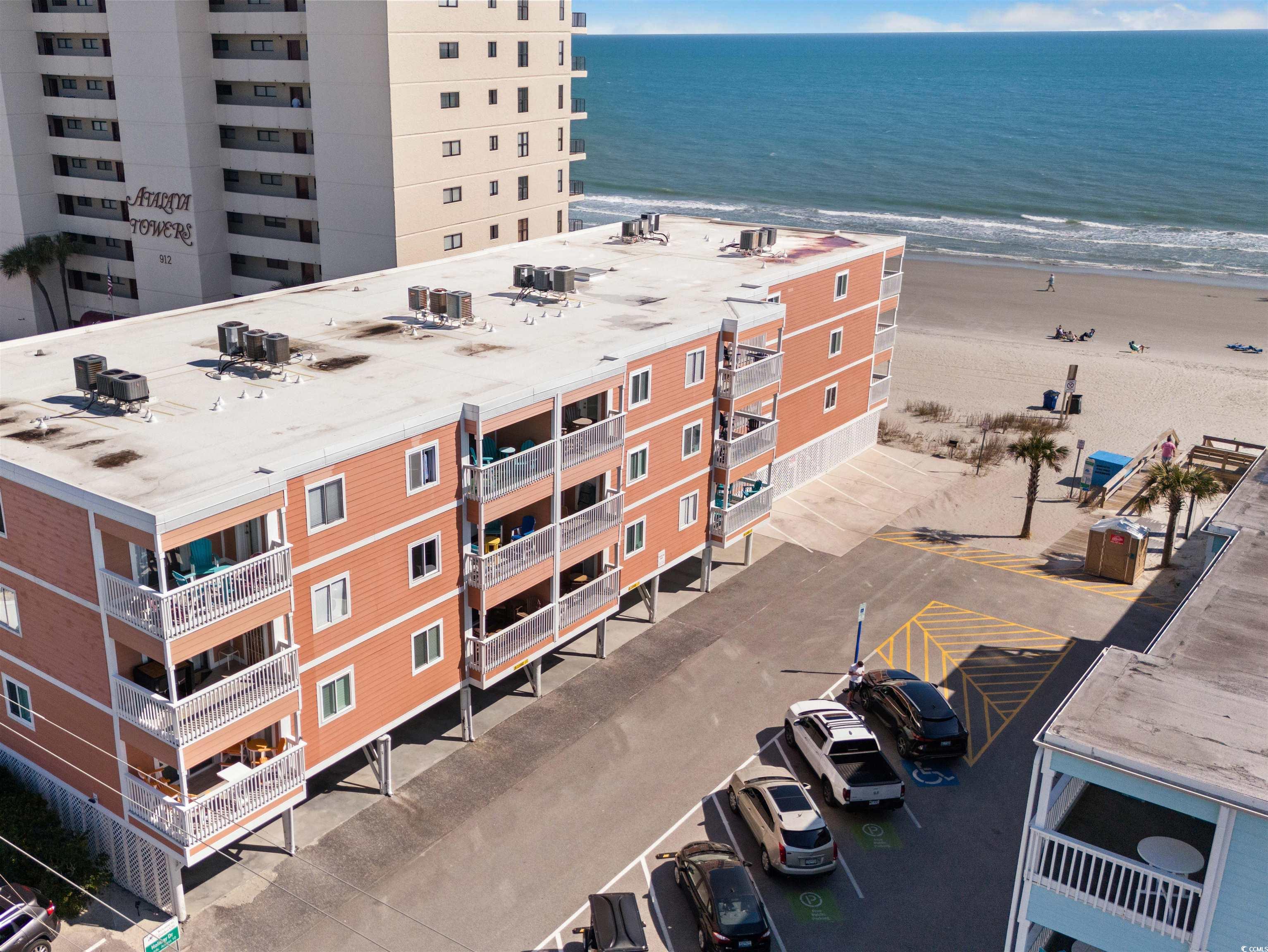 Charming, fully furnished, ocean view condo on Garden City Beach. Located on the second floor of Duneside I, a low-rise oceanfront complex, this 3-bedroom, 2.5-bath condo boasts single-level living with beautiful ocean views from the covered balcony and primary bedroom. The accommodating floor plan includes a centrally located kitchen and dining area with two sitting areas situated on either side. Parking and outdoor storage is available under the building. No pool or elevator means lower HOA dues. Short and long-term rentals are permitted, providing excellent ownership opportunities. Duneside I enjoys a fantastic beach location just 0.5 miles north of Garden City Pier, where amusements and dining venues are an easy walk away.