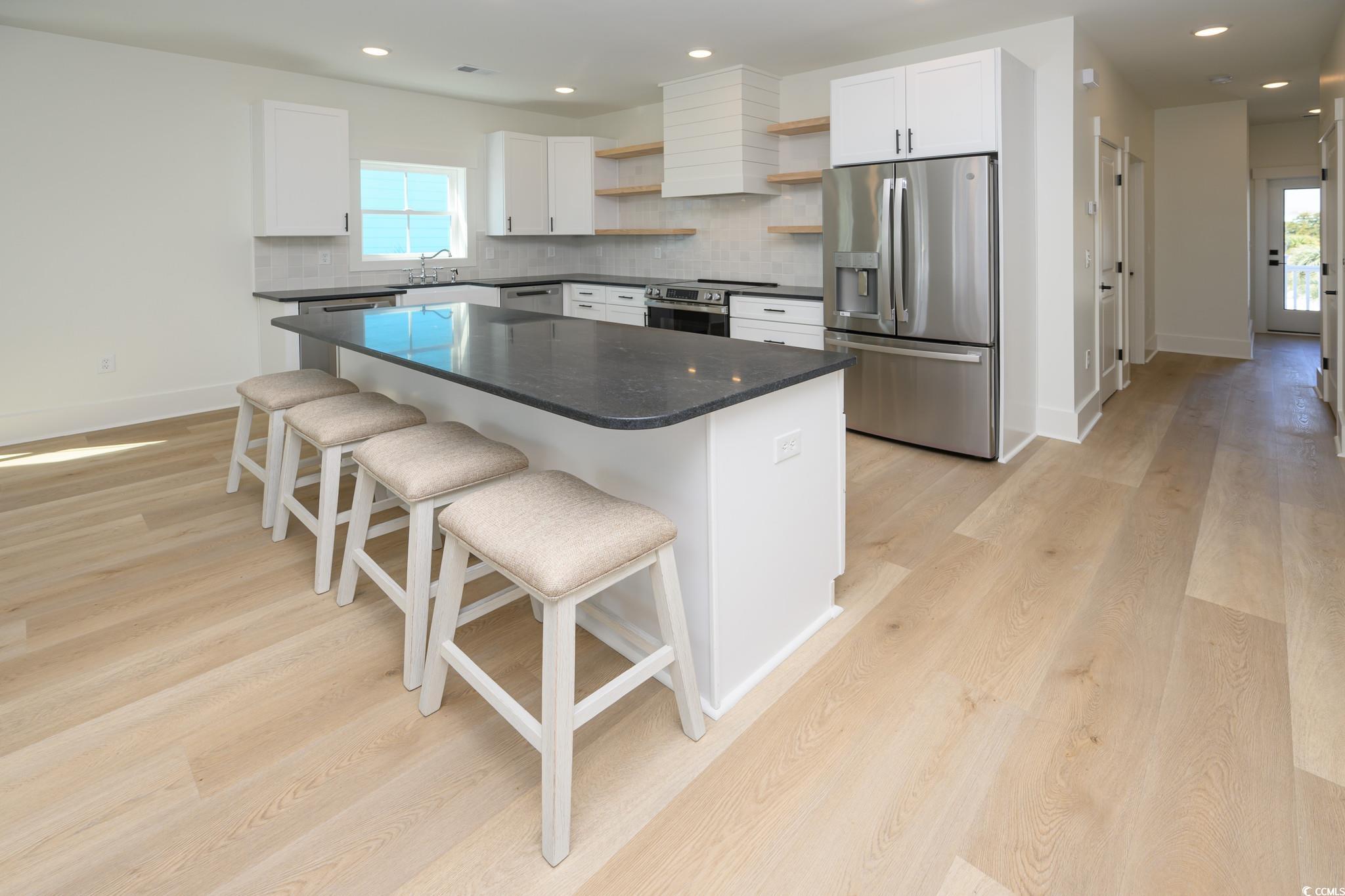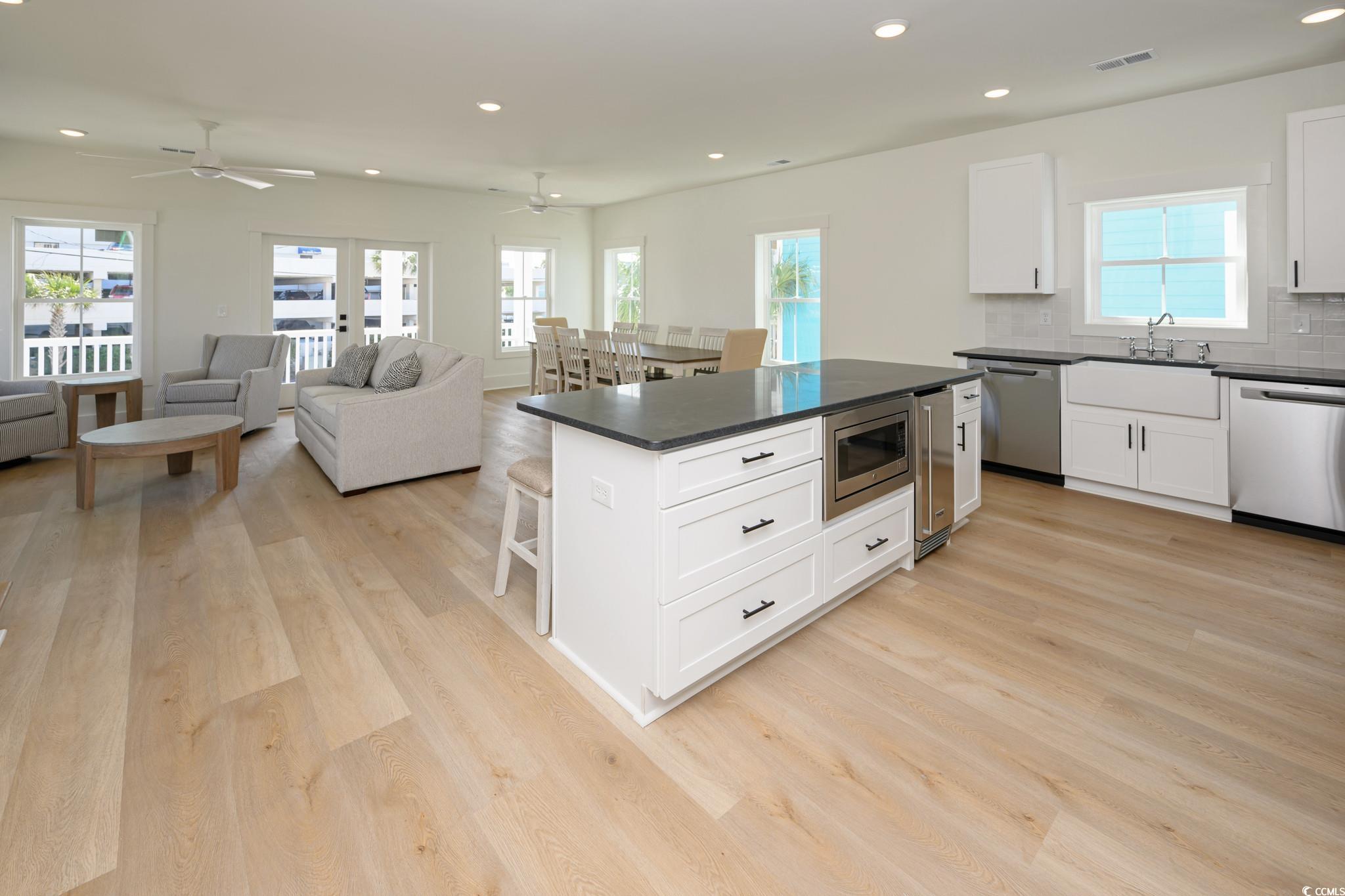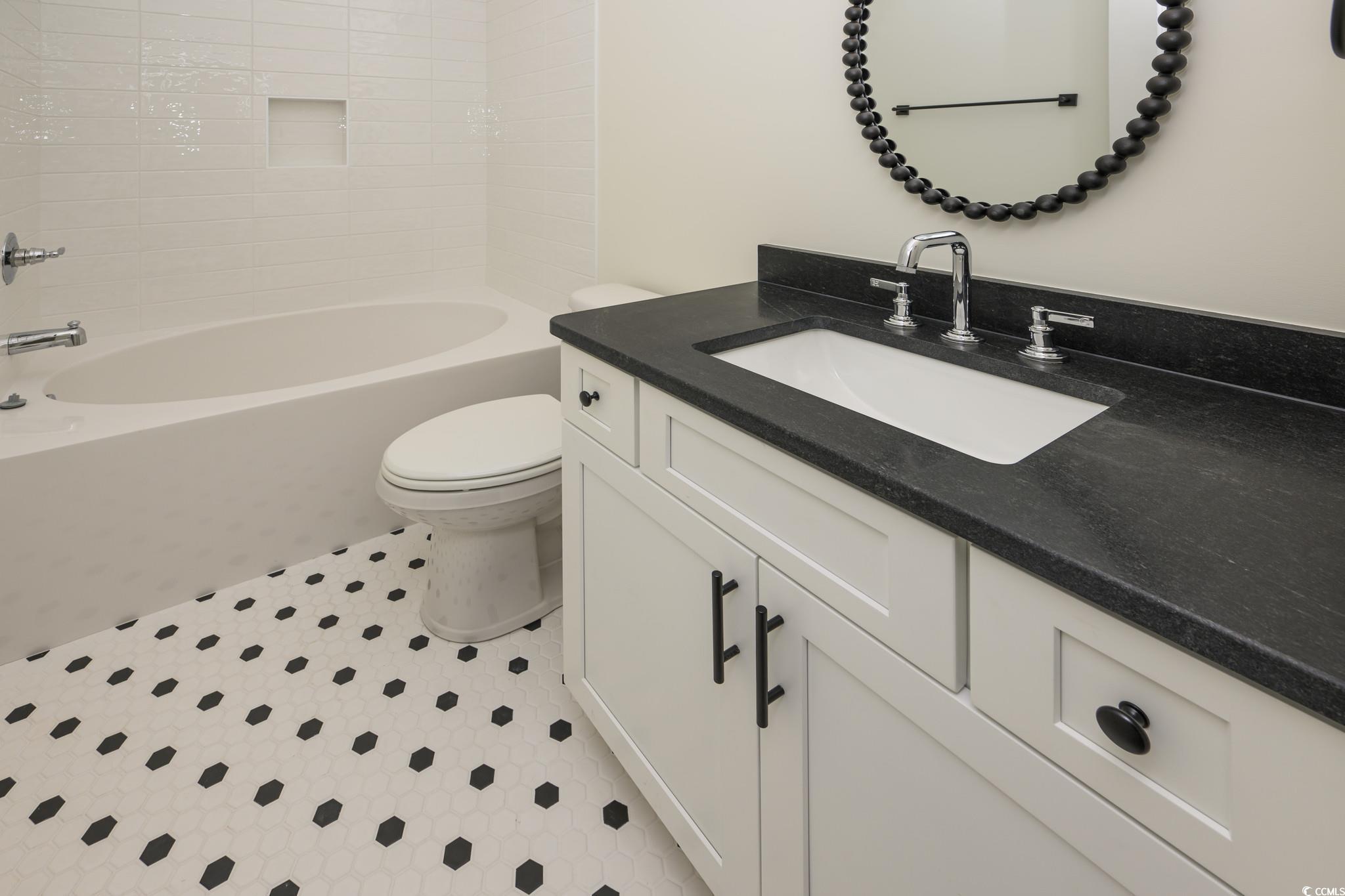 This brand new custom 2nd row Garden City beach home built by one of the best builders on the beach will be perfect for an investment rental property, second home, or primary residency. The floor plan features 7 bedrooms, 7 and 1 half baths,5 tile showers & 2 tile surrounds with tubs, covered porches, pool (14 ft by 28 ft), hot tub (8 ft by 8 ft), 325 sq ft putting green, elevator, golf cart garage, stainless steel appliances (two dishwashers and icemaker) and has an open concept living/dining area.