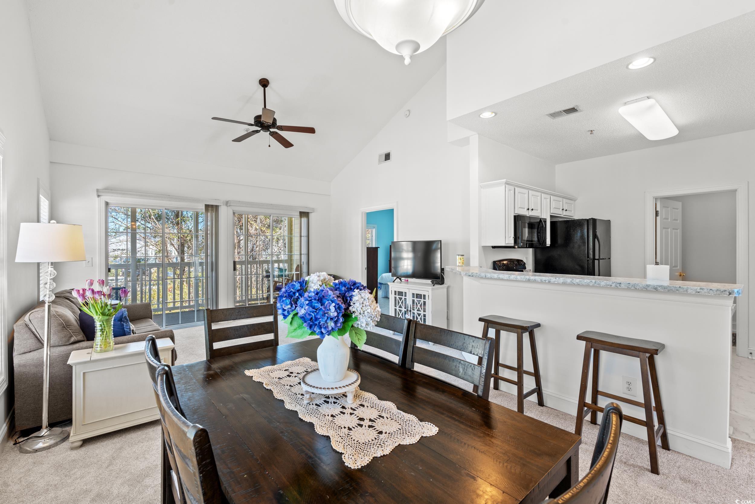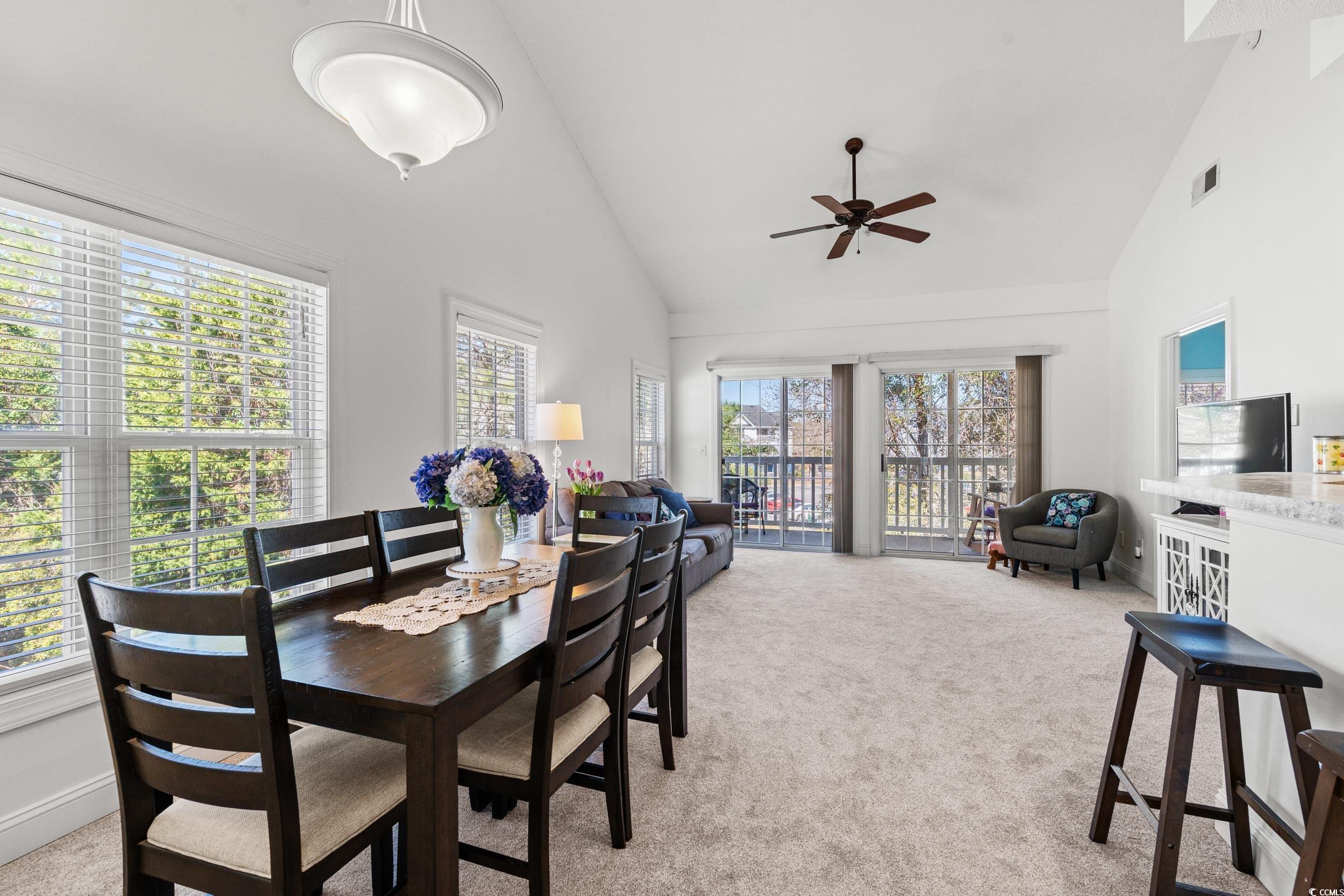 Welcome to your new home in the beautiful and serene Fountains! The Fountains neighborhood is a gated community with a pool that is located in the Carolina Forest Area. As you step inside this three bedroom/two bathroom condo you will be greeted by an abundance of natural light cascading through vaulted ceilings, creating an airy and inviting atmosphere. This end unit offers a spacious and open floor plan, split bedrooms, and a beautiful screened porch perfect for entertaining or just relaxing! The main bedroom features a full bath and a large walk-in closet. The carpet and flooring was just replaced making this condo look and feel like new. For your convenience ceiling fans are located throughout the condo. An added bonus is the laundry room located right off the kitchen. There is also plenty of storage throughout and even an exterior storage closet for your outdoor items. The Fountains HOA includes pool/pool service, trash pick up, pest control, internet, landscape/lawn maintenance, electric common and association management. The Fountains is centrally located near shopping, restaurants, many golf courses, entertainment, CCU campus, and the hospital. It is also just a quick drive to beautiful downtown Conway, located on the Waccamaw River, and to everything Myrtle Beach has to offer. Don't miss out on this incredible opportunity. Schedule your showing today!