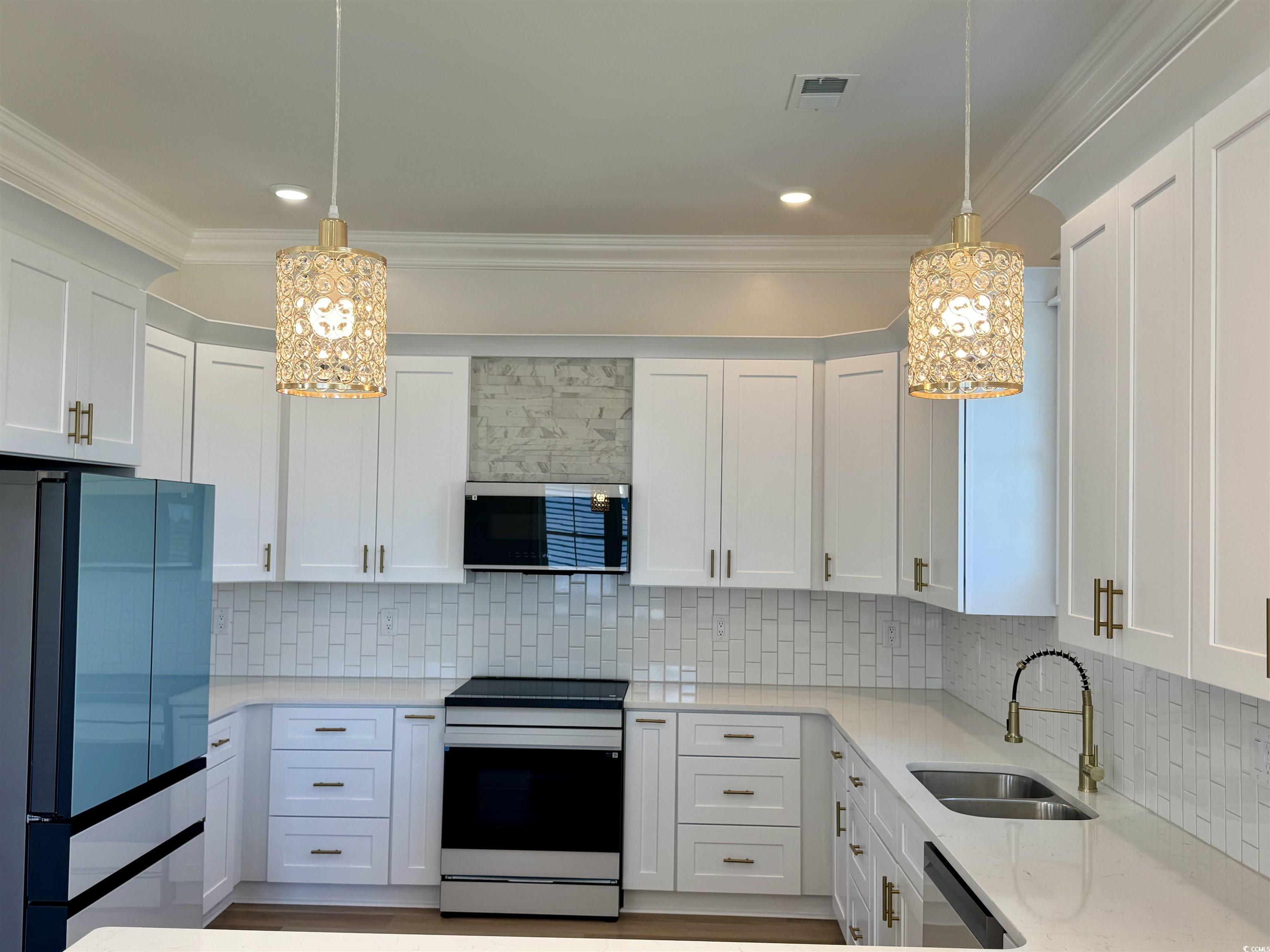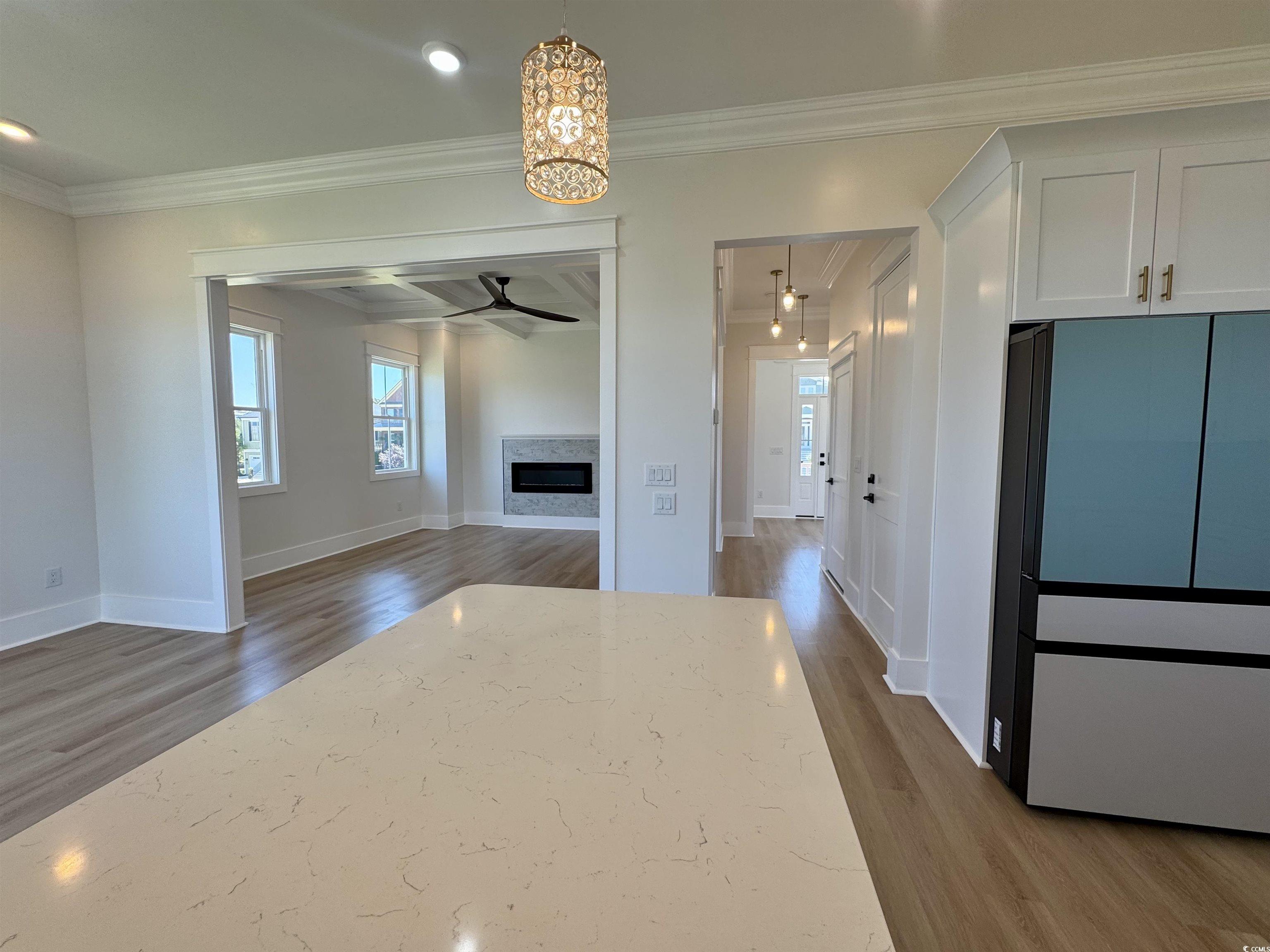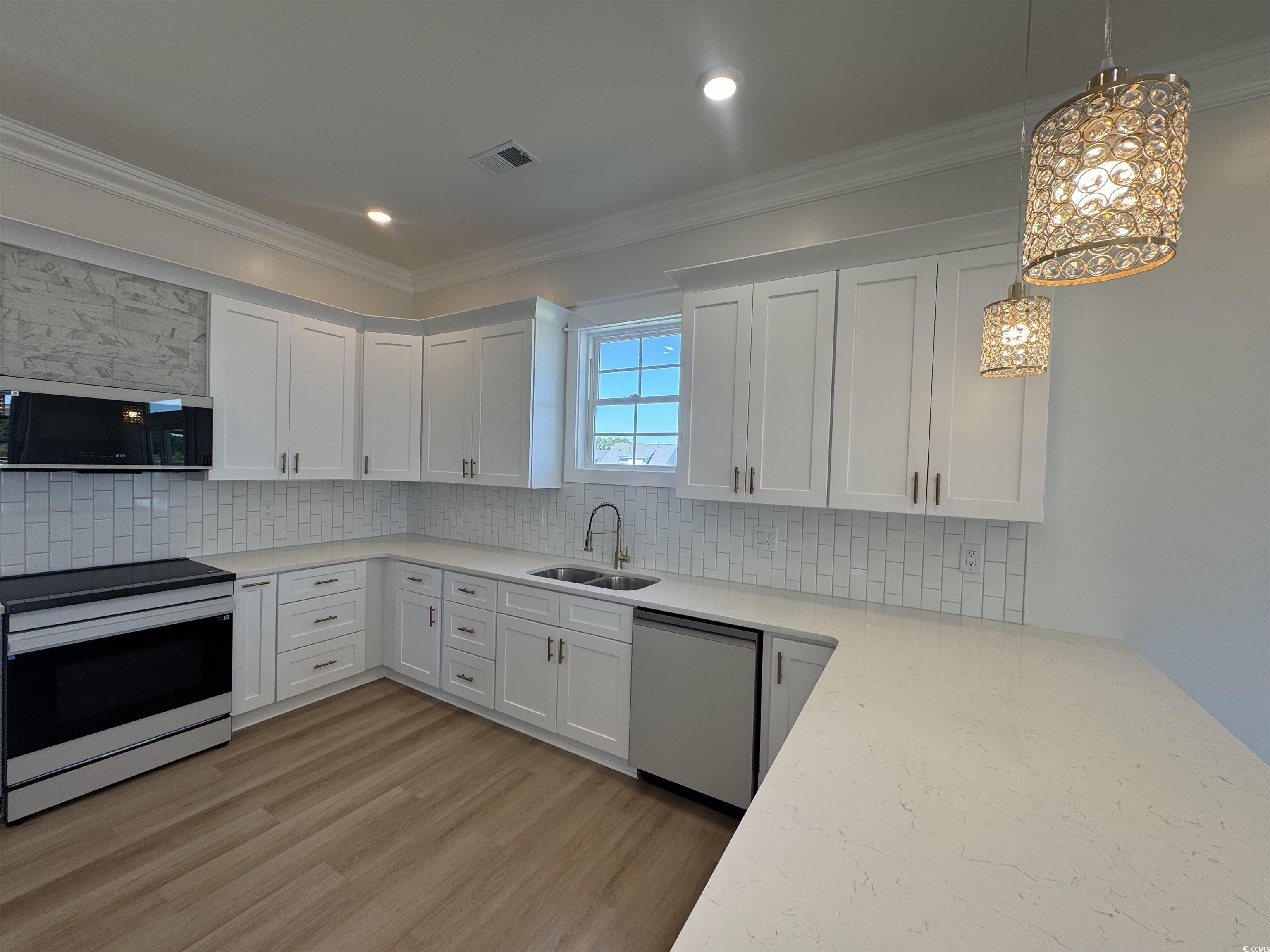 Introducing 318 Harbour View Drive - A Masterpiece in the Prestigious Boardwalk on the Waterway Community! Discover the epitome of luxury living in this magnificent 5-bedroom, 4 bathroom custom-built home. Located in the exclusive Intracoastal Waterway neighborhood of Boardwalk on the Waterway, this beautiful home promises to deliver the ultimate in elegance and comfort. Unmatched in its beauty, the home boasts covered porches, providing breathtaking views in both directions. The heart of this home lies within its open floor plan, perfectly complemented by a kitchen that would delight any chef. Beautiful appliances, exquisite quartz countertops, custom cabinetry ensure a delightful culinary experience. As you enter the home, you'll be greeted by high ceilings with custom trimmings, including a captivating coffered ceiling with a modern fireplace in the main living area. The first floor features a guest master suite with a beautifully designed modern walk-in shower, utility room with a washer/dryer connection. Venturing upstairs, you will find another bedroom, full kitchen, dining room and living room areas. Three bedrooms and two full bathrooms on the next level. Each bathroom is adorned with tasteful tile finishes, while the master suite beckons with a sliding glass door, double tray ceilings, vanity sink, shower, and a stunning freestanding tub, further accentuated by custom light fixtures. Home also offers an elevator shaft. Beyond the boundaries of this remarkable home, the Boardwalk on the Waterway community welcomes you with a wealth of amenities, including a scenic boardwalk stretching the full length of the community on the Intracoastal Waterway, a gazebo, private boat ramp, day dock, and secure outdoor boat storage. Enjoy easy access to the beach, golfing, and an array of activities that Myrtle Beach has to offer, including exceptional eateries, award-winning shows, and shopping. Convenience is at your fingertips, with grocery stores, banks, post offices, medical centers, and doctors' offices just moments away. Don't miss the chance to call this extraordinary property your own.