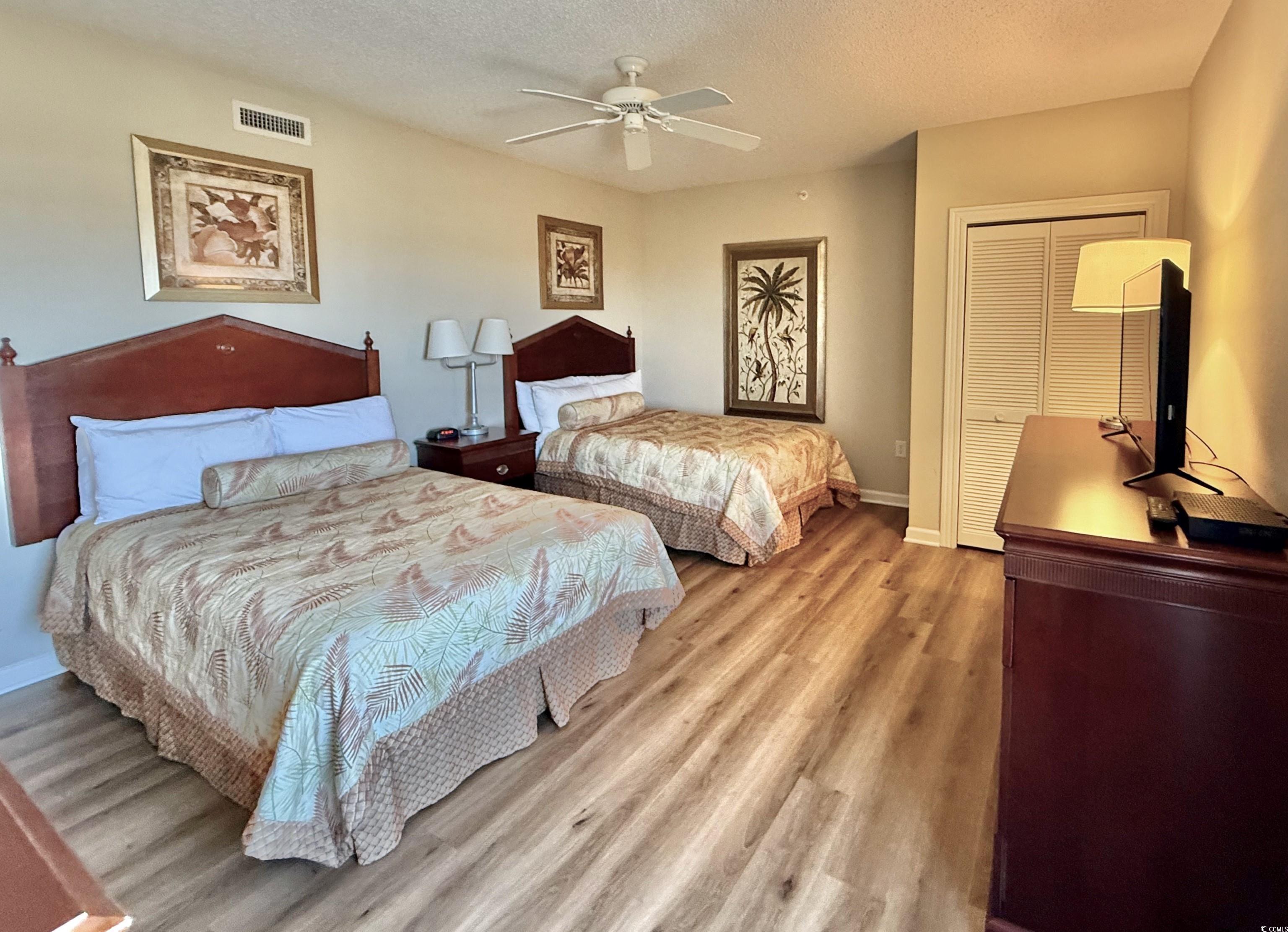 Enjoy breathtaking views of the ocean from every corner of the living room and master bedroom of this three-bedroom, three-bathroom condo in the prestigious Royale Palms. The Royale Palms is connected by a covered glass walkway to the Myrtle Beach Hilton Hotel. Located on the 21st floor, this oversized condo offers an unparalleled combination of luxury, convenience and scenic beauty. Open concept living - the expansive living and dining area boasts stunning ocean views, with direct access to a spacious balcony, perfect for enjoying the coastal breeze. The dining area comfortably seats eight, while the kitchen features elegant wood and granite finishes, stainless steel appliances, and a breakfast bar with four stools. The master bedroom offers a tray ceiling, balcony access, and mesmerizing ocean views right from the bed. The attached private bath is a true retreat, featuring a whirlpool tub, a separate walk-in shower, and a double vanity with granite countertops. Enjoy spectacular inland views from this oversized bath. The guest bedrooms feature two double beds, offering plenty of space and stunning inland views. The second bedroom has a private bath with a tiled shower, while the third bedroom shares a hall bath with a tub and shower. This condo offers easy access to the beach, as well as Hilton's restaurants and bars, making it an ideal choice for a second home, vacation rental or a primary residence.