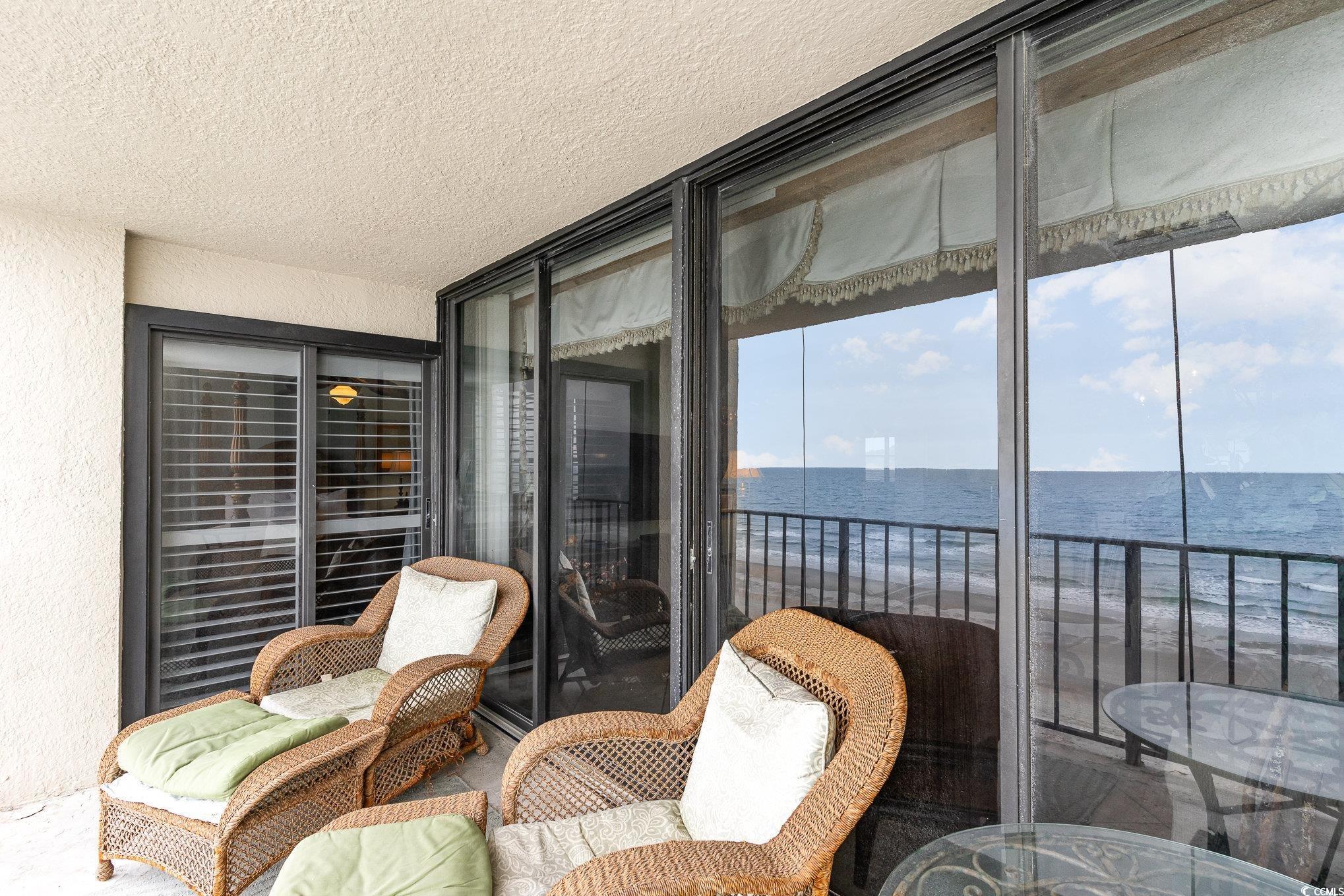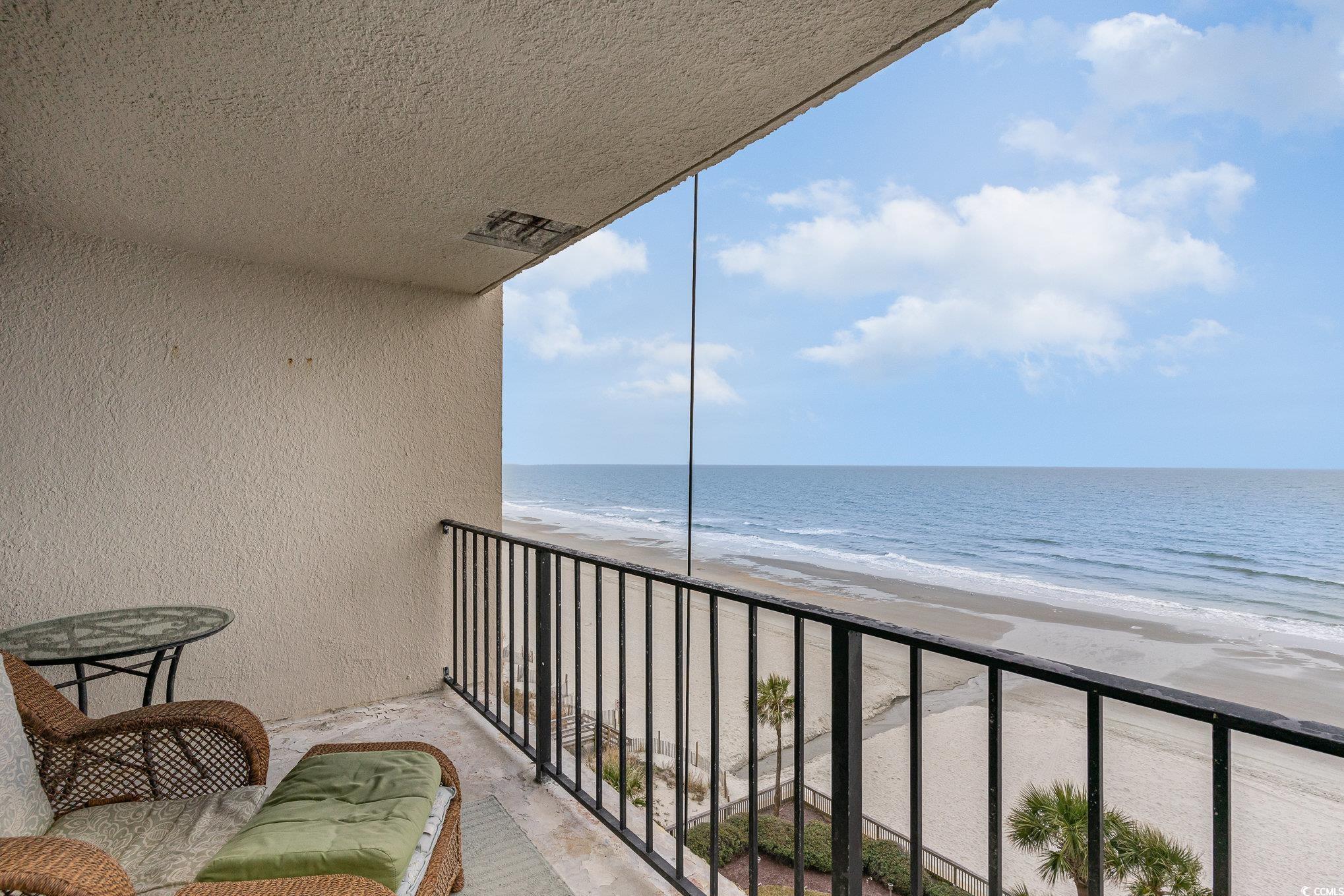 This exquisite 2-bedroom, 2-bathroom oceanfront condo, fully furnished and featuring elevator access, is located on the 6th floor of the renowned Arcadian I Resort. The condo boasts a fully equipped kitchen and a spacious living room with a 55"" flat-screen smart TV, ensuring a comfortable and enjoyable stay. Enjoy sweeping coastline views from both the master bedroom and living room, while the oceanfront balcony offers stunning, unobstructed views of the Atlantic Ocean. This gorgeous property would make an ideal vacation spot, investment property, or even residence. Nestled in a serene, upscale neighborhood on the northern end of Myrtle Beach, Arcadian I Resort provides a perfect blend of peace and convenience. Spend your days lounging on the beach, swimming in the oceanfront pool, or playing tennis on the court. The Arcadian I Resort is also ideally located near shopping, dining, and all the exciting attractions along the Grand Strand.