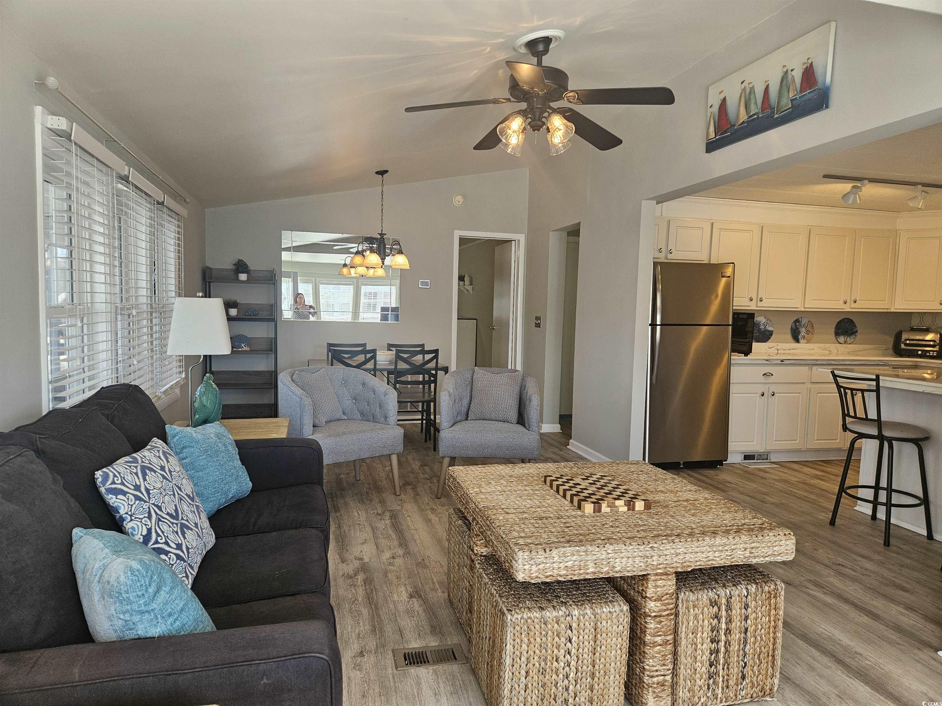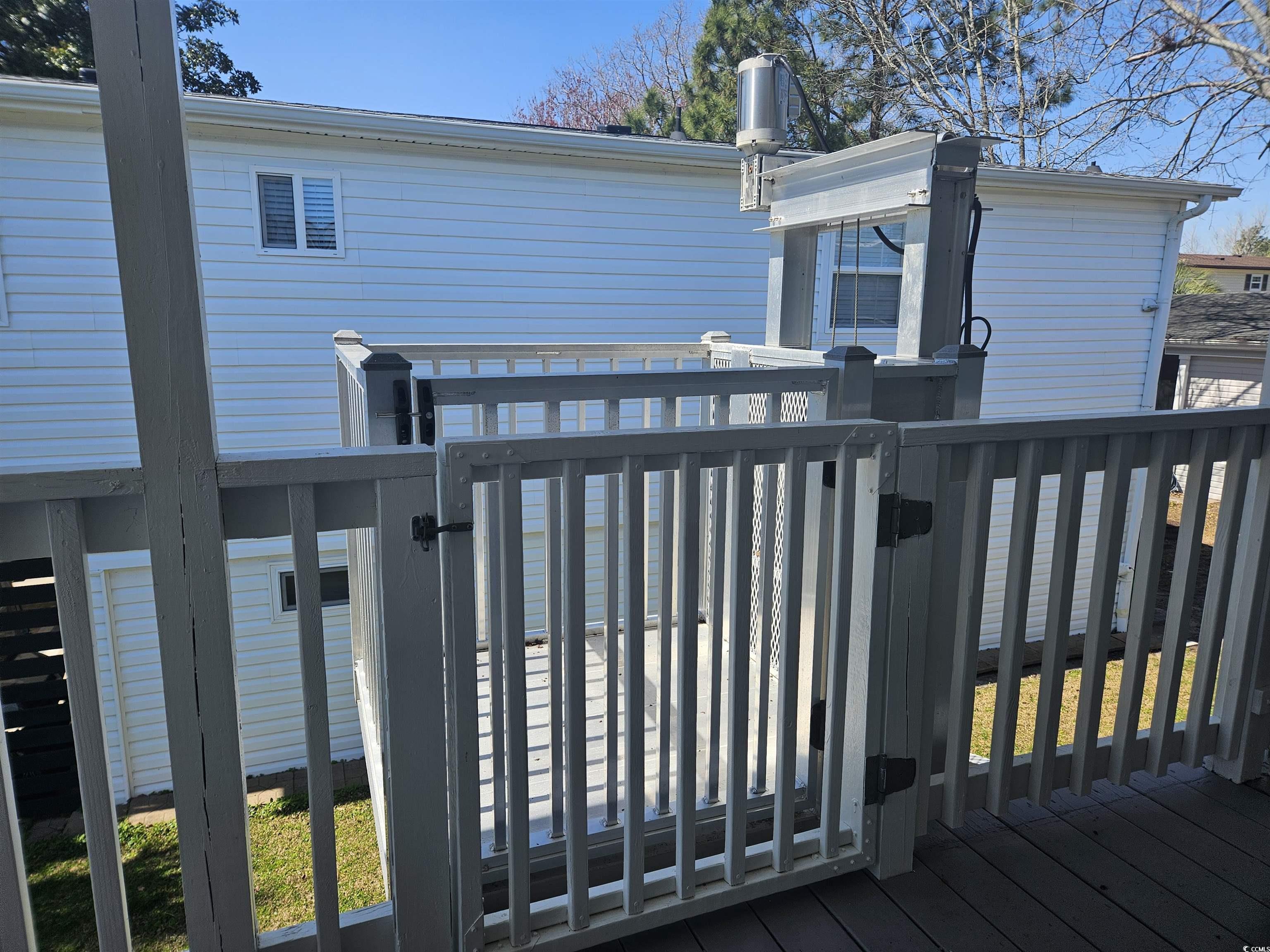 Located in the gated, golf cart community of Oceanside Village, this well-maintained Pier home features an open floor plan on the upper level as well as 2 bedrooms and 2 bathrooms, plus a flex room that can be used as an office or non-conforming 3rd. bedroom. The updated kitchen with newer countertops and appliances, makes it perfect to enjoy family and friends while preparing your favorite meals and newer LVP flooring throughout will blend nicely with all of your Coastal decor to make it your own. The ground level, with its own outdoor entrance, is perfect for visiting family to stay or as a rental. There are 2 rooms for sleeping, as well as a kitchenette, living room and bathroom for them to be comfortable during their stay. There is plenty of storage for your golf cart and beach equipment, along with an outdoor shower and an electric lift to handle the heavy items for you to the second level. You will enjoy the upper deck whether it's in the screened area with your morning coffee or catching some rays in the open area of the deck. Updates include a new roof-2024, newer LVP flooring, water heater, replaced deck steps and railing, lower-level HVAC, full size washer and dryer, ductwork, newer windows throughout, and the elevator lift was installed 2019. Oceanside Village is a golf cart community that has an array of amenities including indoor and outdoor pools, kids splash pad, tennis, pickle ball, gym, catch and release fishing, beachfront parking and so much more!