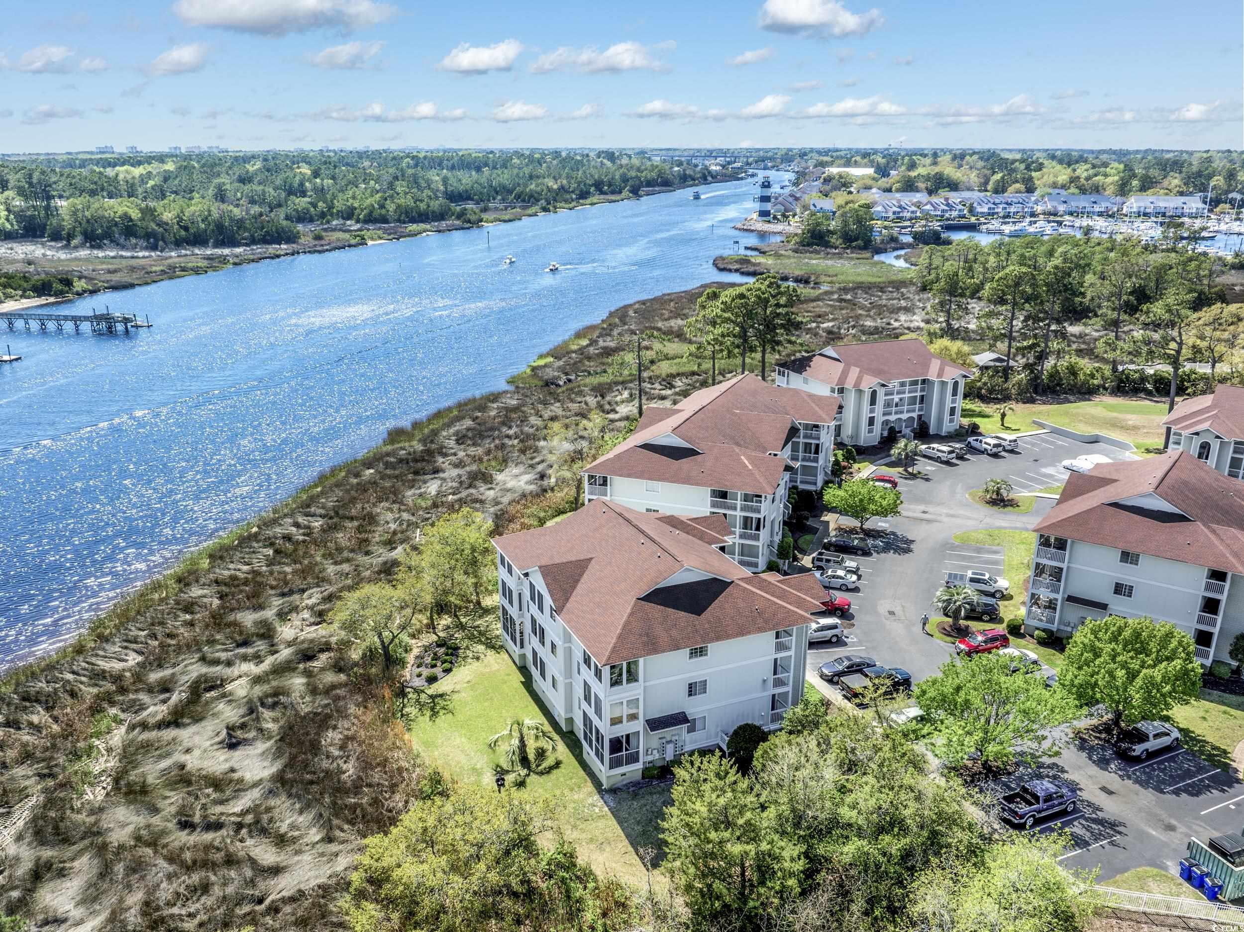 Outstanding waterway views! Enjoy views of the waterway from most rooms in this condo. Enjoy your morning coffee year round on the enclosed, climate controlled Carolina Room as you watch the sun rise and the boats go by! Waterway views can also be enjoyed from the primary bedroom, the living room, and the kitchen. NEW HVAC INSTALLED MARCH 2025! Only two flights of stairs to access the condos outstanding view. The many windows make the condo bright and airy. Enjoy watching the activity on the waterway as you prepare dinner in the fully equipped kitchen with plenty of storage. Enjoy the sun rise from your bed in the primary bedroom that opens onto the Carolina Room, has two closets, and a comfortable en suite bathroom. Extra storage is available below the window seat looking out over the waterway. The living room/dining room is spacious, offers vaulted ceiling, a built in bar, and opens onto the Carolina Room. No unit above you means Spinnaker Bay H8 is peaceful and serene. You can relax in the quiet as you enjoy the views, or take advantage of the nearby pool on the many warm sunny days. The condo has recently had LVP flooring installed in living room/dining room, kitchen, Carolina room, and bedrooms. It includes all kitchen appliances and washer/dryer. Spinnaker Bay is close to the Little River waterfront, marinas, restaurants, golf, nature areas, and just minutes to the beach. When you return from a great day at the beach, store your beach toys in the outside storage. HOA includes building insurance, no flood claims since the building was new. Owners are allowed pets, only long term rentals are allowed.