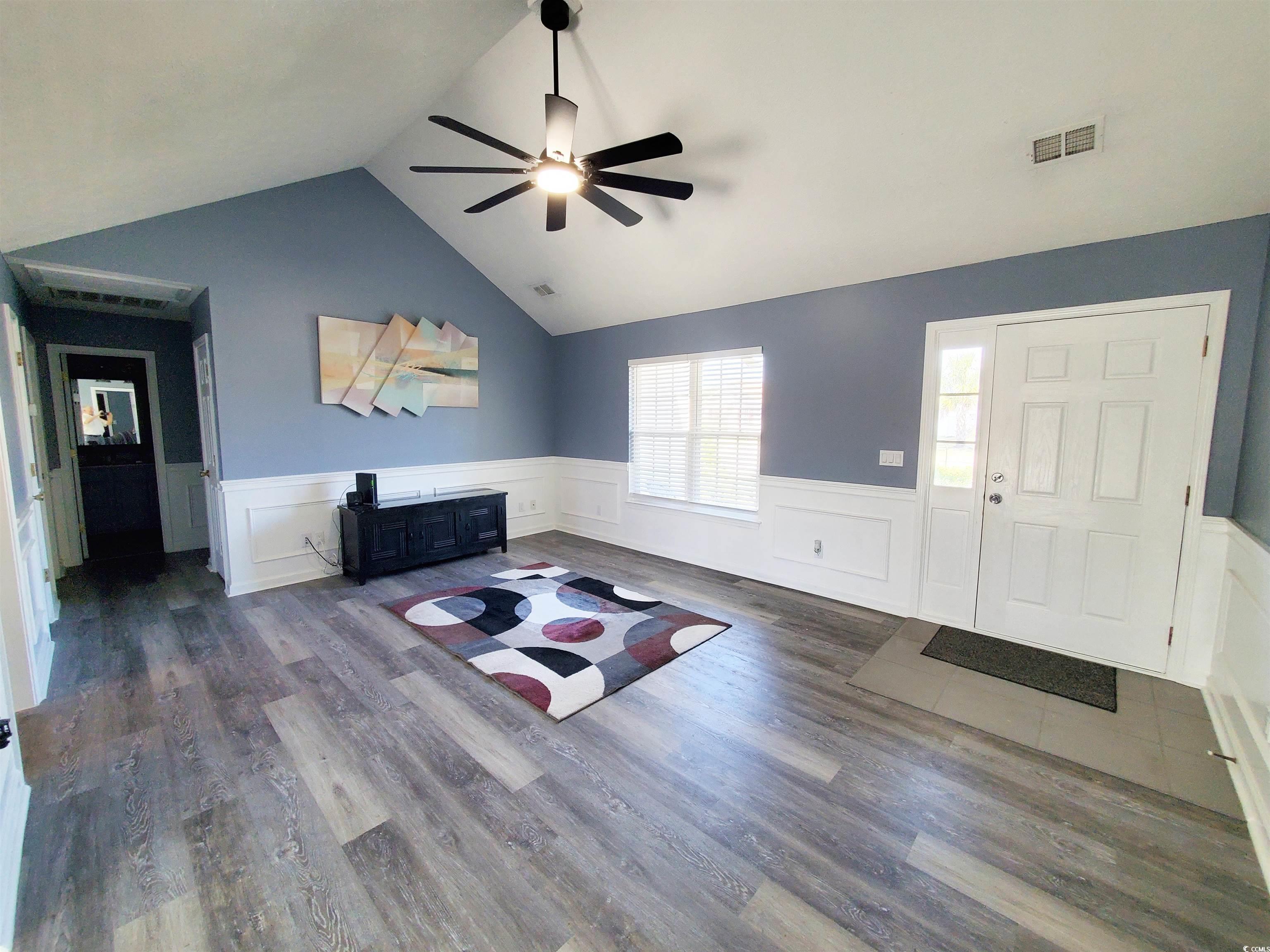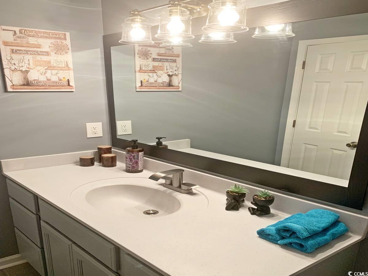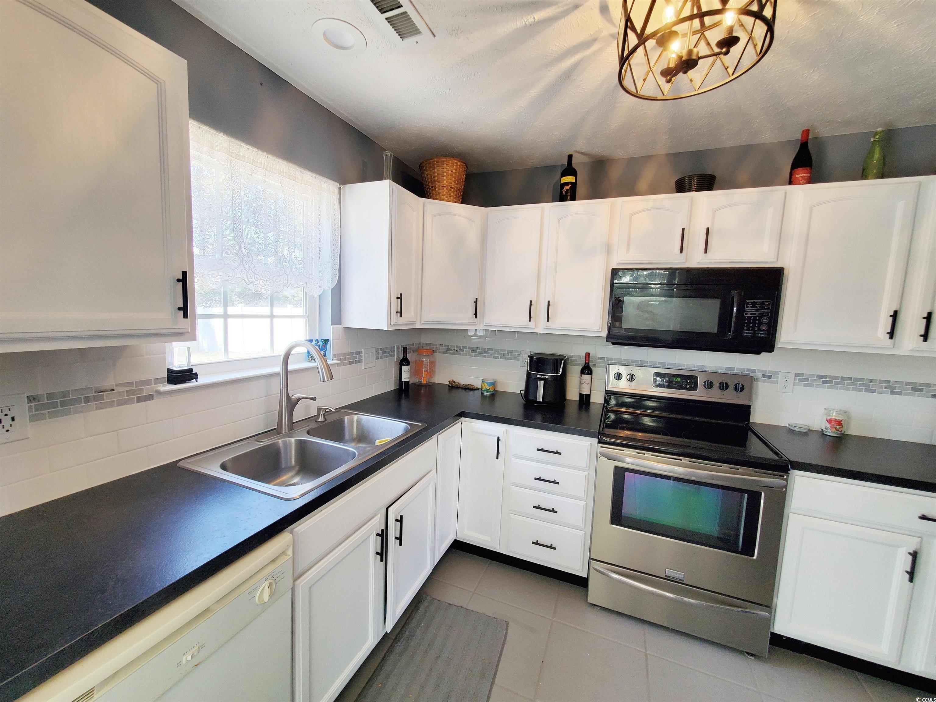 Newly updated home in the small quiet neighborhood of Hunters Ridge Crossing. Some of the many features include a large living room with vaulted ceilings and a cozy dining area both surrounded by wainscoting with chair rails. A stylish chandelier in the dining room. The living room, dining room, and master bedroom include new Luxury Vinyl Plank Flooring. New luxury light fixtures, ceiling fans, and fresh paint throughout. New brushed nickel waterfall faucets in both bathrooms. New carpet in the second and third bedrooms. New refrigerator, stove and updated countertops in the kitchen. A kitchen outlet with two USB ports. A spacious master bedroom with a tray ceiling, a large walk-in closet, a master bath with a soaking tub, and a newly tiled shower with an upscale glass door. This split-bedroom plan provides privacy for family and guests, a two-car garage, a large private backyard, and more. All this and less than 20 minutes to Myrtle Beach and all that it has to offer. COPY & PASTE THE FOLLOWING LINK TO SEE- A 3D TOUR, VIDEO TOUR, FLOOR PLANS, PICTURE GALLERY, MAP, AREA ATTRACTIONS AND MORE- tinyurl.com/221blackbear
