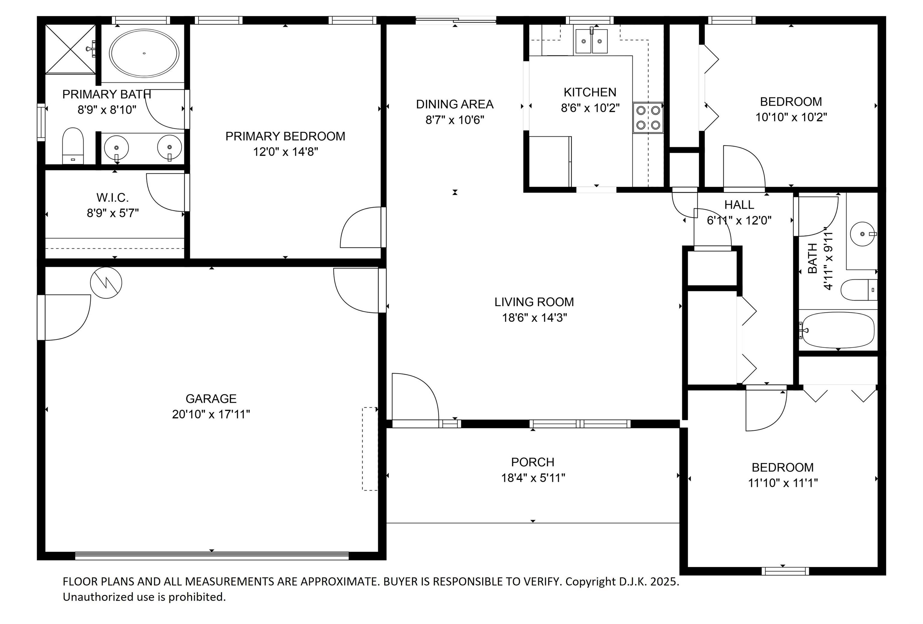 Bedroom1: 12 x 11
