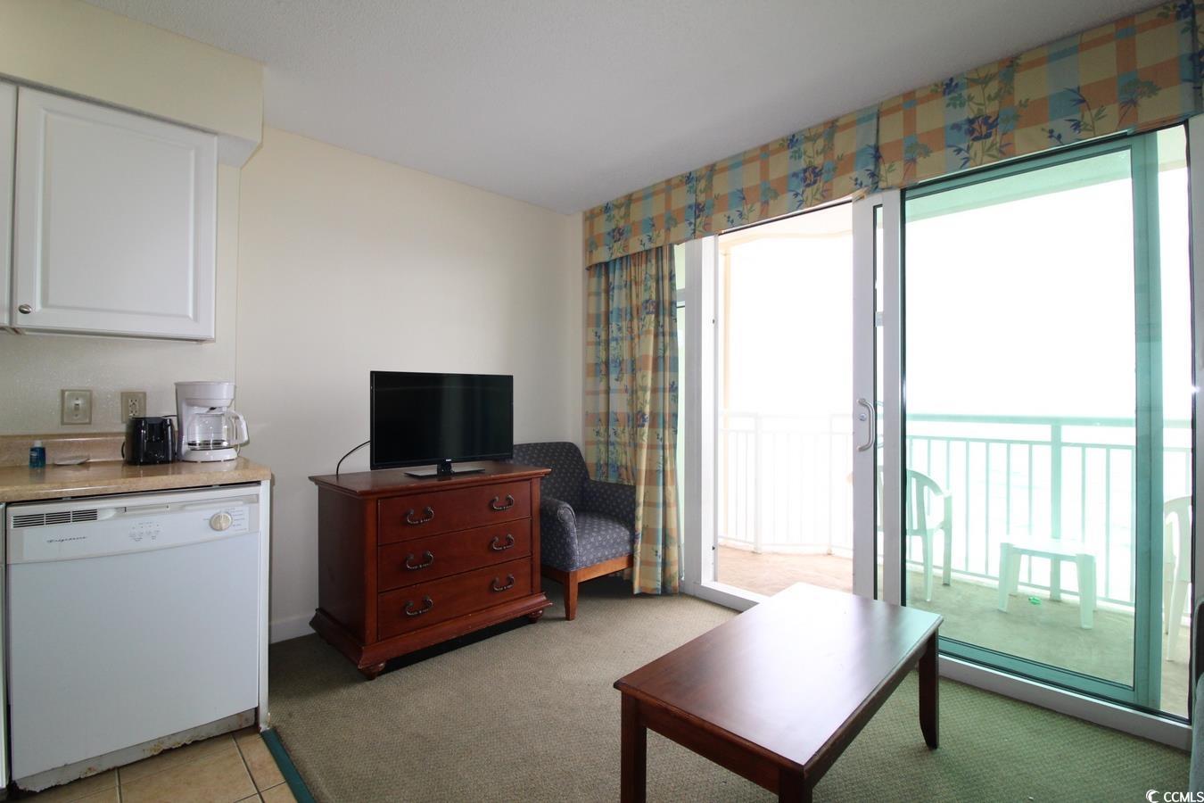 This fully furnished 1BR/1BA direct oceanfront condominium is located at Holiday Sands South. The kitchen features a full-size refrigerator, built-in microwave, dishwasher and stove. This unit also has a washer/dryer. The dining room table converts to a pull-out Murphy bed for additional sleeping accommodations. Holiday Sands has an impressive indoor pool complex which features lazy river, kiddie pool and hot tub. Amenities also include outdoor pools and fitness center. The neighboring building has a restaurant and there is a convenience store across the street. There is a secure parking garage which provides shade and security for owners and guests of the resort. This unit is generating established rental income through the on-site rental management program. Located on Ocean Blvd in the city of Myrtle Beach, Holiday Sands South is close to the airport, Myrtle Beach State Park and all the attractions that make for a great family vacation destination.