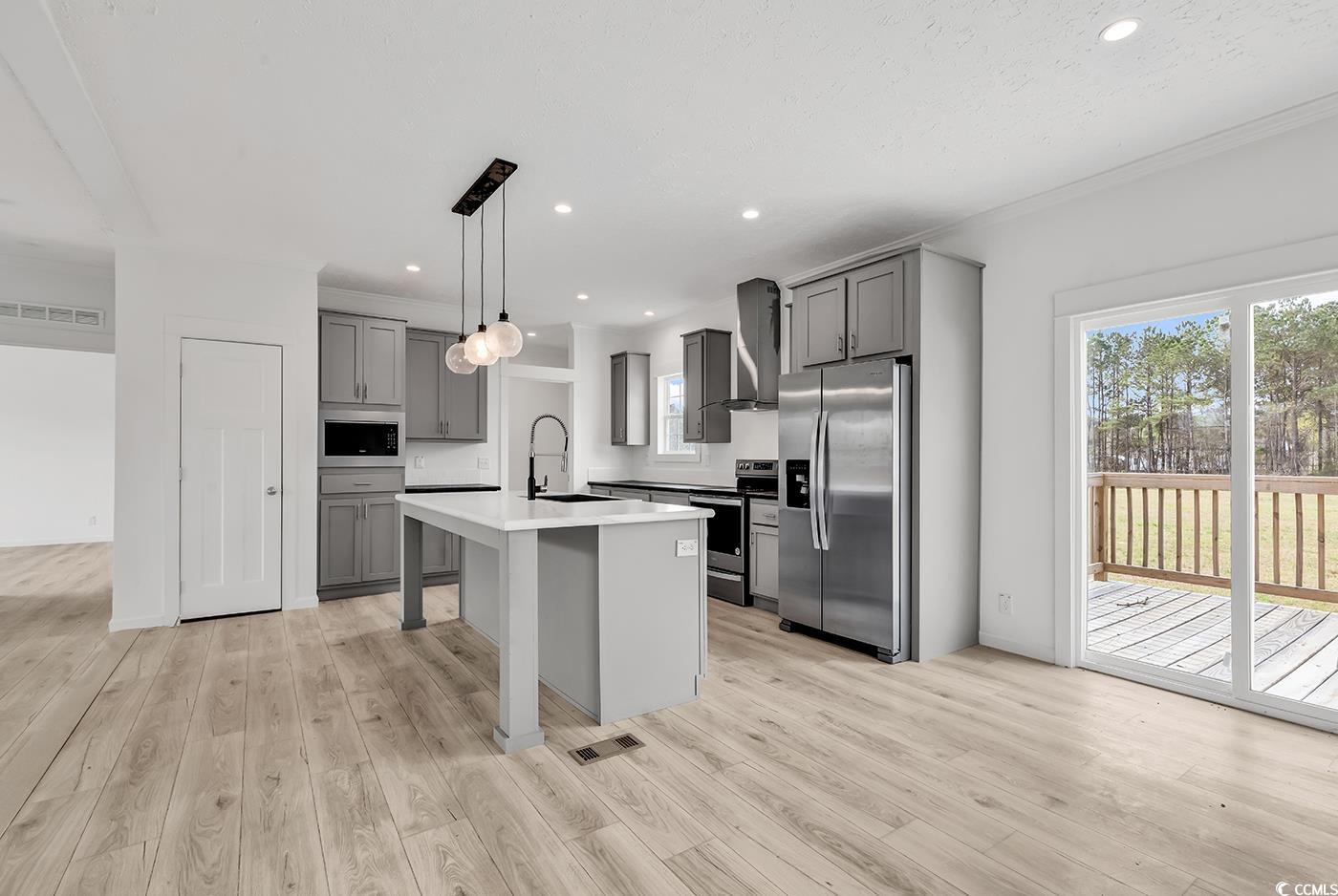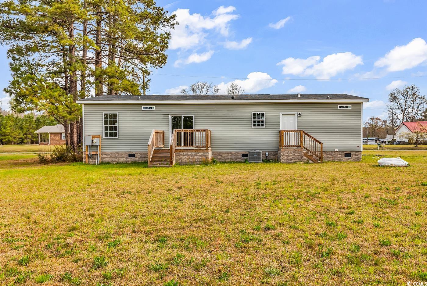 Brand New Manufactured home sitting on .88 Acres of Land with No HOA , No Restrictions! This very spacious 3-bedroom 2 bath home offers a split bedroom floor plan with LVP flooring throughout. The kitchen has a very large island, walk-in butler style pantry, lots of cabinets and countertop space! All stainless-steel appliances including stove with range hood, dishwasher, built-in microwave, and refrigerator. Primary bedroom and bath offer a walk-in closet, dual sinks, a tile shower with glass door, and extra cabinets. The guest bedrooms both have walk-in closets, and the guest bath is located near both rooms with one sink and a tub/shower combo. As you head out the back door you will walk through the laundry room with plenty of storage space as well. The back porch offers a relaxing place to sit with your open backyard view! Conveniently located just a few minutes to Hwy 22 to get to the beach and about 15 minutes to either Downtown Conway or Downtown Loris!