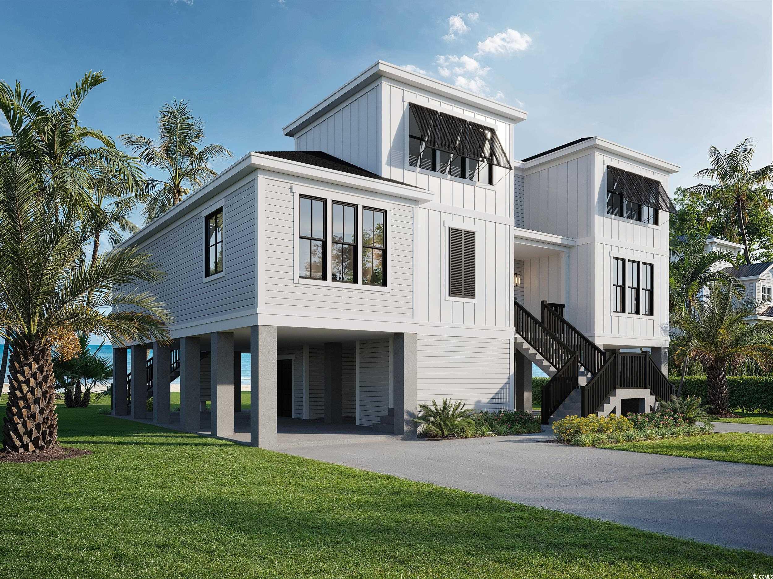Welcome to the opportunity of owning one of the most exclusive mid-century modern raised beach homes in Surfside Beach, just a couple of blocks from the ocean. Whether youre looking for a vacation getaway or a primary residence, this custom-built home is a rare find. This stunning 3-bedroom, 3-bath home boasts an 18-foot, two-story living room and a spacious screened-in porch overlooking your private custom pool. Designed for both luxury and comfort, the home will include an elevator and multiple entry points for added convenience. The main level features soaring 11-foot ceilings, creating an open and airy feel. All bedrooms are generously sized for maximum comfort. The open-concept kitchen, equipped with high-end appliances, flows seamlessly into the dining area and the expansive two-story living room. The living room also includes a fireplace, built-ins, and access to a large screened porchperfect for enjoying the beautiful South Carolina weather. Step down from the porch into your backyard oasiss. Surfside Beach is known as a family-friendly destination, and this home is just two blocks from the shore, allowing you to enjoy the Atlantic whenever you please. With nearby restaurants and entertainment, this is a dream home you dont want to miss. Currently in the permitting stage, the home is expected to be completed by late summer.