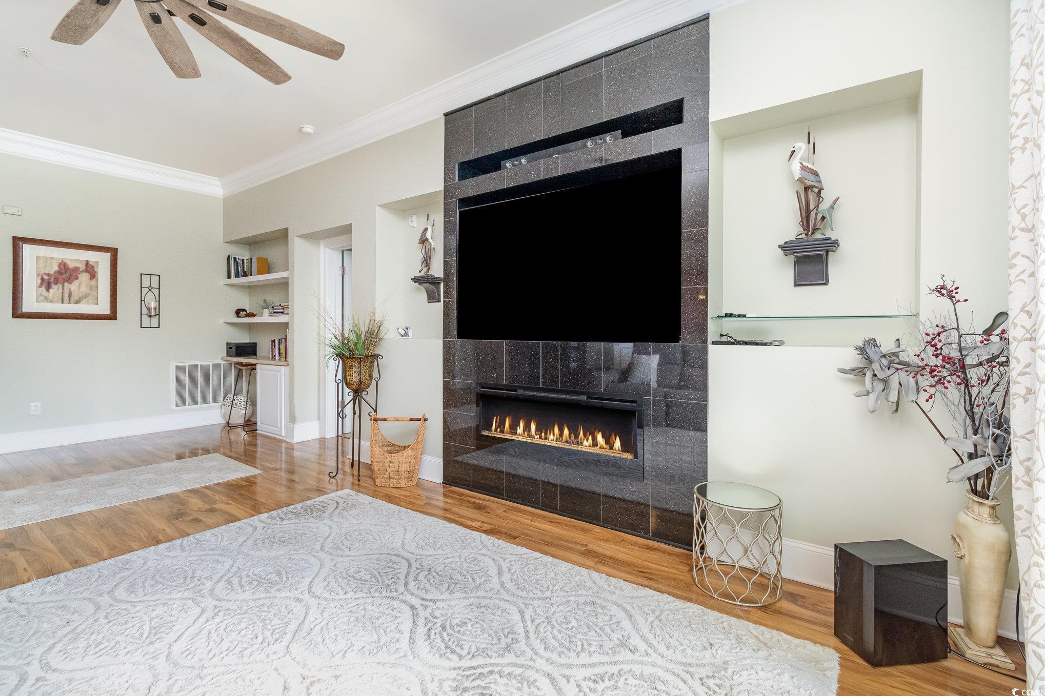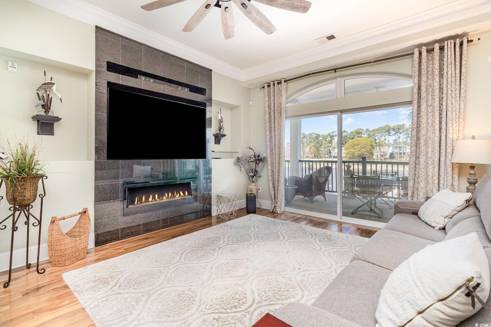 Welcome to this stunning 4-bedroom, 3-bathroom end unit condo situated in the highly sought-after gated community of Lauderdale Bay, perfectly positioned along the picturesque intercoastal waterway in Myrtle Beach! As an end unit, this condo boasts additional windows that flood the space with natural light, creating a warm and inviting atmosphere. Upon entering, you're greeted by a spacious foyer featuring elegant hardwood floors. The first bedroom is complete with ample closet space and its own private bathroom, equipped with a shower/tub combo. Two additional guest bedrooms share a well-appointed bathroom, also featuring a shower/tub combo. All bedrooms are carpeted for comfort, while the main living areas showcase the beauty of hardwood flooring. Each bedroom is designed with generous closet space, ensuring you have plenty of room to keep your belongings organized and easily accessible. The expansive living area is perfect for both relaxation and entertainment, highlighted by a cozy fireplace, ceiling fan and abundant natural light. There is also a built-in entertainment system with an 75"" Sony TV. The kitchen is a chef's dream, outfitted with stainless steel appliances, a stylish subway tile backsplash, granite countertops,, and plenty of cabinets for all your cooking essentials. A large pantry provides extra storage for all your culinary needs. Retreat to the master bedroom, a true sanctuary featuring tray ceilings and his and her closets. The luxurious master bathroom boasts dual sinks, a separate shower, and a relaxing tub, perfect for unwinding after a long day. Conveniently located off the living area, the laundry area comes equipped with a washer/dryer and utility sink for added convenience. The dining area features a sliding glass door that opens to a private, spacious balcony, offering breathtaking views of the community pool and the serene intercoastal waterway, an ideal spot for morning coffee or evening relaxation. Lauderdale Bay is not just about beautiful condos; it also offers a variety of amenities to keep residents entertained. Enjoy the community pool, boat slips, and a private dock complete with a boat lift for those who love to spend time on the water. Conveniently situated near some of the Myrtle Beach areas finest dining, shopping, golf, and entertainment options, Lauderdale Bay is perfect for those wanting to embrace the vibrant lifestyle of the area. Whether you're seeking a delicious meal at a local restaurant, a day of shopping at nearby boutiques, or a round of golf on one of the many championship courses, everything you need is just a short drive away. This condo would make an ideal forever home or vacation getaway. It truly is a gem, combining comfort, style, and an unbeatable location. Don't miss your chance to make this beautiful property your new home!