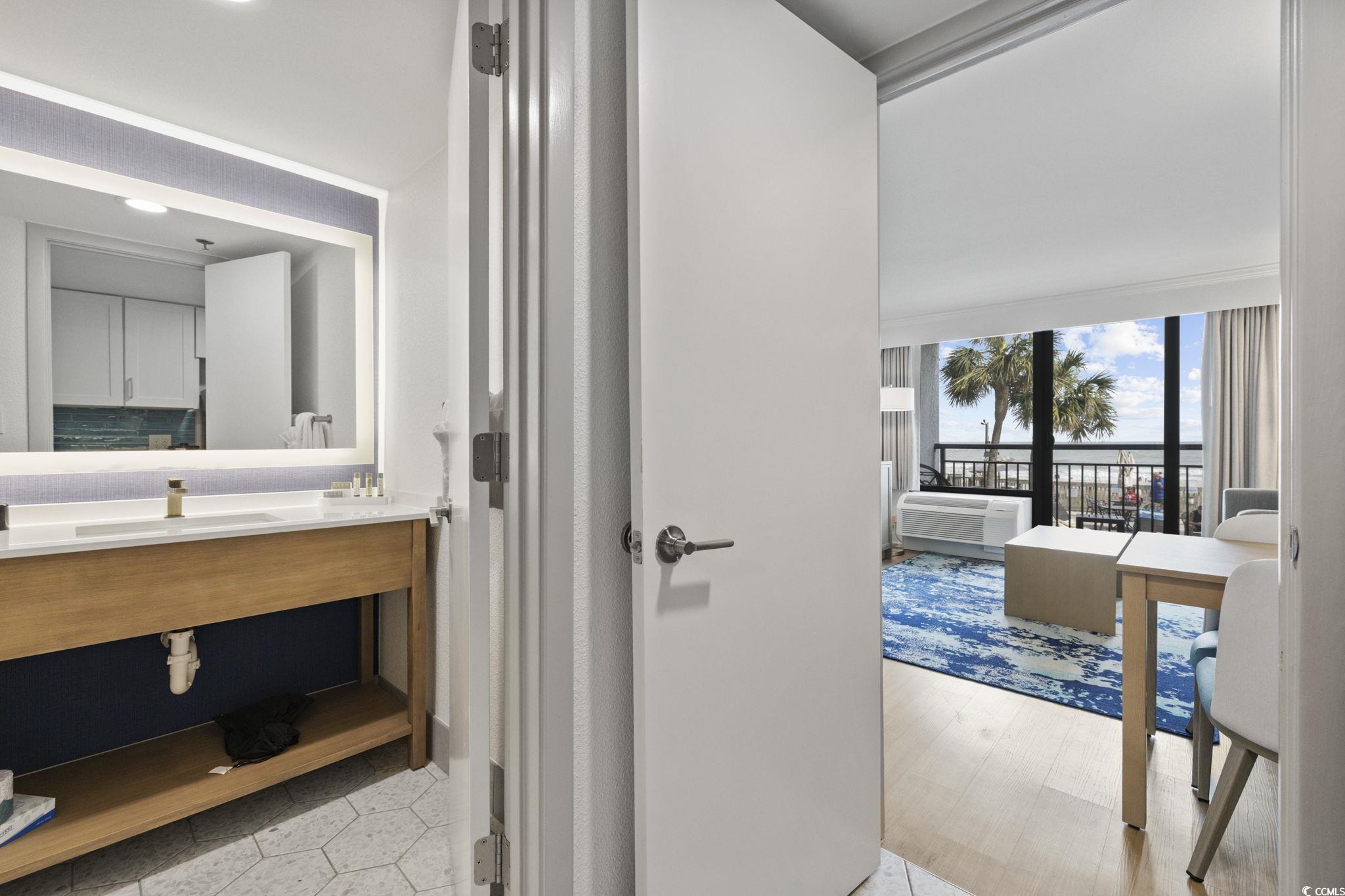 This 1BR-1BA Ocean Front Condo at the Caribbean Resort is the perfect beach get away and/or investment. It has an outstanding year-round vacation rental history! Unit 130 is located on the first floor no stairs or elevator waiting required also easy access from entrance loading area. This property has taken part in an upfit and has been upgraded with luxurious features including stunning quartz countertops, custom-designed furniture, upgraded lighting and artwork, and a sleek ceramic tile backsplash in the kitchen. The bathrooms now feature elegant nickel shower trim and accessories, while blackout draperies and stain-resistant upholstery add both style and durability. New laminate flooring was recently installed in the bedroom & living room. This unit can sleep 8 people, it has two queen beds, a murphy bed and a pull-out sofa! The spacious balcony has beautiful ocean views and overlooks the main outdoor pool. The Caribbean Resort amenities include enclosed climate-controlled corridors, oceanfront indoor and outdoor amenities - pools, hot tubs, lazy rivers, kiddie pools, a sun deck, shuffleboard, a water slide, and a seasonal bar and grill. A Starbucks and a yogurt shop are located directly across the street. The Caribbean Resort is located on the north end of the beach, a short drive to Broadway at the Beach, Myrtle Beach Convention Center, Boardwalk, Skywheel, plenty of great restaurants, shopping and highly rated golf courses.