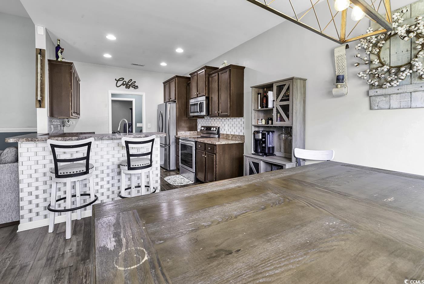 Welcome to 604 McClain Farm Court, a charming 4-bedroom, 2-bathroom home that seamlessly blends comfort and modern style. Located just off Route 905, this residence offers convenient access to local amenities and is only a 25-30 minute drive to the beautiful beaches of South Carolina. Originally built in 2015, the home features soaring vaulted ceilings and brand-new luxury vinyl plank flooring, creating a warm and inviting atmosphere. The spacious living area flows effortlessly into a kitchen adorned with an upgraded backsplash, enhancing its contemporary appeal. An exceptional highlight of this property is the converted garage, now a fully heated and cooled space serving as an additional bedroom, expanding the home's versatility. Outside, the fully fenced backyard is perfect for entertaining, offering space for barbecues, play, and relaxation, along with a versatile shed for extra storage. Situated in the heart of Conway, this home resides in a peaceful neighborhood with a low HOA fee. Don't miss the opportunity to experience the perfect blend of Southern charm and modern living at 604 McClain Farm Court.