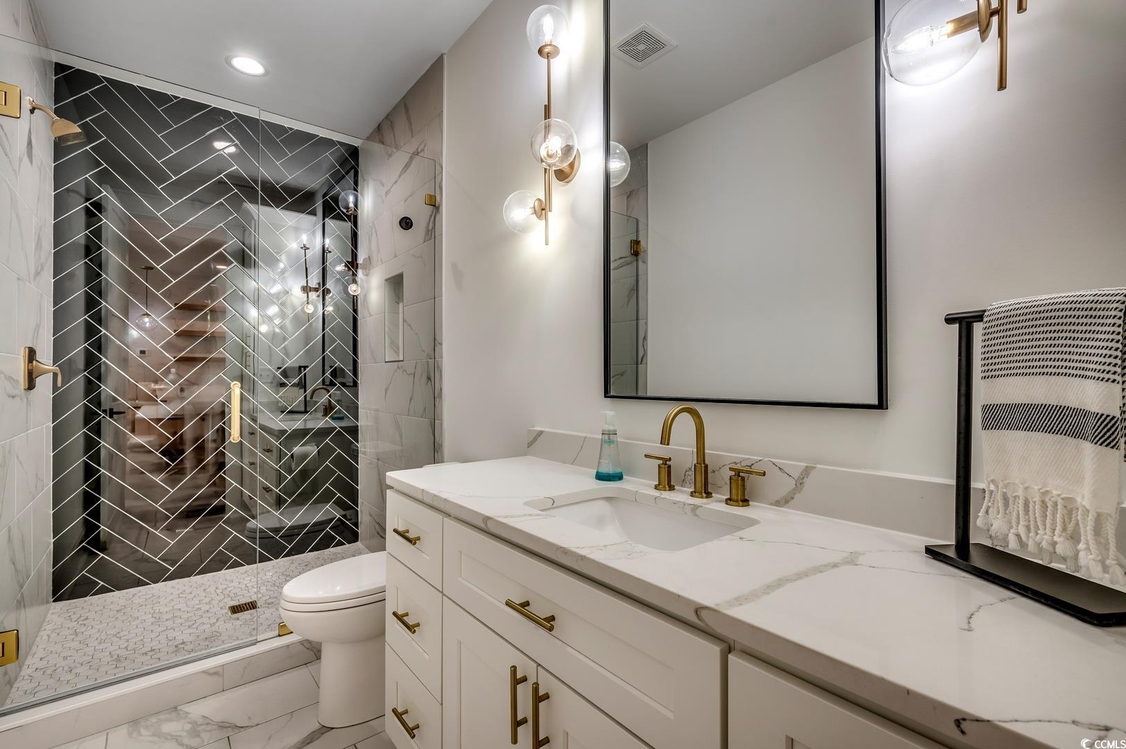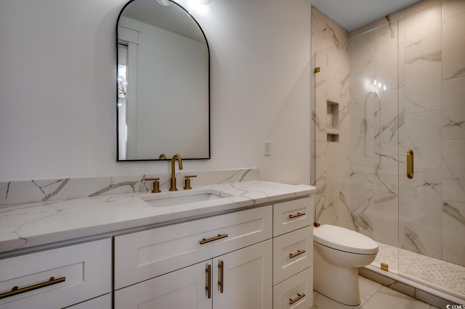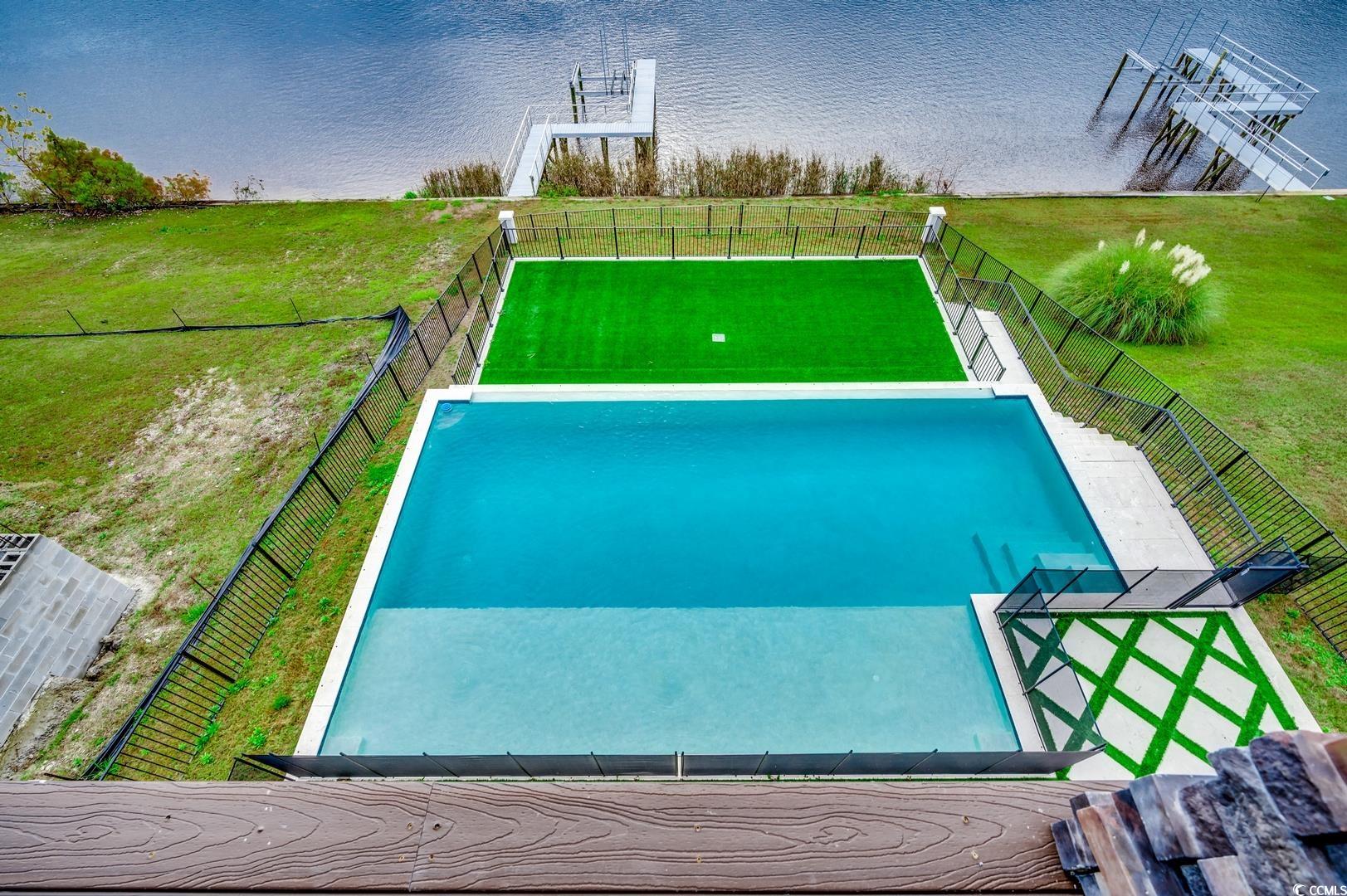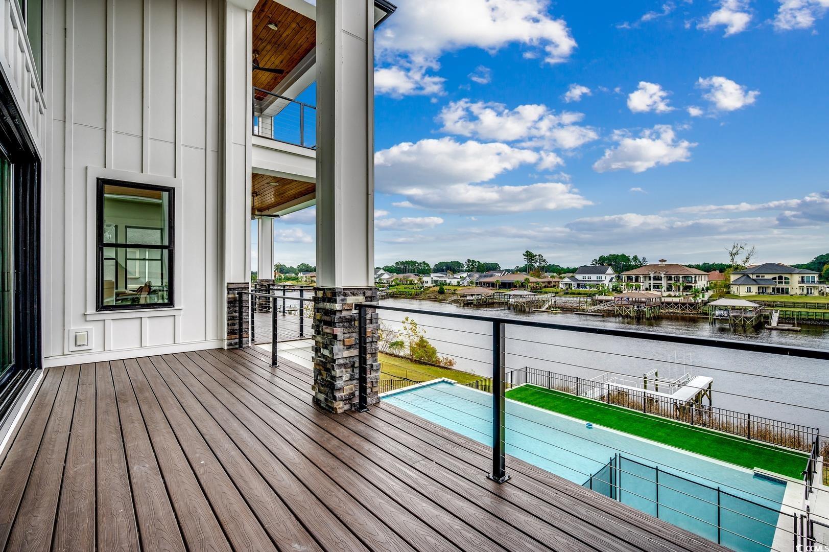 One of the nicest homes you will find in Myrtle Beach. This remarkable custom home was built in 2023 by Rowe Ventures Custom Homes. This home features eurpoean white oak hardwood floors throughout. It has 5 bedrooms each with their own private ensuite. Interior Features include black windows, large sliders, 2 story living room, 3 stop elevator and high end lighting. Covered outdoor porches on all 3 floors, maintenance free trex decking and custom cable railings. The kitchen features Jennair Appliances including a 48"" JennAir Range, 60"" Built in Refrigerator/Freezer, Brizo Plumbing Fixtues, Quartz Counters and beautiful light fixtures. The ground floor offers a large game room with it's own kitchen and private bedroom which was setup as an deal in law suite. The main floor features the kitchen, living room, dining room, pantry, powder bath and 2 large spare bedrooms. The top floor features laundry room, balcony overlooking the living room, master suite, dream master closet, a large private porch only for the master and another spare bedroom with ensuite. The backyard is excellent for entertaining with an outdoor kitchen, 40' infinity egde lap pool and a private lower level area with artificial sod great for a kids play area. Just beyond that you have a fence in yard for a pet and your own dock and boat lift. This house will sell fast so hurry before it's too late.