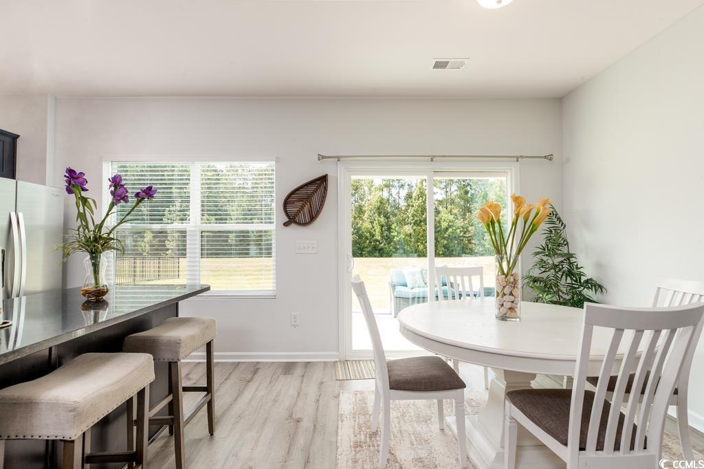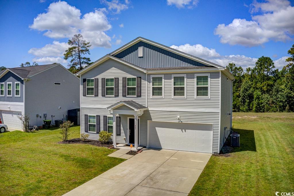 Welcome to your spacious, modern 5-bedroom, 3-bathroom home in the sought-after Coastal Point community. Built in 2021, this bright and beautifully maintained home offers over 2,272 square feet of living space with the ideal layout for growing families. Enjoy a stylish open-concept design, durable luxury vinyl plank flooring, and an island kitchen featuring granite countertops, stainless steel appliances, and cherry cabinets. The main-level bedroom is perfect for guests or a home office, while the upstairs loft offers a bonus flex space for play, study, or media. The primary suite boasts vaulted ceilings and an upgraded en-suite with an oversized walk-in shower. Outside, relax on your covered back patio with peaceful creek views, or enjoy your morning coffee from the charming front porch. Located just across from Black Water Middle School, and 1 mile from Coastal Carolina University, convenient to the beach, shopping, and downtown Conway, this home is a rare opportunity at this price. With a two-car garage, a quiet cul-de-sac location, and low HOA fee, 447 Archer Ct checks all the boxes for comfort, convenience, and peace of mind.