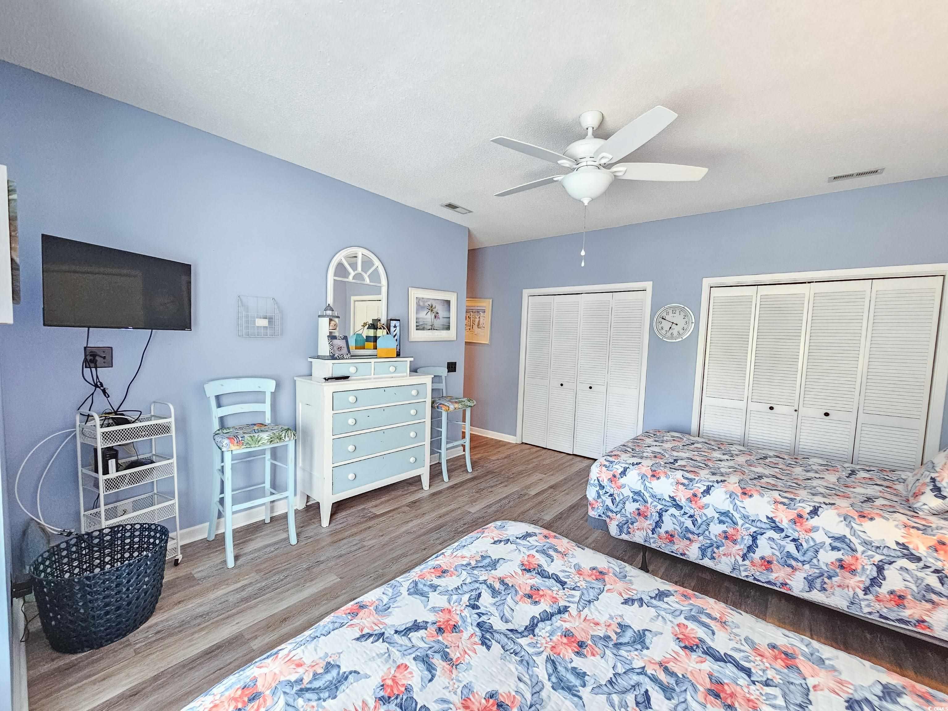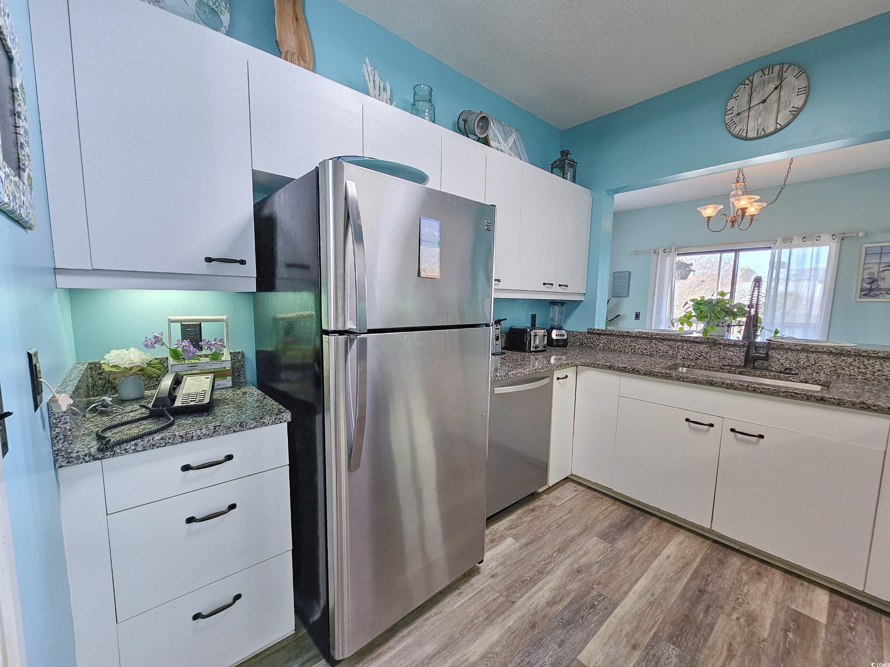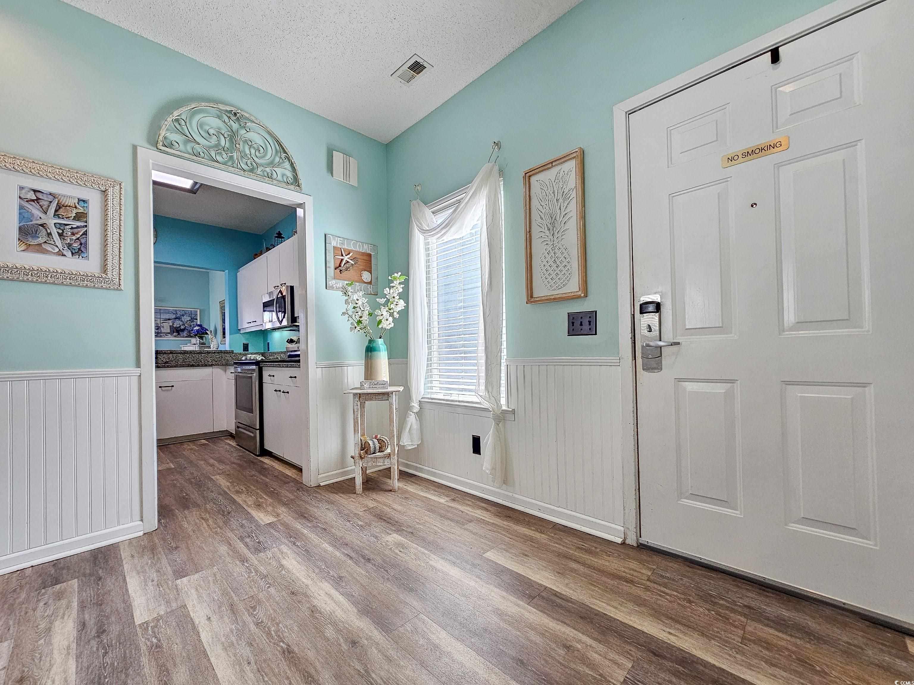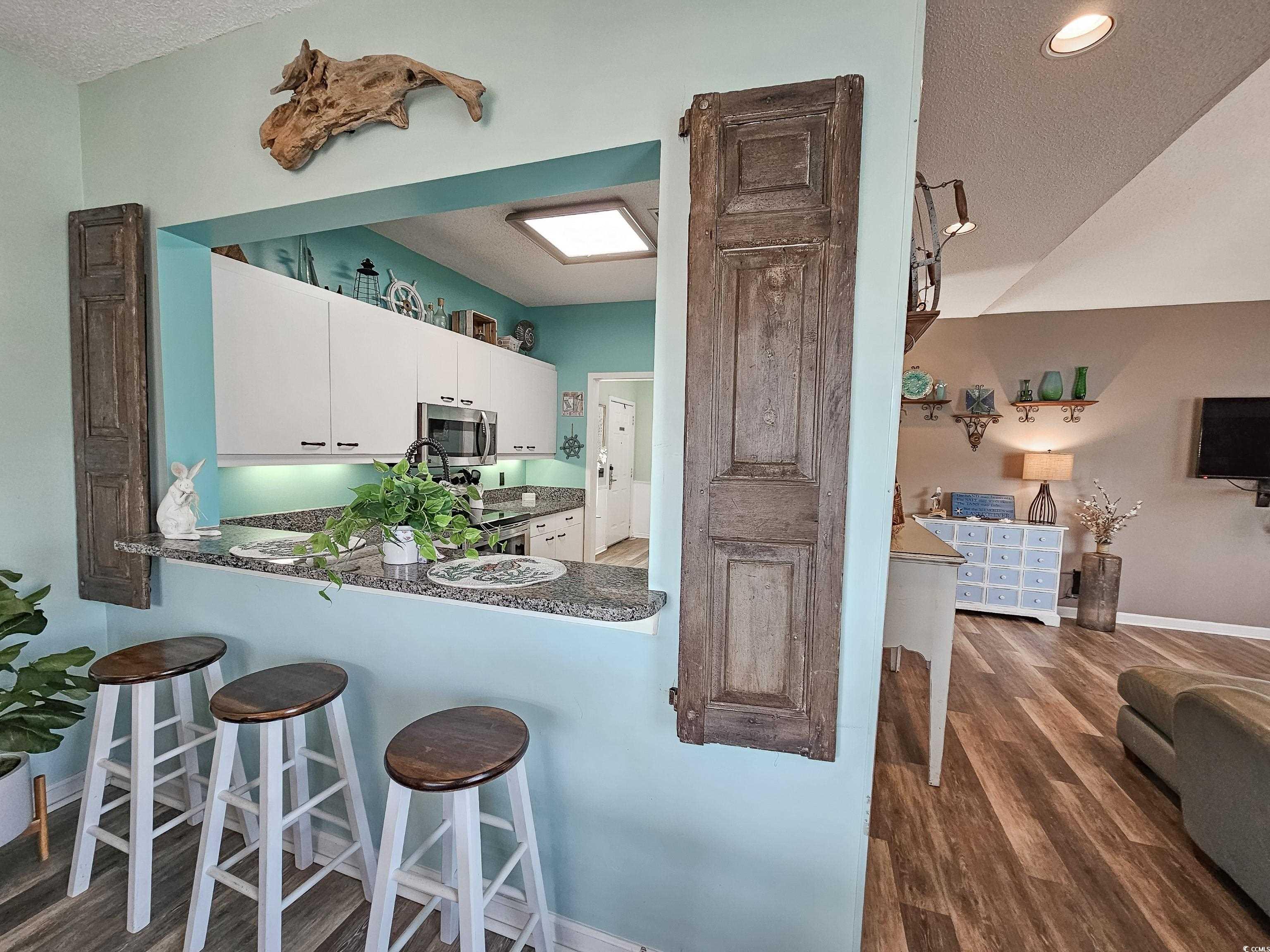 You are going to LOVE this floor plan with 1,741 total square feet, a large screened-in porch and a private garage! This three-bedroom, three-bath residence has vaulted ceilings, palladian windows, LVP and tile flooring, a Euro-style kitchen with solid surfside countertops, stainless steel appliances, and a dining area that steps off onto the screened porch. Large primary suite with jacuzzi-style tub, walk-in shower, and double vanity. Each bedroom has an adjoining bathroom. Kingston Resort is a 145-acre master-planned community in the heart of Myrtle Beach. Amenities galore include an oceanfront hotel, restaurants, a magnificent Spa & Fitness center with an indoor pool, tennis and pickleball courts, putting green, golf simulators, a 12-acre freshwater lake, and multiple pools. One-half mile of sandy beaches and a gated community. Great primary, second home or rental option. Sold fully furnished. Some resort amenities are only available through the Hilton on-site rental program.