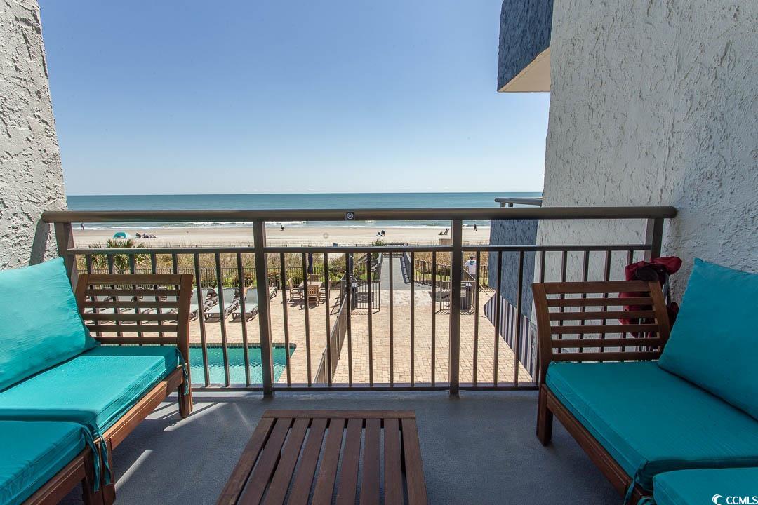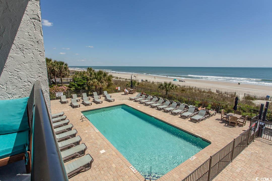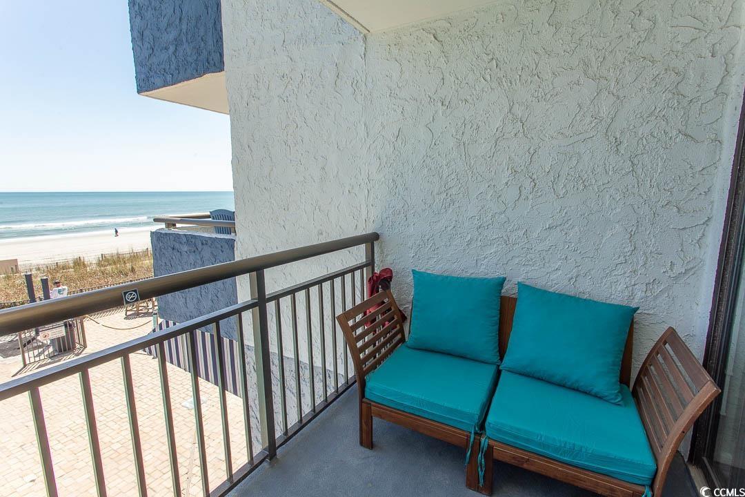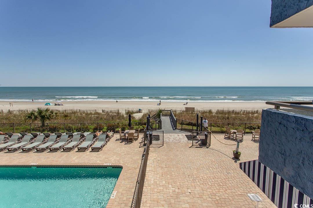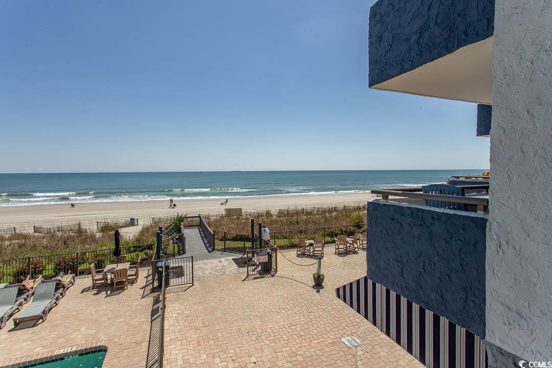 DIRECT oceanfront condo Bluewater Resort. Lobby secured with code to enter. 24 hour security on site. Breathtaking views from this FURNISHED one bedroom one bath offering new granite countertops/backsplash in kitchen. Luxury vinyl plank flooring throughout + smooth ceilings. Bathroom offers double sink vanity with tub/shower combination. New sleeper sofa and King Bed + new 50"" smart TV living area. Whether investor or 2nd home or Primary residence, Bluewater Resort offers wonderful amenities; heated indoor/outdoor pool, 4 outdoor pools, 4 hot tubs, lazy river, laundry facilities, on-site restaurant, oceanfront seasonal tiki bar and more! Located just minutes from International Airport, shopping at Market Common area, restaurants and entertainment. All utilities (electric, water, cable, internet insurance) included in HOA. Let the summer begin here!
