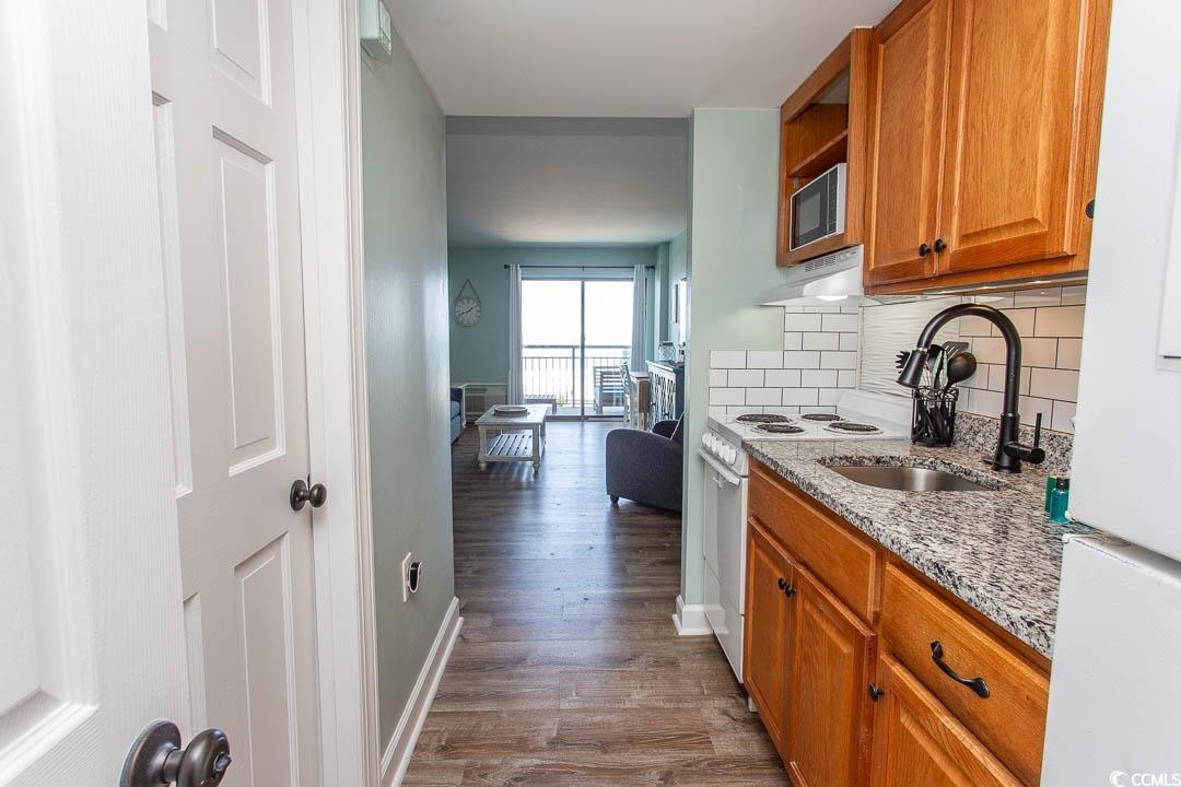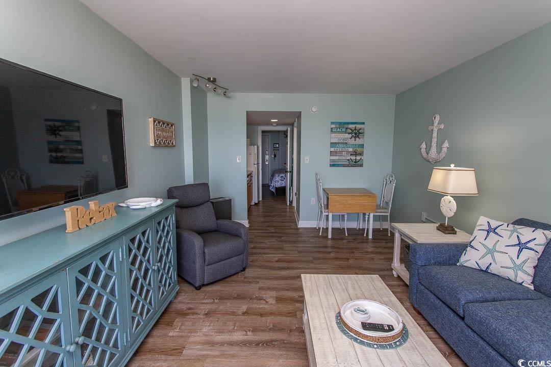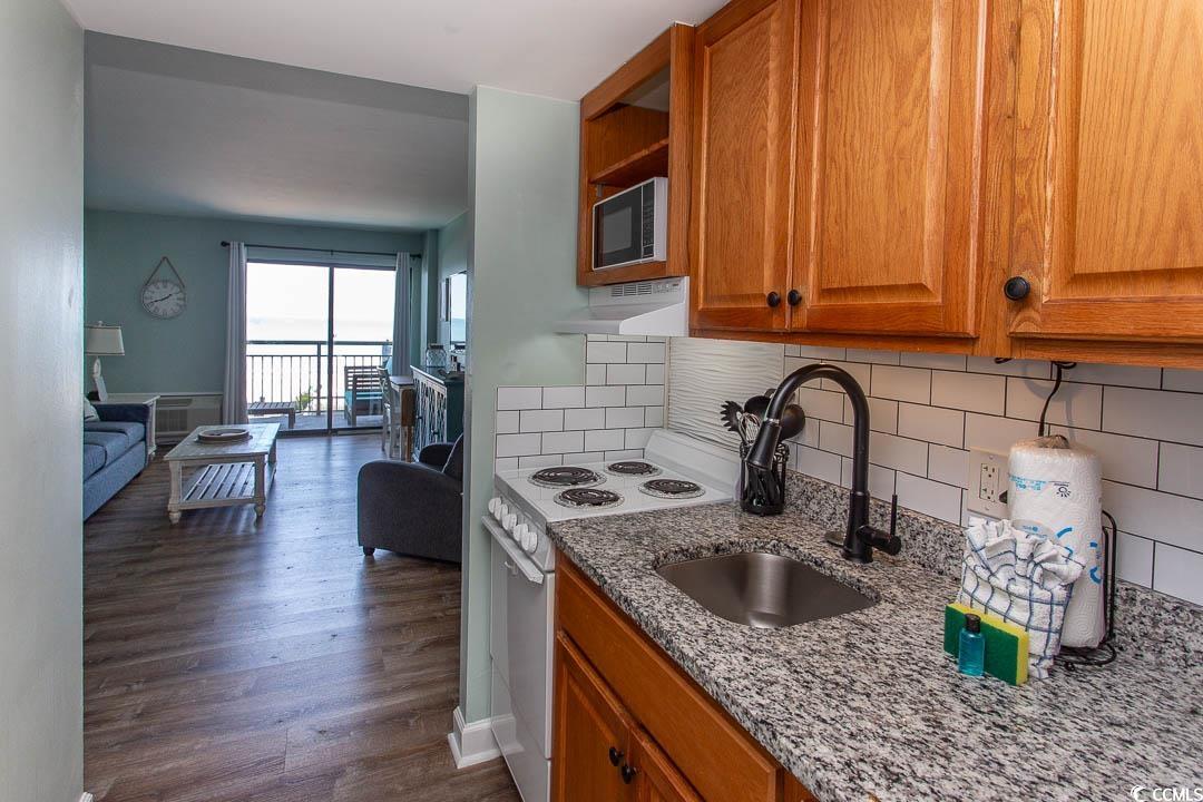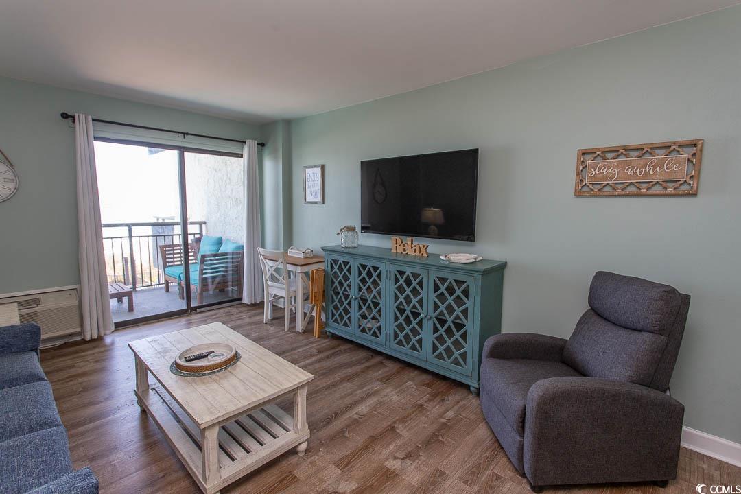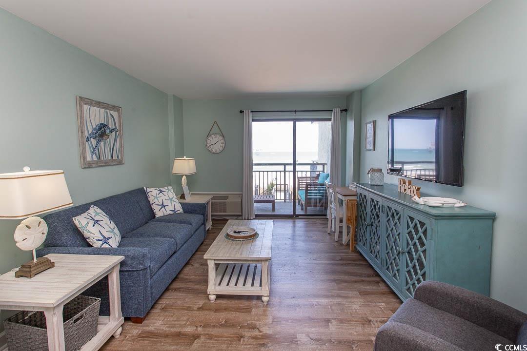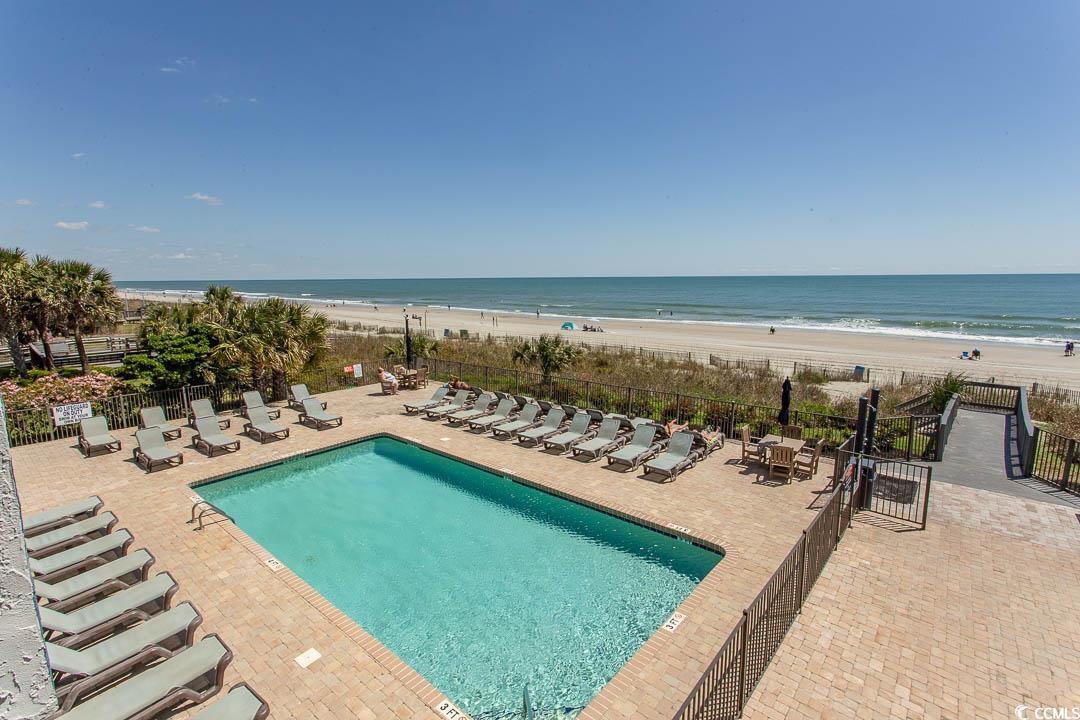 DIRECT oceanfront condo Bluewater Resort. Lobby secured with code to enter. 24 hour security on site. Breathtaking views from this FURNISHED one bedroom one bath offering new granite countertops/backsplash in kitchen. Luxury vinyl plank flooring throughout + smooth ceilings. Bathroom offers double sink vanity with tub/shower combination. New sleeper sofa and King Bed + new 50"" smart TV living area. Whether investor or 2nd home or Primary residence, Bluewater Resort offers wonderful amenities; heated indoor/outdoor pool, 4 outdoor pools, 4 hot tubs, lazy river, laundry facilities, on-site restaurant, oceanfront seasonal tiki bar and more! Located just minutes from International Airport, shopping at Market Common area, restaurants and entertainment. All utilities (electric, water, cable, internet insurance) included in HOA. Let the summer begin here!