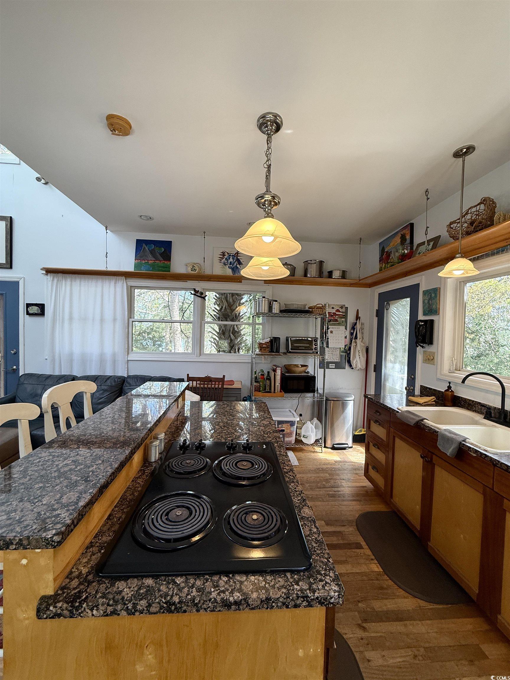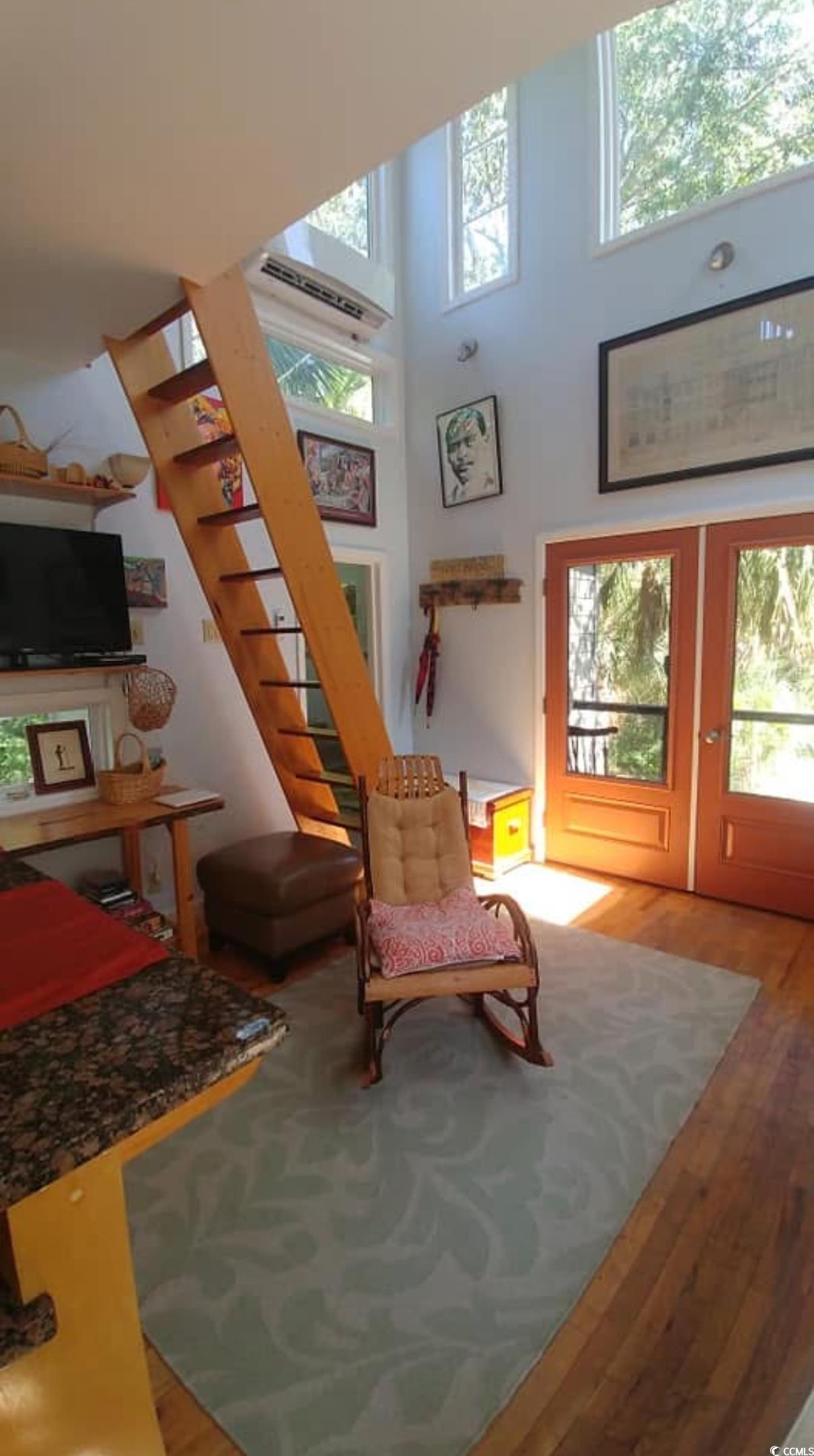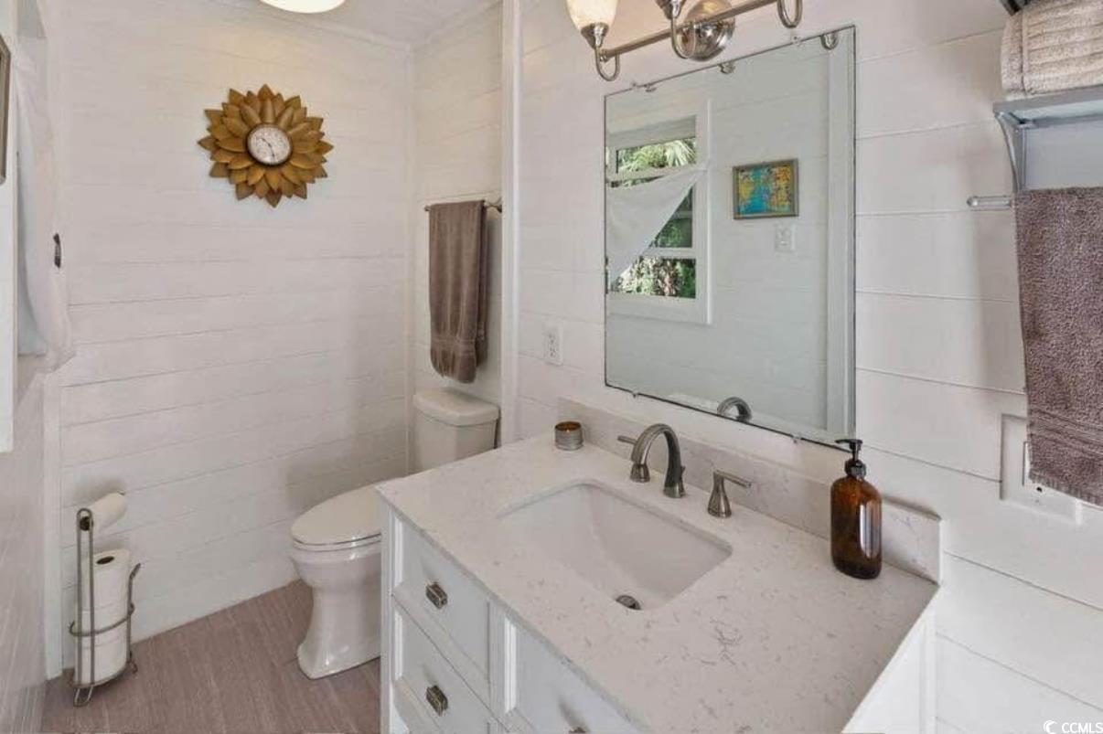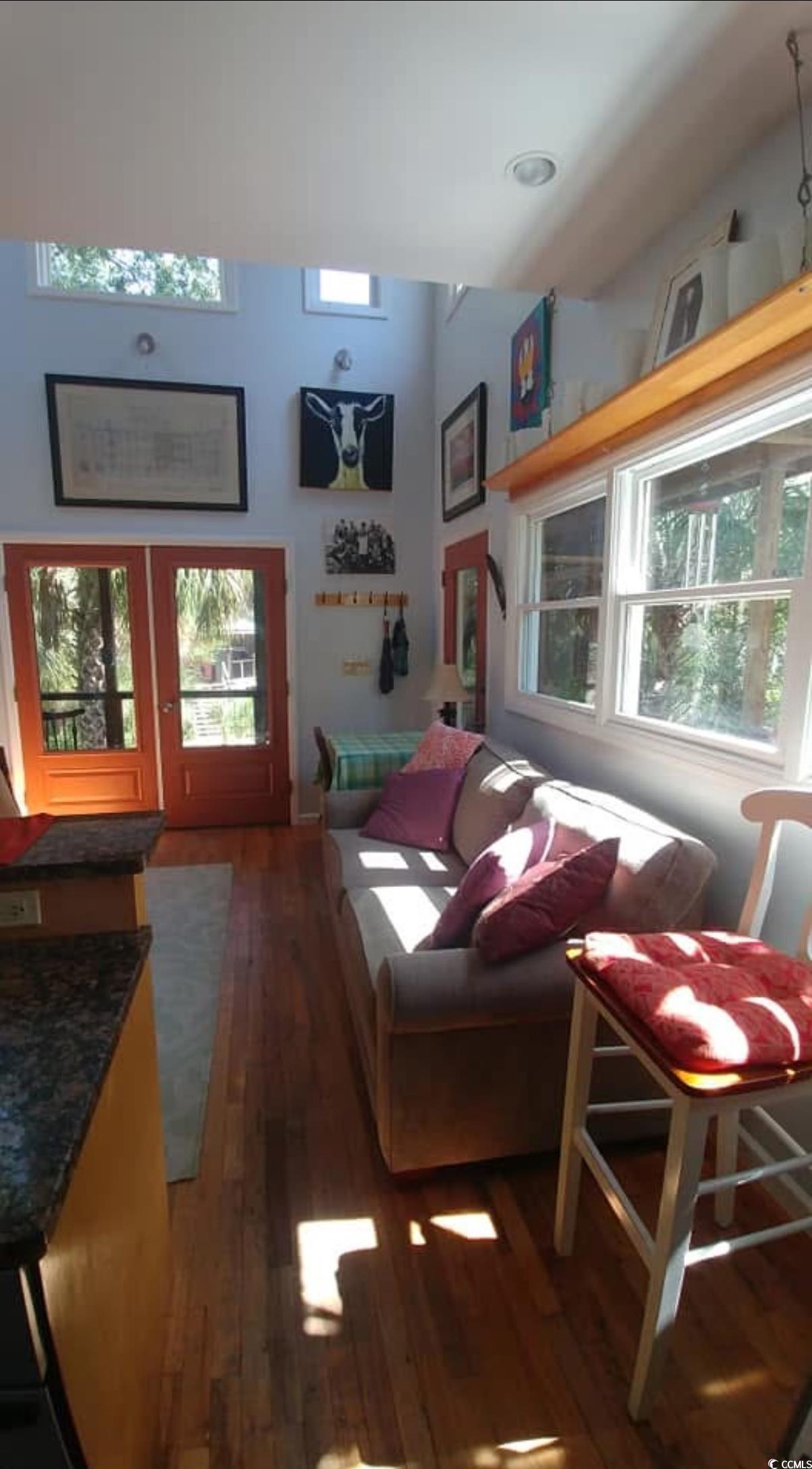 As the boat eases up to the dock at 4113 Buccaneer Road on Goat Island, you feel the busy life melt away and your peace and tranquility begin to settle. Beautiful landscape awaits you as you travel down the dock to find the house perfectly nestled amongst the palms and oaks, giving you the serene beauty of coastal living. The host of many charity events, large family gatherings, even weddings can be enjoyed at this island oasis. In the main dwelling, the large windows and outdoor living spaces give the feeling of treehouse living. The main loft bedroom overlooks the living/kitchen area. Imagine a serene, spacious bathroom nestled in nature, where large windows let in abundant natural light and offer views of the surrounding landscape. Downstairs, away from the main living area, there is an additional guest bedroom.