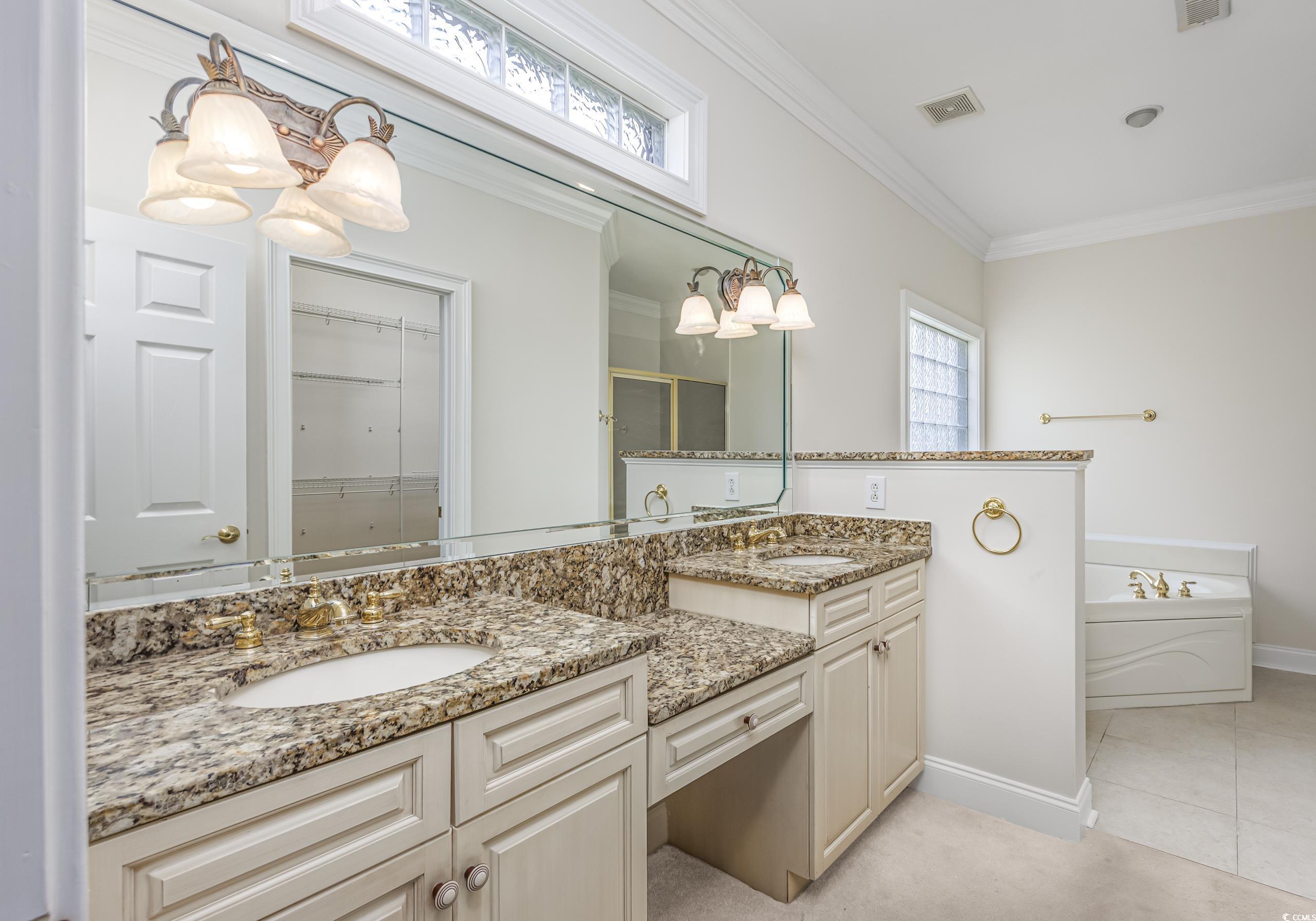 Check out this beautifully updated all-brick residence in the highly sought-after, gated community of Seaside Plantation in North Myrtle Beach! Perfectly located east of Highway 17 and less than a mile to the beach via 8th Avenue North, this home blends coastal convenience with timeless comfort. Offering 2,632 heated square feet on a single level, this 3-bedroom, 2.5-bath home has been REFRESHED WITH NEUTRAL PAINT THROUGHOUT, REPAIRED FLOORING, NEW APPLIANCES, AND A NEW ROOFmaking it truly move-in ready. Step inside to find a spacious living room with a vaulted ceiling and cozy fireplace, seamlessly flowing into the bright Carolina Room, where natural light and backyard views create the perfect space for relaxing or entertaining. The formal dining room, enhanced with wainscoting, provides a classic setting for special gatherings. The kitchen features granite countertops, new stainless steel appliances, ample cabinetry, a breakfast nook, and pantry, combining style and function for everyday living. A split-bedroom layout ensures privacy, with the expansive primary suite offering two walk-in closets plus a luxurious en suite bath with dual vanities, a jetted soaking tub, and separate shower. The primary bedroom also has direct access to the Carolina Room, extending the retreat feel. Two additional bedrooms share a well-appointed hall bath, while a convenient powder room serves guests. Outside, a large patio invites grilling, dining, and entertaining in a private setting. Practical features include a side-load garage with a mop sink, space for a workbench, and pull-down stairs to a floored atticperfect for extra storage. Living in Seaside Plantation means enjoying exclusive amenities such as a clubhouse and swimming pool, all while being just moments from shopping, dining, golf courses, entertainment, and everyday conveniences. With easy golf cart access to Tilghman Estates and the beach, this property offers the perfect combination of coastal lifestyle and community living.