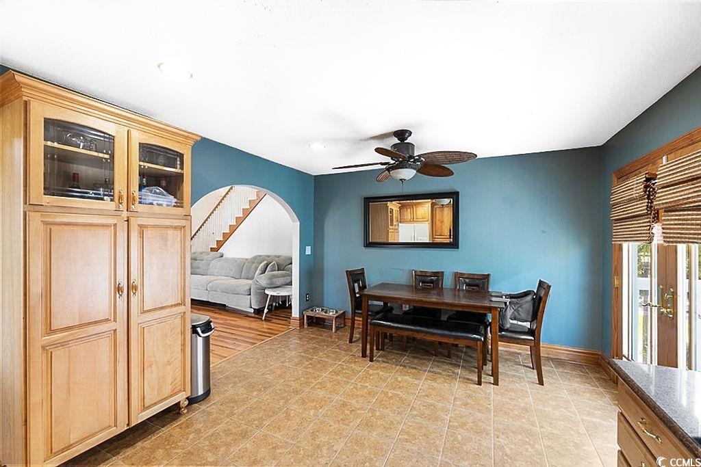 Experience coastal living in this beautiful, raised home, perfectly located within a short walk to the Marsh Walk and public boat landing into Murrells Inlet. This vacation home features 3 bedrooms and 2 bathrooms, show casing an open floor plan with vaulted ceilings that invite an abundance of natural light and character. The primary suite, situated on the second floor offers a private retreat, while a spiral staircase leads you to the roof top balcony, providing breathtaking views of Murrells Inlet and star gazing at night. On the ground floor, you will find a 3 garage doors and additional storage rooms for your golf cart and wave runner. Enjoy the fenced-in back yard with scenic water views adding to the charm of this coastal property. Nestled in the desirable Creekside Cottage neighborhood, this home includes access to the community pool and is just a short walk or golf cart ride to the vibrant Marsh Walk, where you'll have easy access to a variety of dining, and entertainment options in the heart of Murrells Inlet. Additionally, the boat landing to Murrells Inlet and the Atlantic Ocean is within easy reach. Whether you envision lazy afternoons by the water, exploring the vibrant local scene or fishing along the creeks, this property offers a perfect back drop for your dream coastal lifestyle.