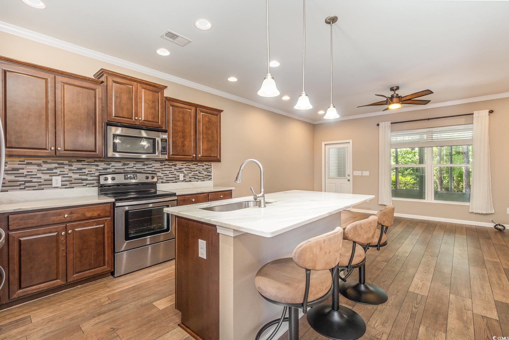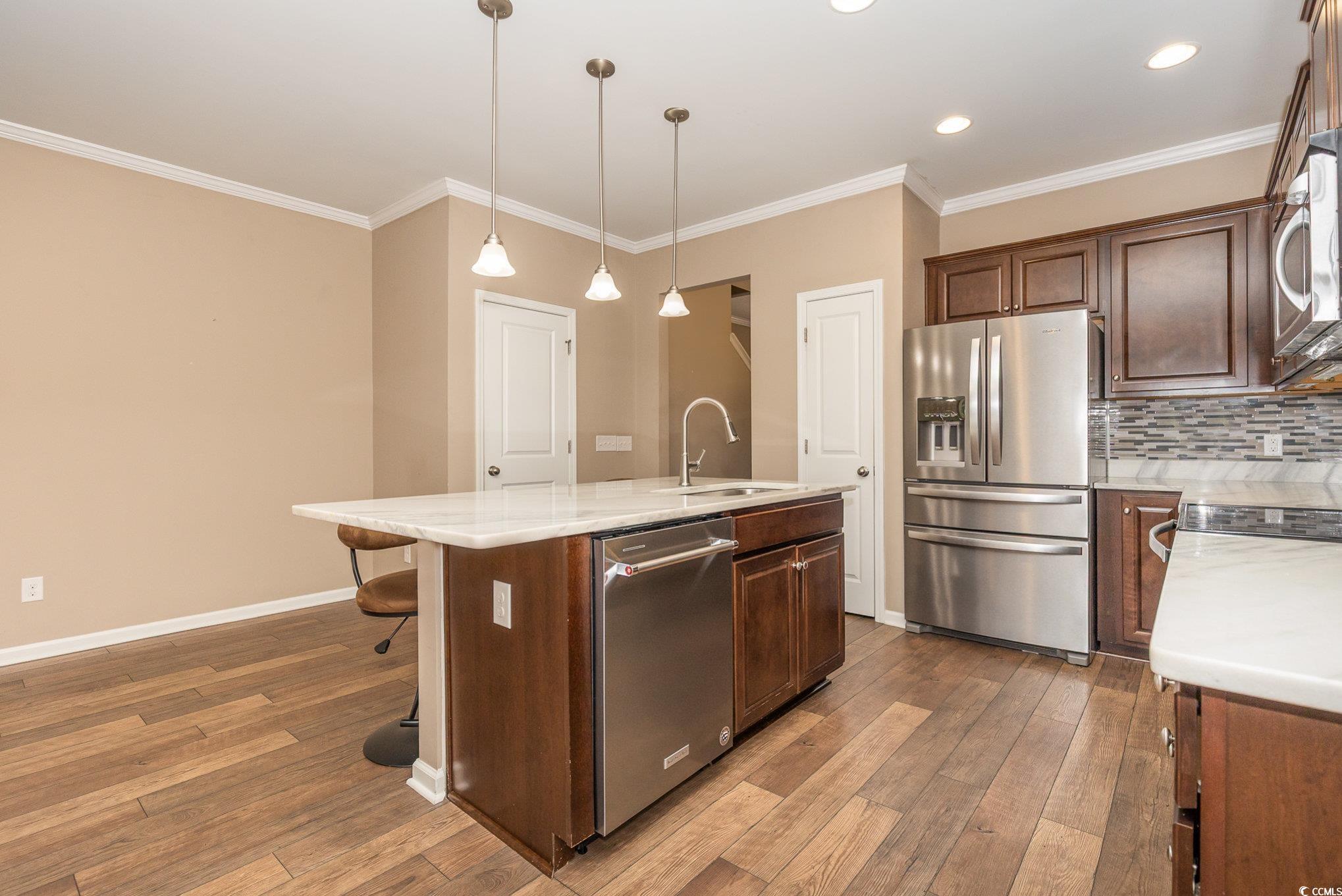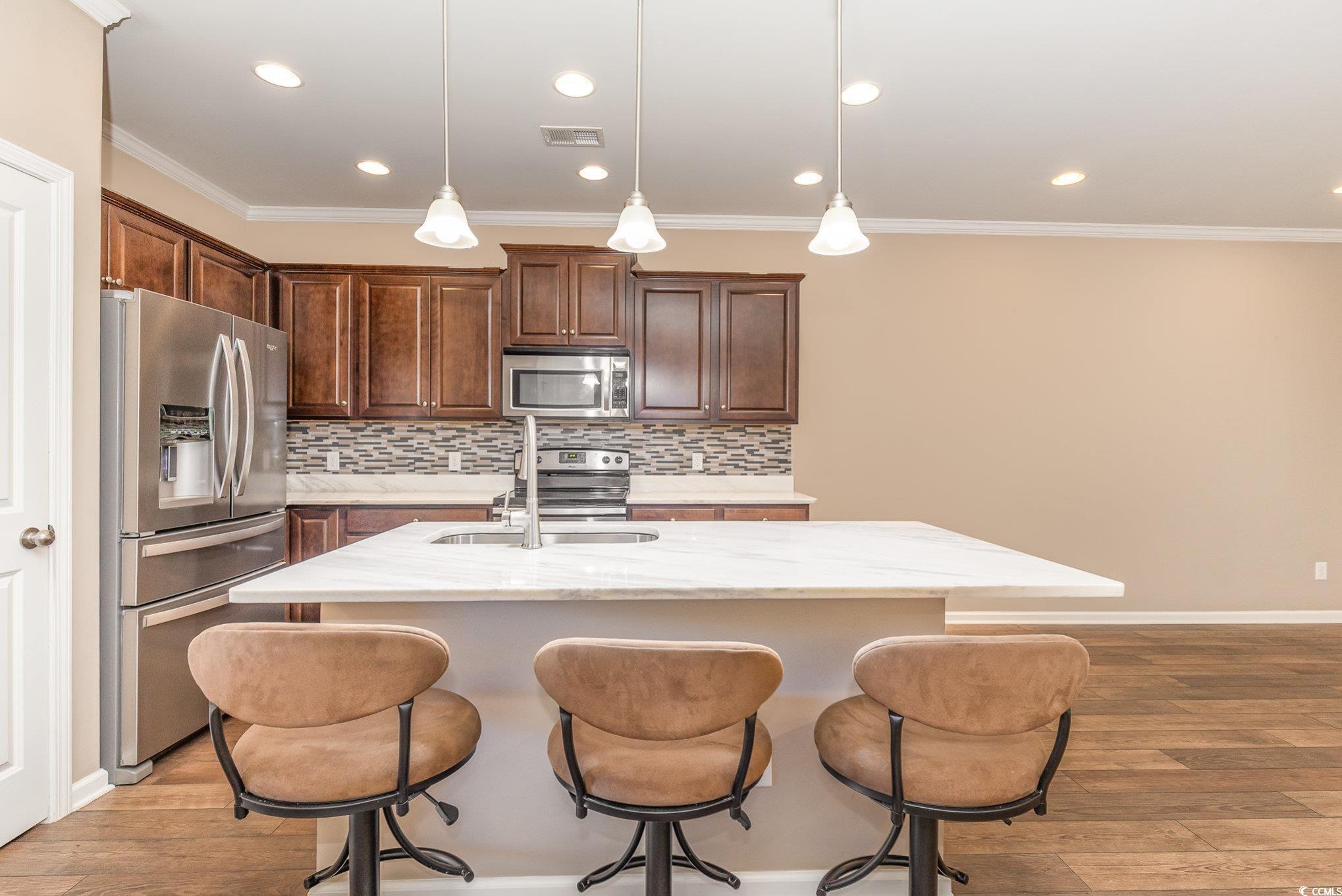 Location, location, location! Wonderful 3 bedroom, 3 bath townhome located in the beautiful community of Wellington in Socastee. This spacious unit features an open kitchen area with granite countertops, tile backsplash, extra-large island with seating, stainless steel appliances, spacious owner's suite with walk in closet, 2nd floor laundry room with washer/dryer, ceiling fans and crown molding throughout and a fully enclosed patio with tranquil views of a private wooded backyard. Wellington offers a fantastic community pool and sidewalks throughout the community. Centrally located to everything that Myrtle Beach has to offer including award winning schools, medical facilities, championship golf, shopping, restaurants, airport and the BEACH!!