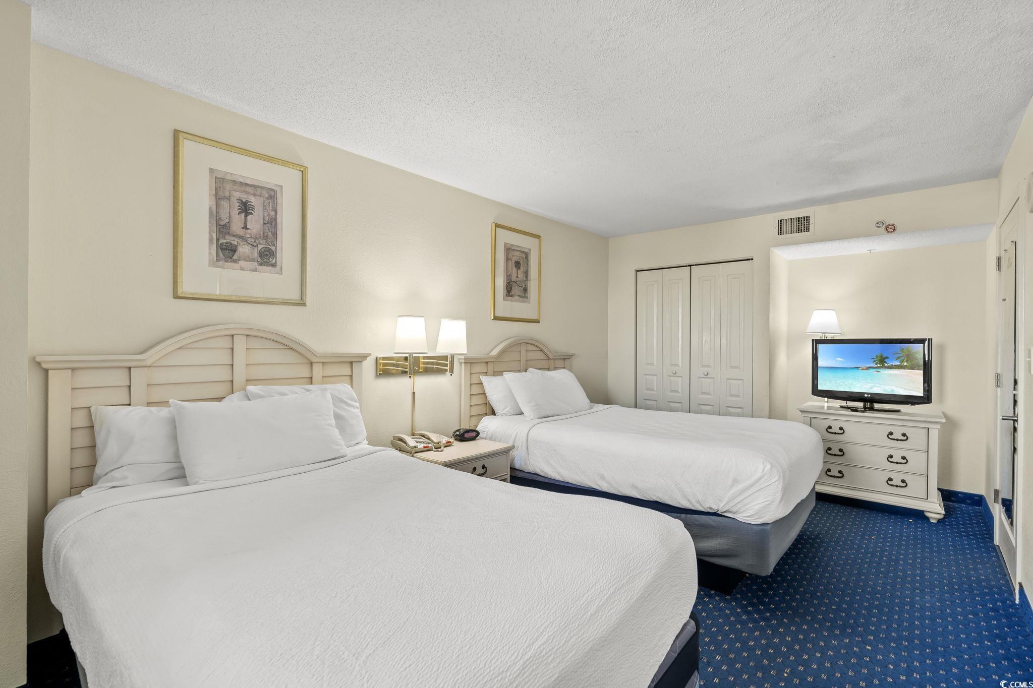Enjoy sweeping views of the blue Atlantic Ocean. This 2 bedroom/ 2 bath is the larger floor plan at Bay Watch & has the large oceanfront master suite includes access to the oceanfront balcony. The guest room has 2 queen beds and includes a full bath just off the hallway. Just bring your clothes and flip-flops, this condo is being sold fully furnished, including the new stack washer and dryer and new TV. Bay Watch amenities include many indoor/outdoor pools, , hot tubs and kiddie pool areas. There is also a restaurant for breakfast and lunch as well an oceanfront pub that offers live entertainment. There is also a gift shop for those last-minute gifts and small items you forgot to pack for vacation. AC replaced 2024