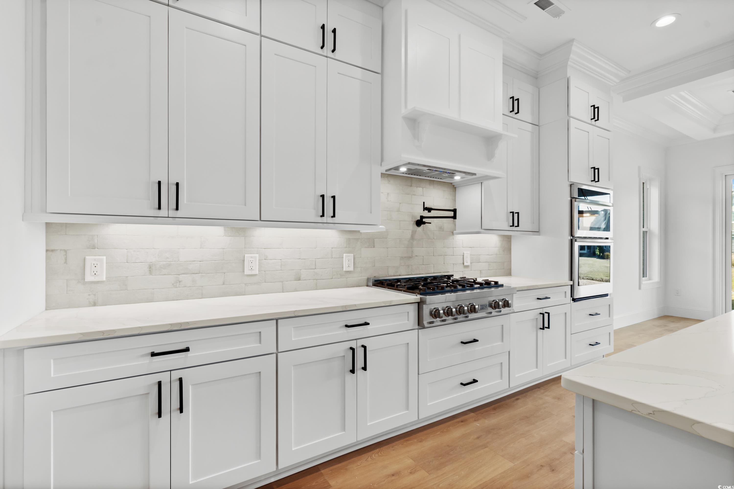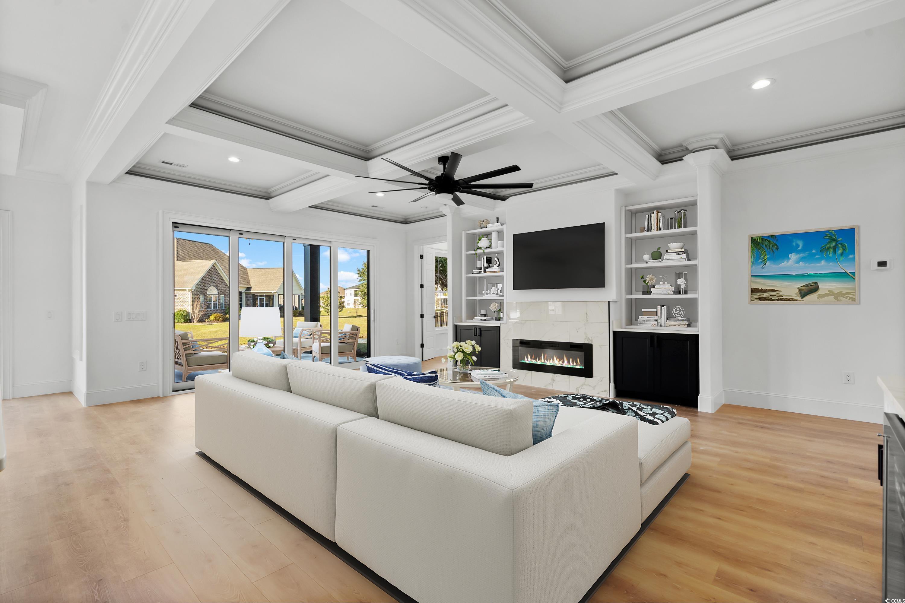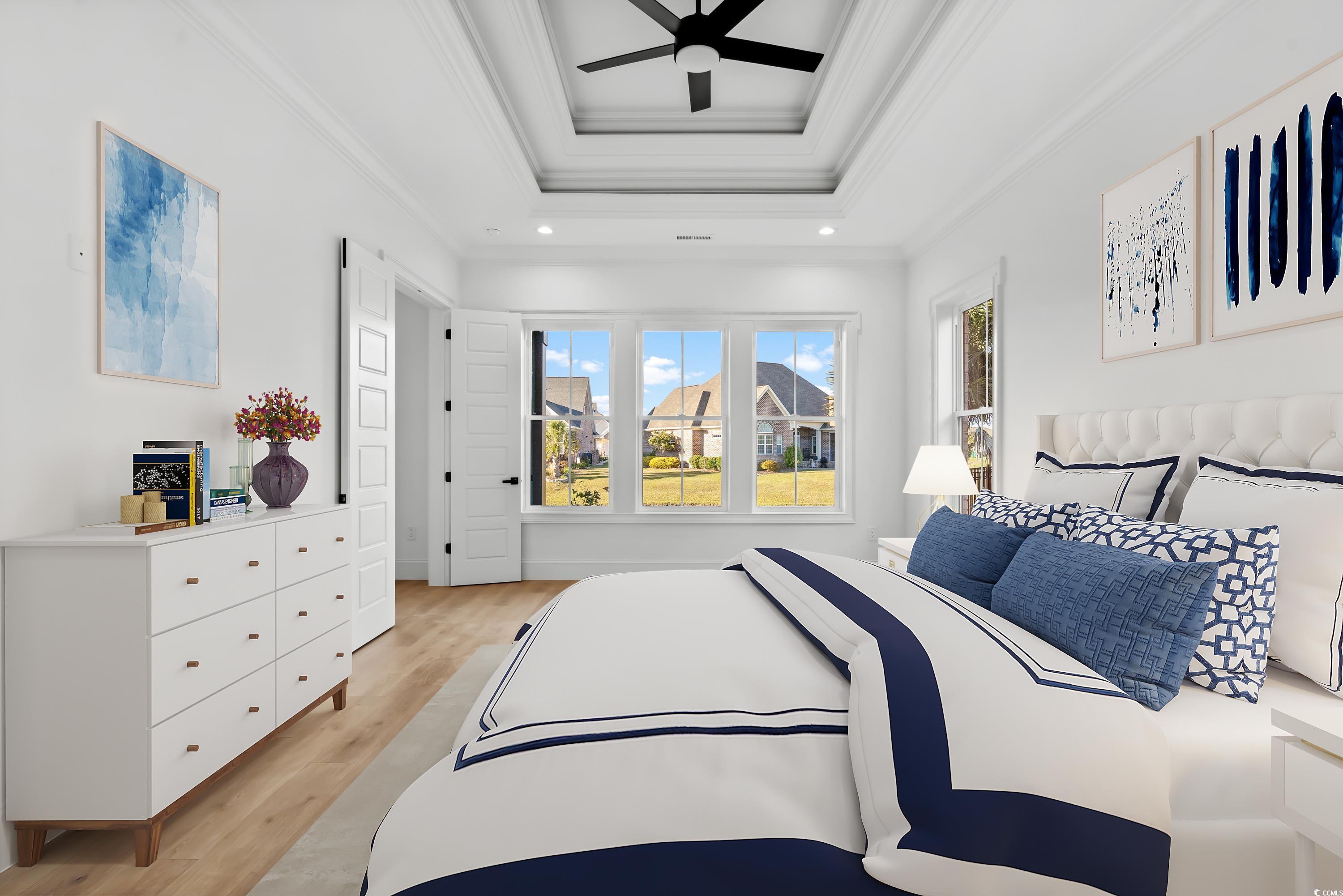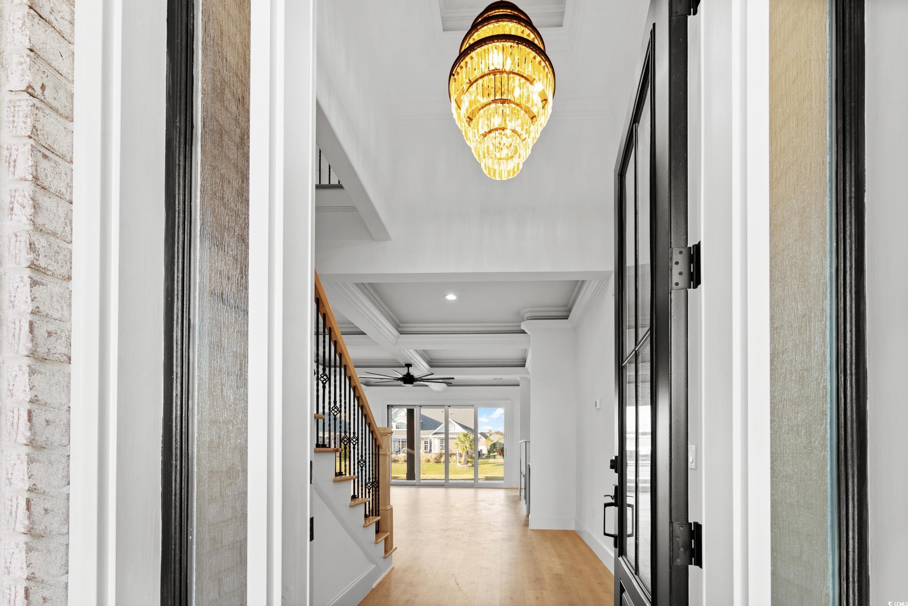 Welcome to this vibrant 4-bedroom, 4.5-bath custom home. With meticulous attention to detail, this house is brimming with features. From the fully bricked, hardie board accent, sound-constructed exterior to the expansive covered porches, oversized garages, and massive unfinished space, this home offers nearly 5,000 square feet under roof. As you step inside, youll immediately notice the open-concept design encompassing the living area, kitchen, and dining space. Two large sliding doors at the back of the home maximize the stunning water views this lot offers. The living room features breathtaking coffered ceilings, built-in cabinets, and an electric fireplace adorned with custom quartz and tile. Additionally, a true wet bar includes wine racks, a beverage cooler, and a sink, perfect for entertaining. The kitchen is a chefs dream, boasting a Z Line cooktop, a popular Samsung Bespoke refrigerator, and a Samsung wall oven and microwave, making cooking a breeze. Enjoy the convenience of a pot filler, an abundance of cabinet space, and a huge walk-in pantry. Imagine savoring your favorite meals while overlooking the rare and tranquil water views. The master bedroom exudes comfort and luxury with its double tray ceilings and Ritz-Carlton-style bathroom. The master bath features custom built-in closets, dual vanities with a makeup bar, a massive walk-in shower, and a soaking tub, creating a spa-like retreat. On the other side of the home, youll find an en suite guest bedroom with its own private bathroom, perfect for first-floor visitors. The first floor also includes a powder room and an oversized laundry room with ample cabinets and a convenient drop zone. Heading upstairs, youll discover two additional guest bedrooms, each with its own full bathroom and access to the second-story balcony. The upper level also boasts a massive unfinished space, ideal for storage or as a blank slate to create your dream room. Located in the private, gated Carolina Waterway Plantation community on the Intracoastal Waterway, this neighborhood offers a host of amenities, including private boat and RV parking, a fenced storage area, a private boat launch, tennis and pickle ball courts, basketball courts, a playground, an outdoor pool, sidewalks, and walking trails. Conveniently situated near shopping, Tanger Outlets, grocery stores, bike trails (like The Hulk), dog parks, and just a short drive to Myrtle Beach for dining, restaurants, and entertainment, this home truly has it all. What more could you ask for?