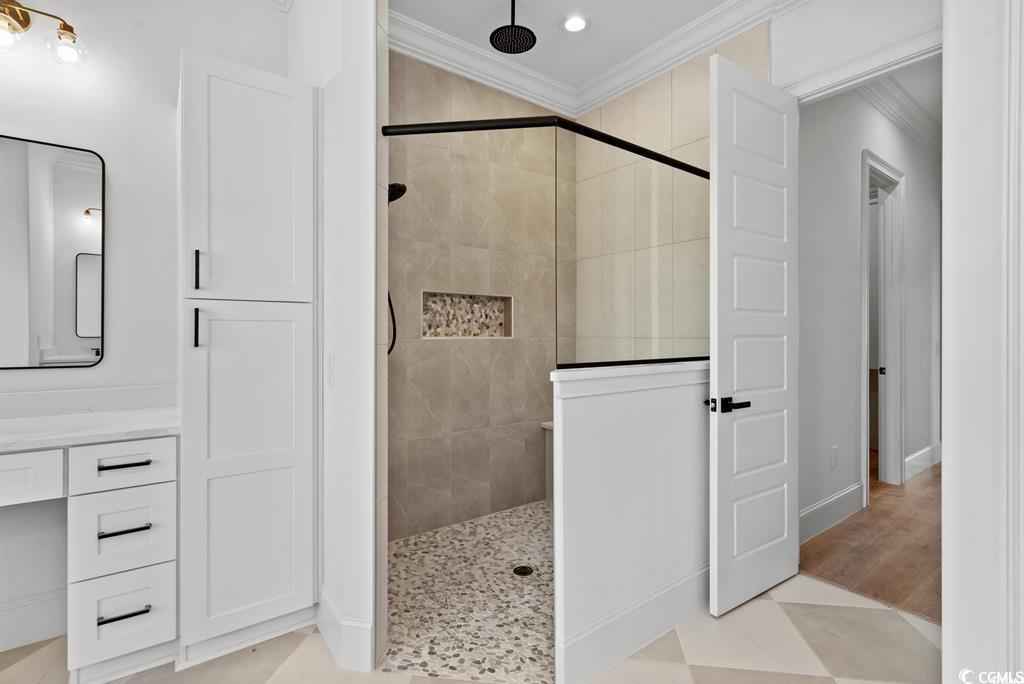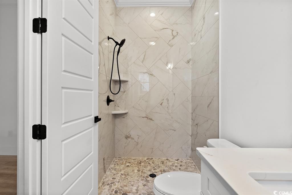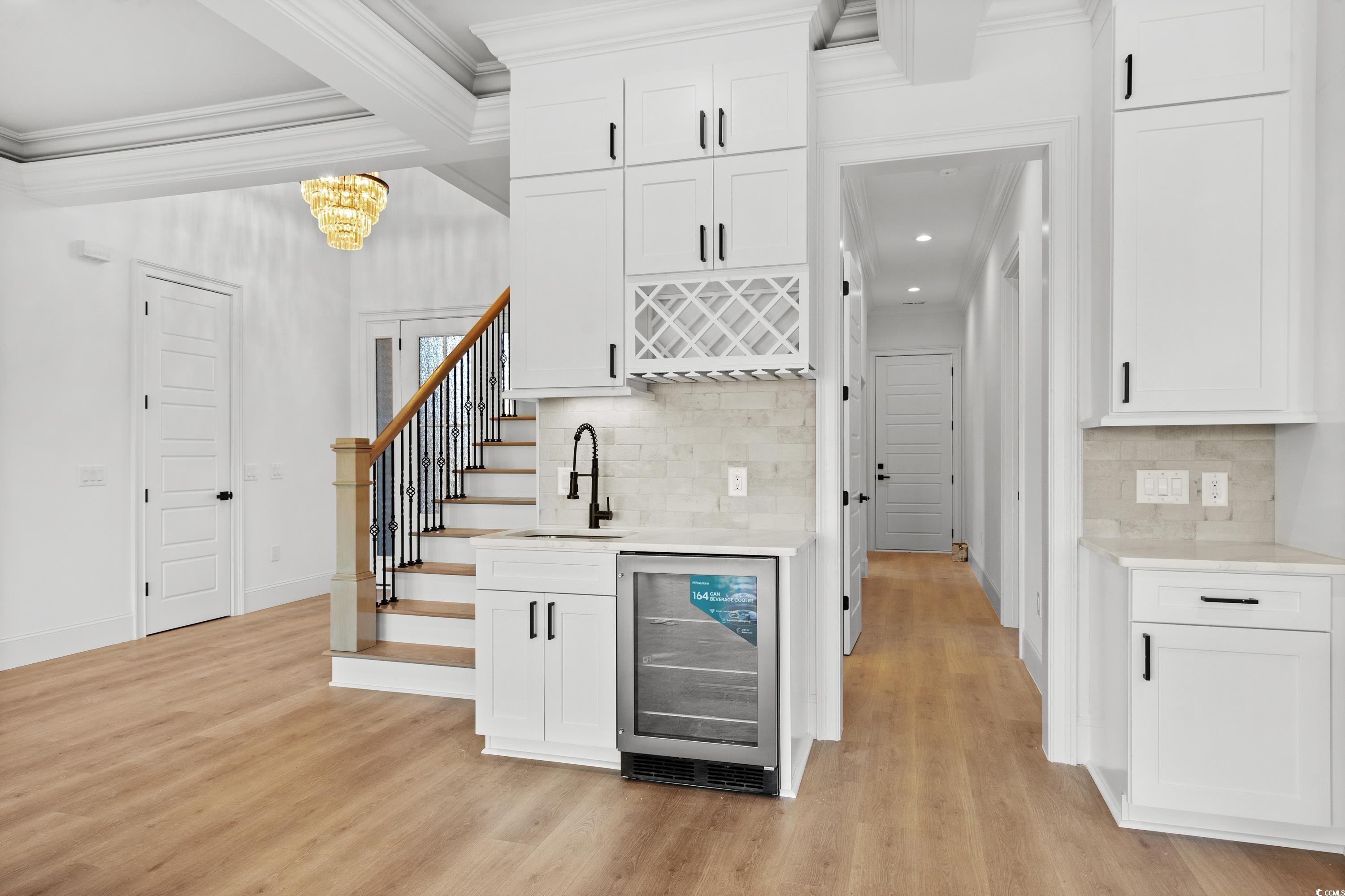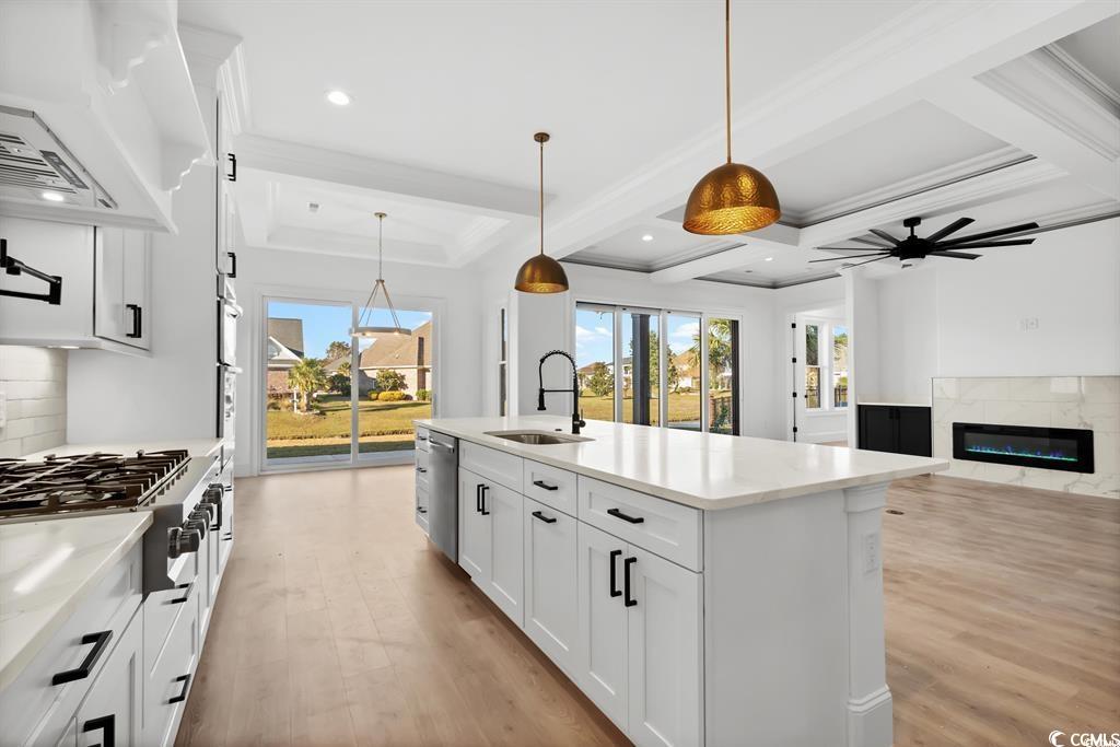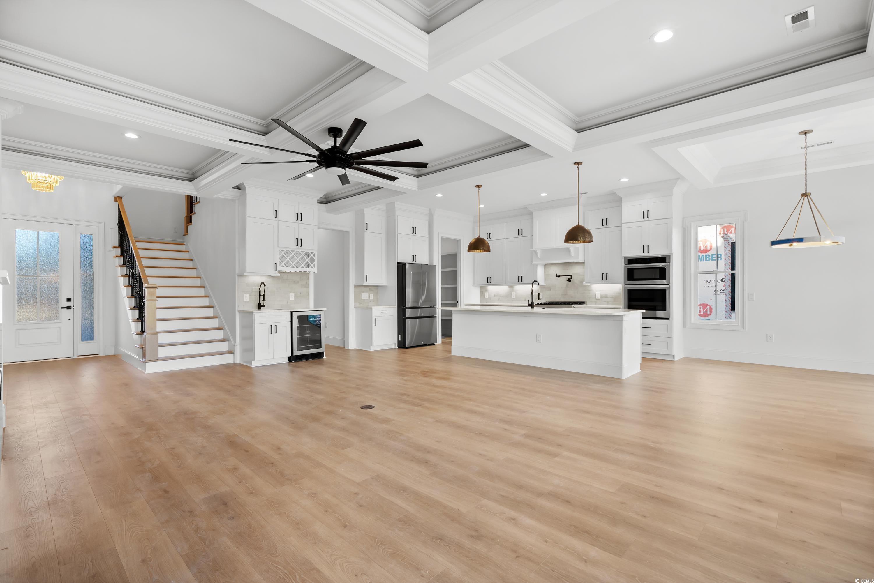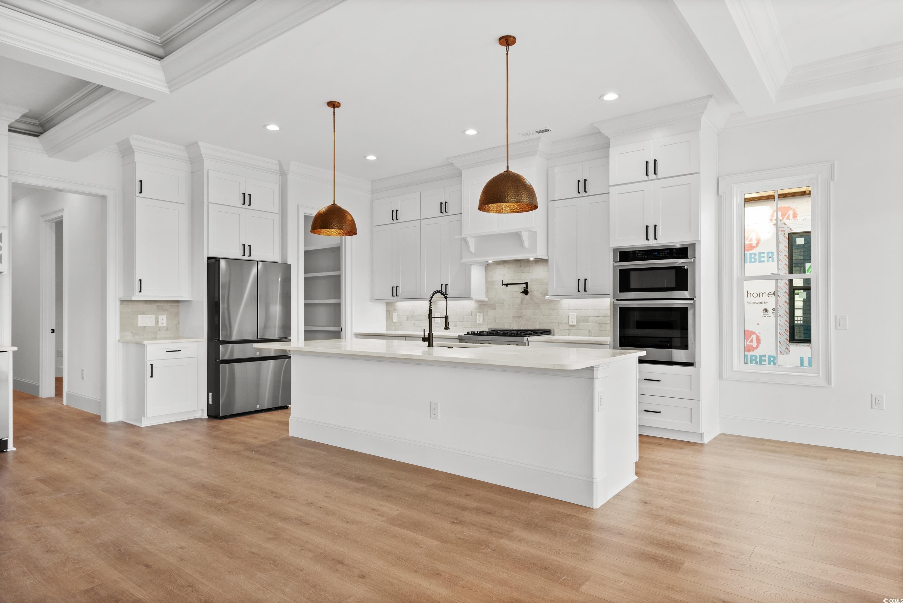 Welcome to this vibrant 4-bedroom, 4.5-bath custom home. With meticulous attention to detail, this house is brimming with features. From the fully bricked, hardie board accent, sound-constructed exterior to the expansive covered porches, oversized garages, and massive unfinished space, this home offers nearly 5,000 square feet under roof. As you step inside, youll immediately notice the open-concept design encompassing the living area, kitchen, and dining space. Two large sliding doors at the back of the home maximize the stunning water views this lot offers. The living room features breathtaking coffered ceilings, built-in cabinets, and an electric fireplace adorned with custom quartz and tile. Additionally, a true wet bar includes wine racks, a beverage cooler, and a sink, perfect for entertaining. The kitchen is a chefs dream, boasting a Z Line cooktop, a popular Samsung Bespoke refrigerator, and a Samsung wall oven and microwave, making cooking a breeze. Enjoy the convenience of a pot filler, an abundance of cabinet space, and a huge walk-in pantry. Imagine savoring your favorite meals while overlooking the rare and tranquil water views. The master bedroom exudes comfort and luxury with its double tray ceilings and Ritz-Carlton-style bathroom. The master bath features custom built-in closets, dual vanities with a makeup bar, a massive walk-in shower, and a soaking tub, creating a spa-like retreat. On the other side of the home, youll find an en suite guest bedroom with its own private bathroom, perfect for first-floor visitors. The first floor also includes a powder room and an oversized laundry room with ample cabinets and a convenient drop zone. Heading upstairs, youll discover two additional guest bedrooms, each with its own full bathroom and access to the second-story balcony. The upper level also boasts a massive unfinished space, ideal for storage or as a blank slate to create your dream room. Located in the private, gated Carolina Waterway Plantation community on the Intracoastal Waterway, this neighborhood offers a host of amenities, including private boat and RV parking, a fenced storage area, a private boat launch, tennis and pickle ball courts, basketball courts, a playground, an outdoor pool, sidewalks, and walking trails. Conveniently situated near shopping, Tanger Outlets, grocery stores, bike trails (like The Hulk), dog parks, and just a short drive to Myrtle Beach for dining, restaurants, and entertainment, this home truly has it all. What more could you ask for?
