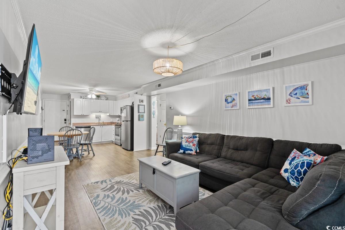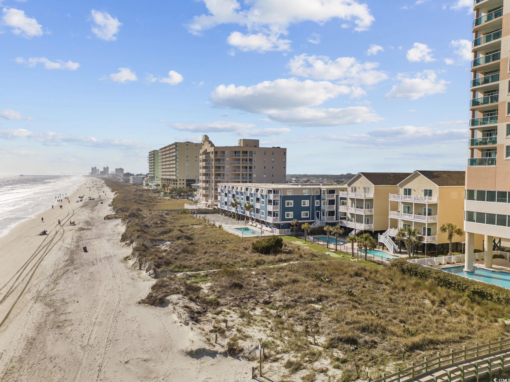 Welcome to this gorgeous oceanfront two bedroom, two full bath condo in North Myrtle beach at the popular Summer Place complex! Prime Cherry Grove location on the quiet end of the beach near the pointe. This property comes fully furnished and is completely turnkey. Ready for you to enjoy as a second home or rental investment property. Upgrades are endless in this condo and include brand new LVP flooring throughout, new disposal, newer HVAC and water heater, new front and sliding doors, all new stainless steel appliances and much more! Freshly painted with new furniture pieces throughout. Updated lighting in living and bedrooms and newly refreshed wall art. A gleaming white kitchen with stainless appliances make it a joy to prepare meals for your group. A vibrant navy blue color scheme throughout lends itself to the coastal lifestyle. The two full baths have been upgraded as well with bright white vanities, new plumbing fixtures and lighting. For added convenience, a stacked washer dryer combo makes laundry a breeze! Want to enjoy the coastal lifestyle? Step out onto your covered balcony and enjoy the amazing views of the ocean and feel the breeze. A beautiful decorative screen has been added to cover the exterior HVAC unit. The Summer Place complex has recently been fully upgraded on the exterior with new siding, windows and doors. The HOA is well managed with low association fees and well kept communal spaces. Don't miss out on your opportunity to own this amazing beachfront property!