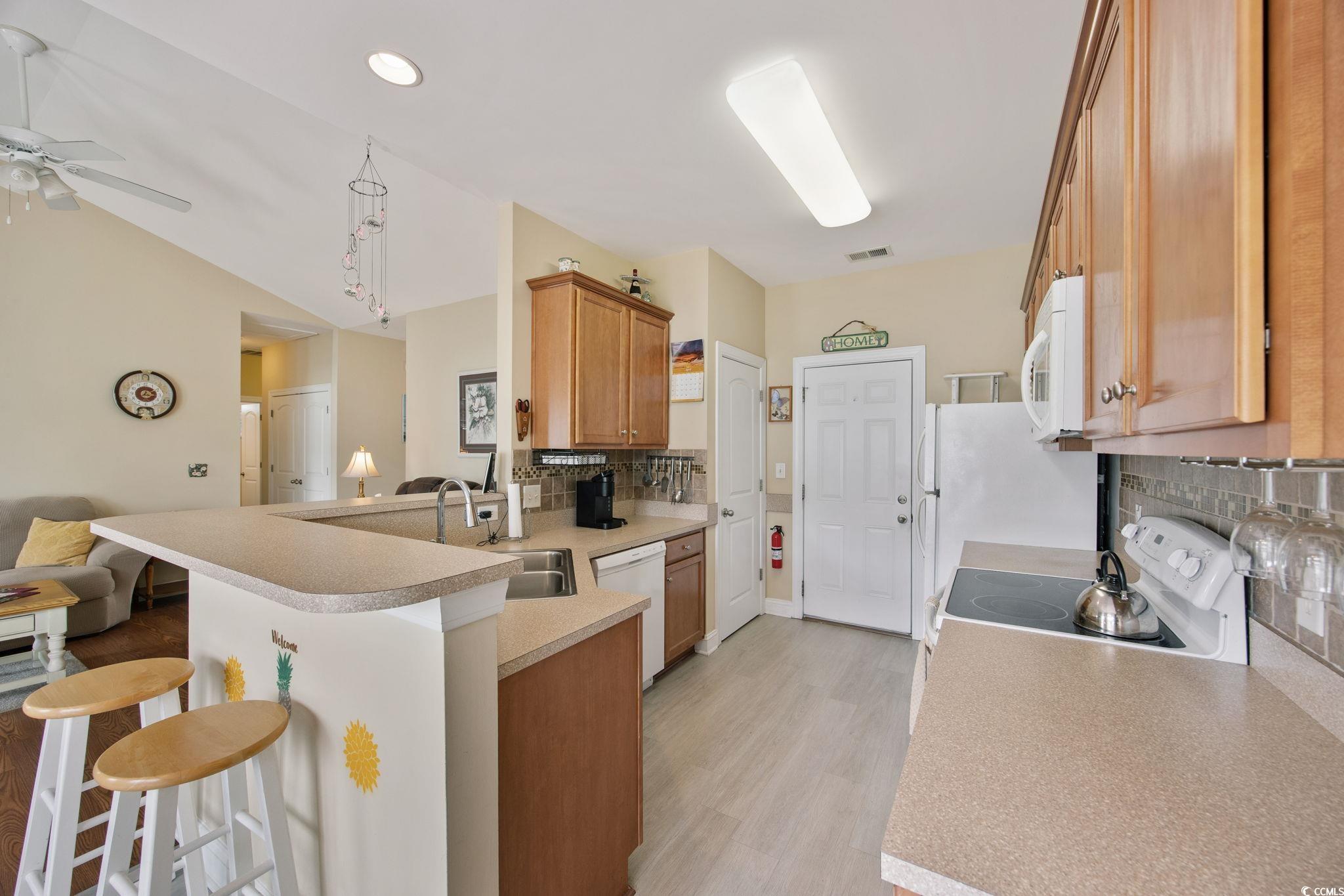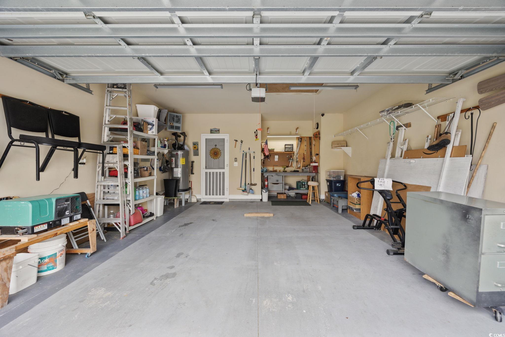 Welcome to The Park at Long Bay, a beautiful gated community offering a pool, clubhouse, and the best of relaxed coastal living! This charming 3-bedroom, 2-bath ranch-style home is move-in ready and packed with upgrades and extras. Inside, you'll find durable LVP flooring, vaulted ceilings in the spacious living room, and a cozy gas fireplace complete with a mounted 55 TV and custom corner hutch. The kitchen is a chefs delight with a custom tile backsplash and comes fully equipped with all appliances. A set of large sliding glass doors leads from the dining area to a beautiful outdoor patioperfect for entertaining or relaxing. The master suite features a tray ceiling, custom shelving in the walk-in closet, and a luxurious ensuite bath with a custom tile shower, tall glass doors, and a double vanity. A convenient laundry area with double doors adds to the homes functionality. The 2-car garage is a dream workspace with a heater, built-in workbench, dual-station TV monitoring system, and a 3000-watt standby generator for peace of mind. There are several storm-rated windows with shutters offer extra protection. Located just 15 minutes from the beach, and close to top golf courses, shopping, and dining, this home perfectly blends comfort, style, and thoughtful extras in a sought-after coastal community.