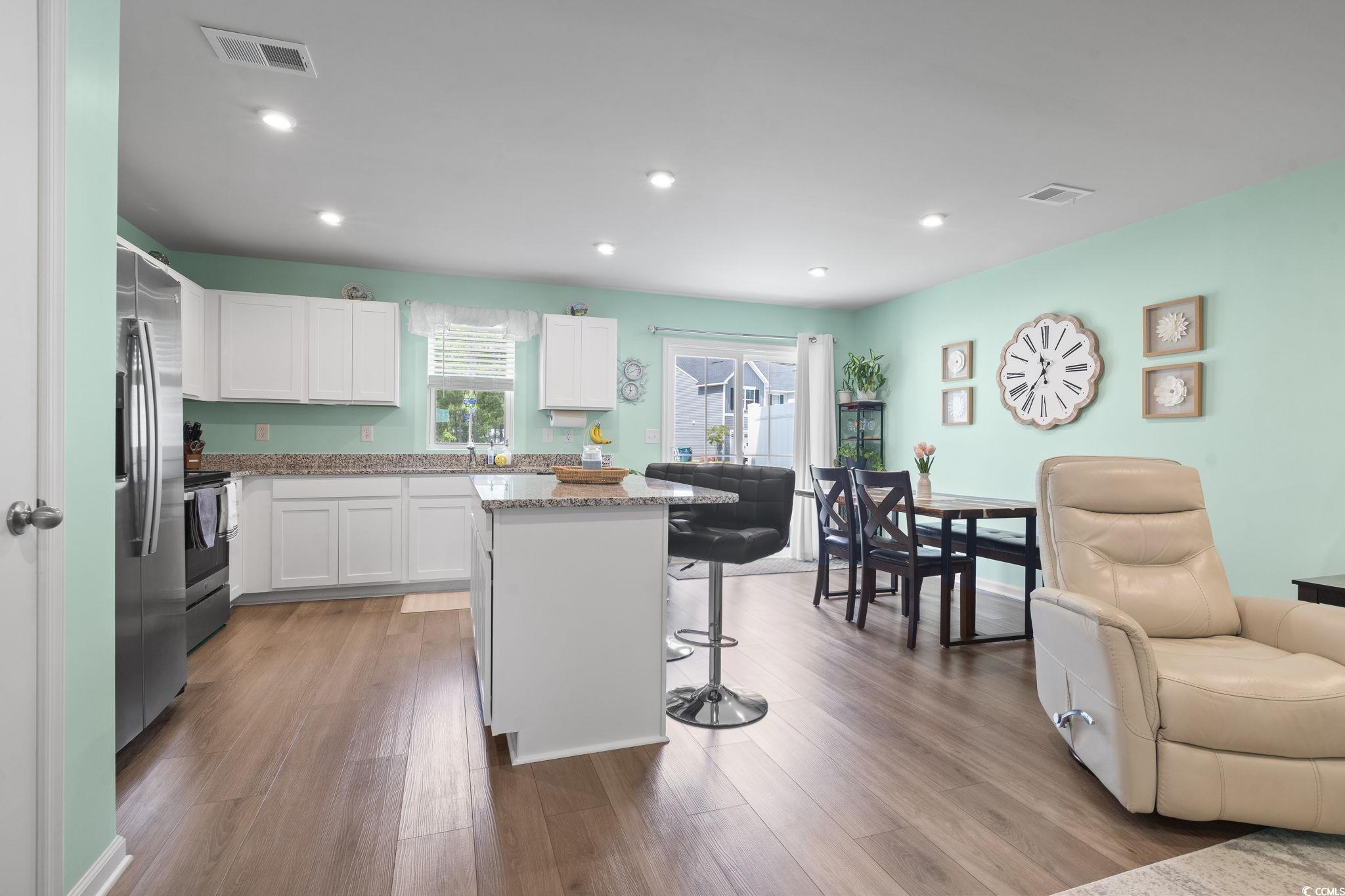 Why wait for new construction? Fresh, modern, and better than new, this beautiful home features an attached one-car garage for your convenience. As you step through the front door, you're greeted by a bright, open foyer with a convenient powder room nearby - perfect for guests. The main level shines with recessed LED lighting throughout, giving the space a warm and inviting feel. Moving into the living area, you'll fall in love with the open concept design. The gorgeous kitchen is truly the heart of the home, featuring a matching work island that doubles as a breakfast bar, ideal for casual dining or entertaining. You'll find stunning granite countertops, gleaming stainless steel appliances, and crisp white shaker-style cabinetry that gives the kitchen a clean, modern look. The kitchen flows seamlessly into the dining area, and from there, you can step right out onto your private back patio, a wonderful spot for morning coffee or relaxing in the evenings. Upstairs, you'll find all the bedrooms tucked away for privacy. Two spacious guest bedrooms share a full bath, while the primary suite is your personal retreat. The ensuite bathroom offers a double sink vanity, updated fixtures, and a tub/shower combo - giving you both style and functionality. You'll also appreciate the large walk-in closet for all your storage needs. Beyond the home itself, living at Forestbrook Townhomes means you'll enjoy a truly low-maintenance lifestyle - all exterior maintenance is taken care of for you. The community is ideally located with easy access to Highway 544 and Highway 17, making quick trips or beach days a breeze. You're close to highly all the best that Myrtle Beach has to offer - from beautiful beaches and golf to fun eateries, award-winning shows, public fishing piers, and unique shopping adventures along the Grand Strand. You'll also love the amenities within the community, including a playground and a dog park. This is more than just a home; it's a lifestyle - effortless, vibrant, and close to everything you need. Ready to take a closer look? Schedule your showing today! Measurements are not guaranteed. Buyer is responsible for verifying. Please ask your agent about lender closing costs incentives for this property