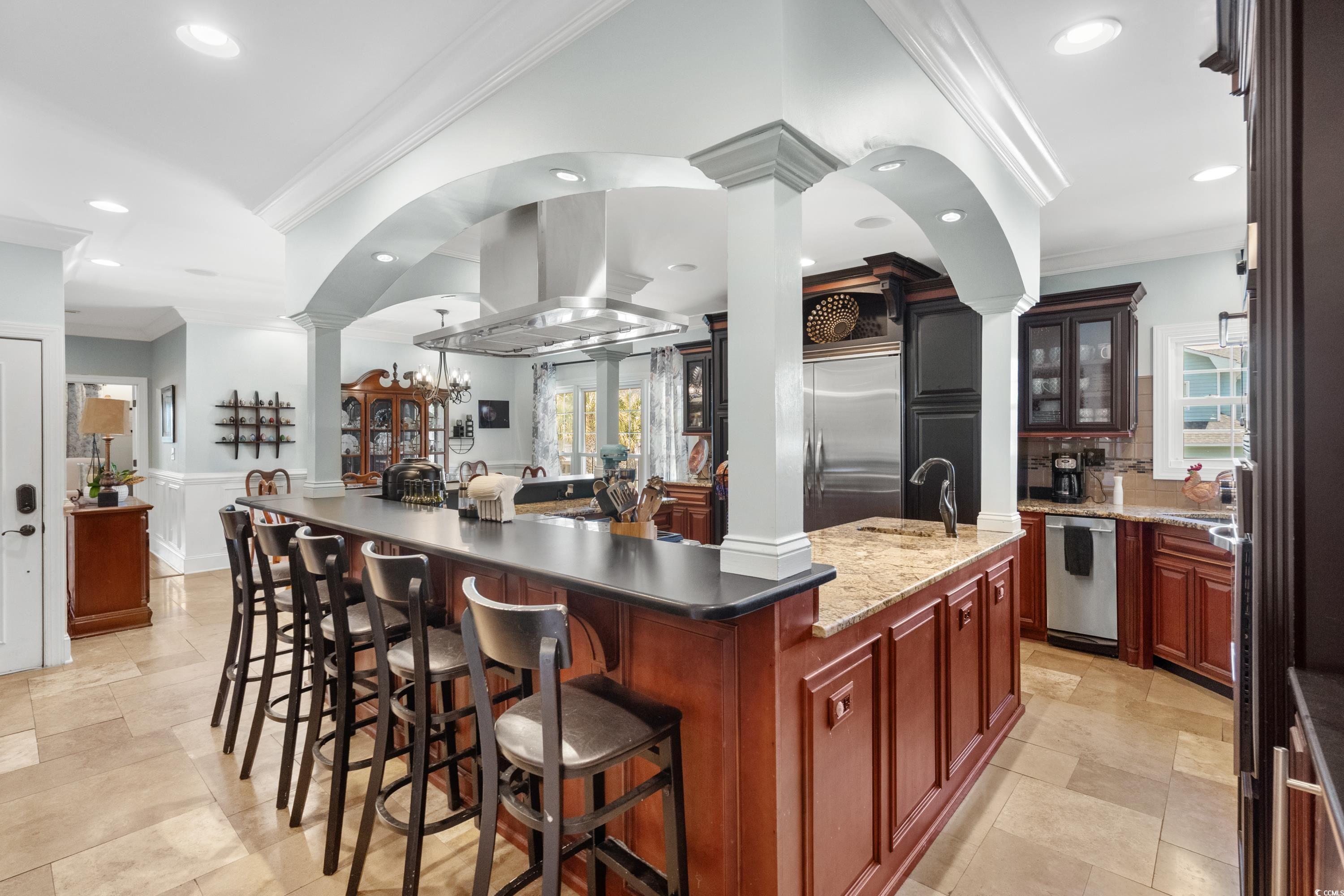 Quiet cul-de-sac with Intracoastal Waterway views. This 4-bedroom, 4.5-bath home in Little River offers a spacious, open layout designed for both everyday living and entertaining. The kitchen connects seamlessly to the dining and living areas, highlighted by upgraded finishes and abundant natural light. Multiple porches capture waterway views and extend living outdoors, while generously sized bedrooms and baths provide comfort for family and guests. A flexible floor plan allows for home office or bonus space to fit your needs. Located minutes from marinas, golf, shopping, and the beaches of the Grand Strand, this home combines convenience and a coastal setting in a desirable neighborhood. Closing cost assistance available. Interest rate buy down available.