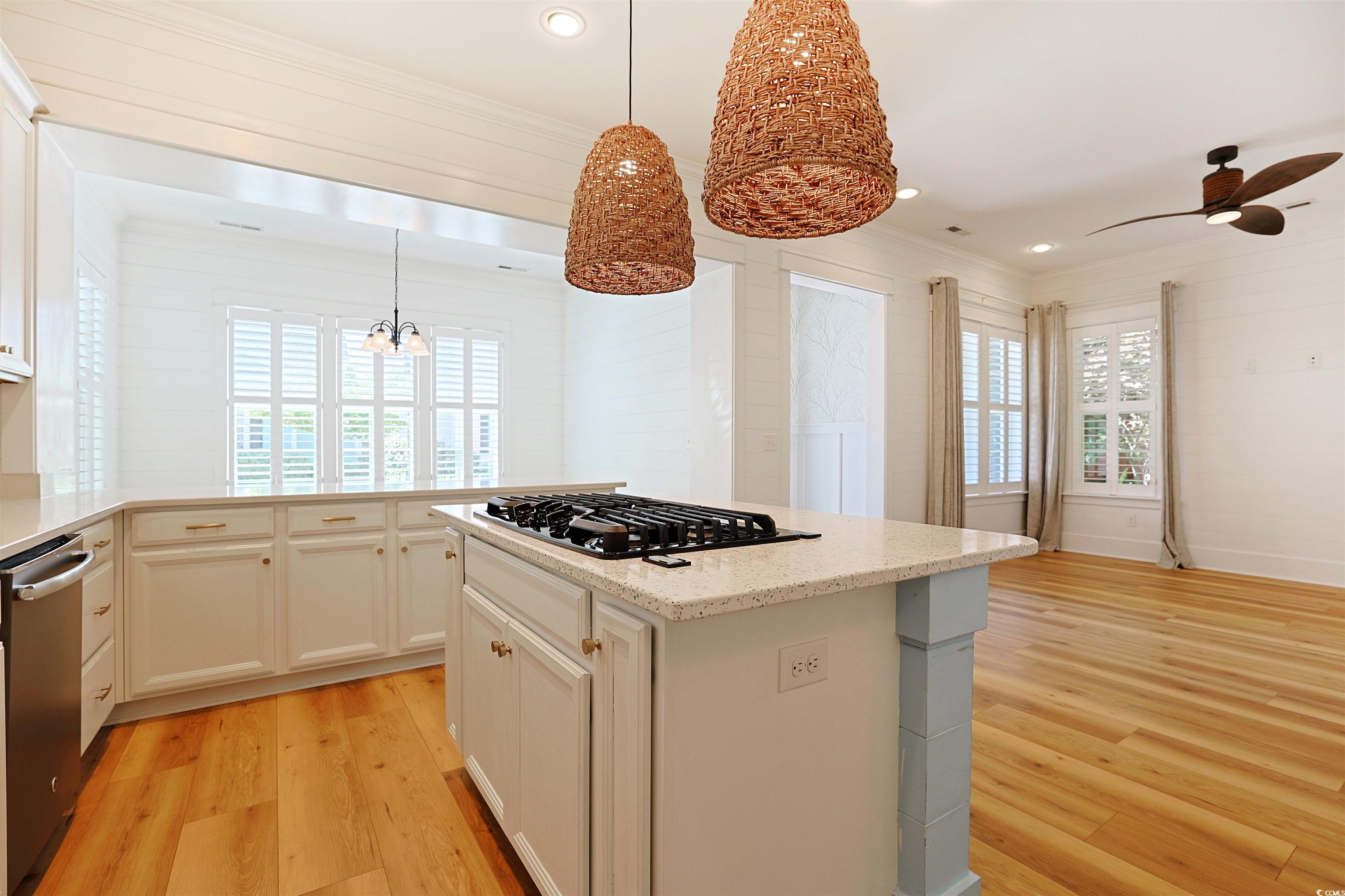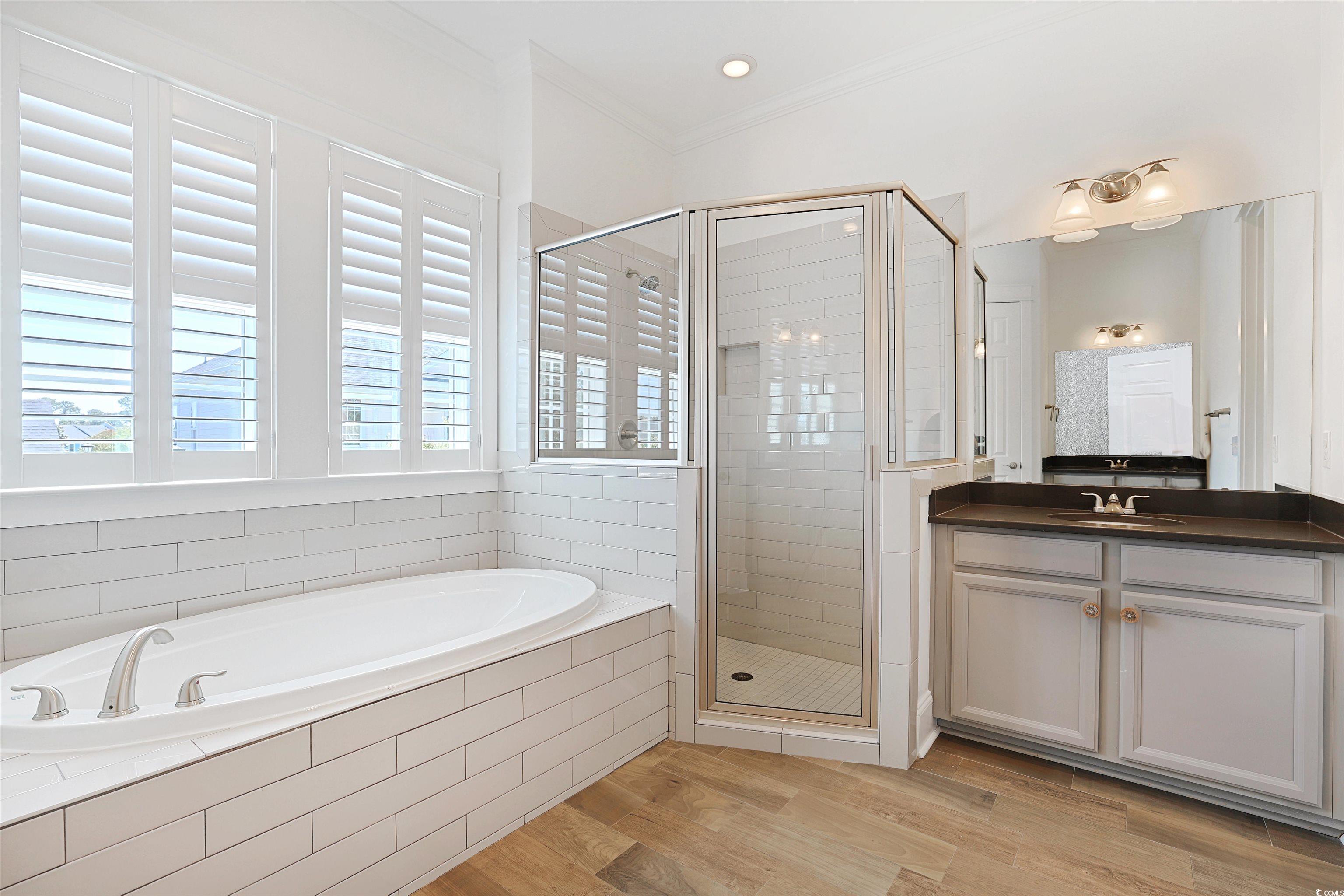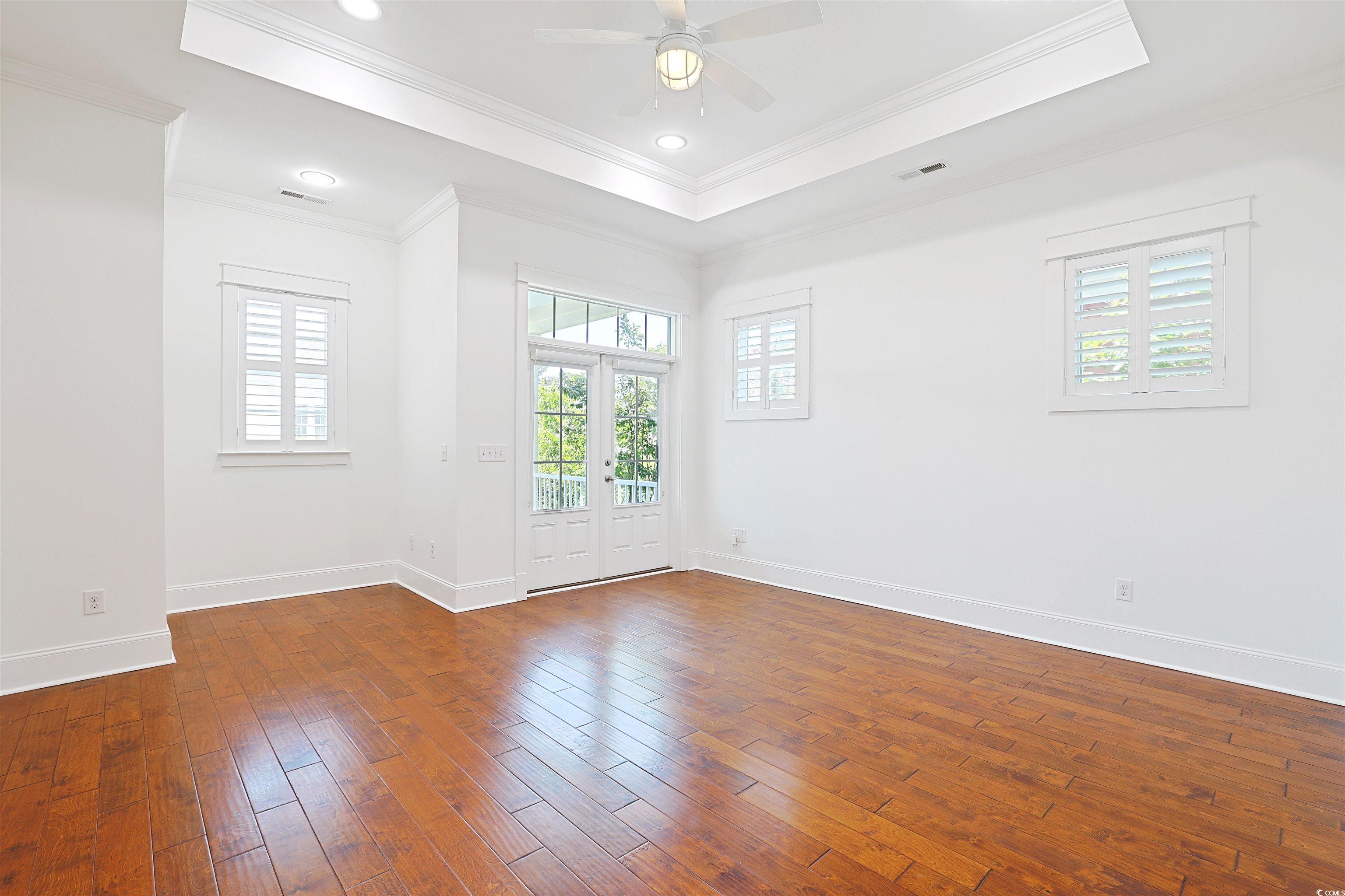 Introducing this distinctive Charleston style 5 bedrooms 3.5 bath home situated in the very popular Sweetgrass Square section of the exciting Market Commons community. This exquisite home includes hardwood, tile, & LVP flooring, smooth flat ceilings, plantation shutters, spacious living room, an abundance of natural lighting, a formal dining area, and recessed lighting. The kitchen is equipped with a gas cook top, built-in oven & microwave, French door refrigerator with freezer drawer, granite counter tops, cabinets topped with crown moulding, kitchen island with a breakfast bar, and a spectacular kitchen pantry. The first floor primary bedroom features a single step tray ceiling with recessed lighting, a private entryway to the primary bath that offers a vanity with a single sink, a comfort station, a deluxe step-in shower, and a large walk-in closet. As you venture upstairs you will find another primary bedroom with full private bath, three additional bedrooms serviced by a full guest bath. This stylish home is completed with a guest powder room, a tankless gas water heater, and a back load two car attached garage. The community of Sweetgrass Square is located in The Market Common which is a place where you can experience exceptional shopping and dining in a beautifully-designed village setting. From the nations most celebrated names in retail to ice cream and pizza for the kids, and from one-of-a-kind restaurants to the most comfortable movie theater at the beach. This home affords you easy access to the beach and golfing along with all of the other activities and happenings in Myrtle Beach including fun eateries, award winning off-Broadway shows, public fishing piers, and intriguing shopping adventures along the Grand Strand. Conveniently located to your everyday needs, including grocery stores, banks, post offices, medical centers, doctors offices, and pharmacies. Check out our state of the art 3-D Virtual Tour.