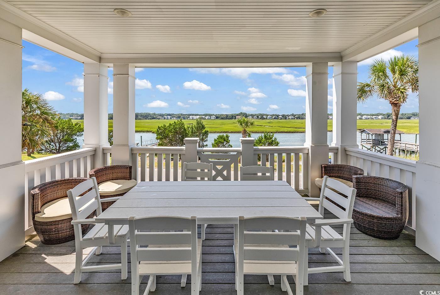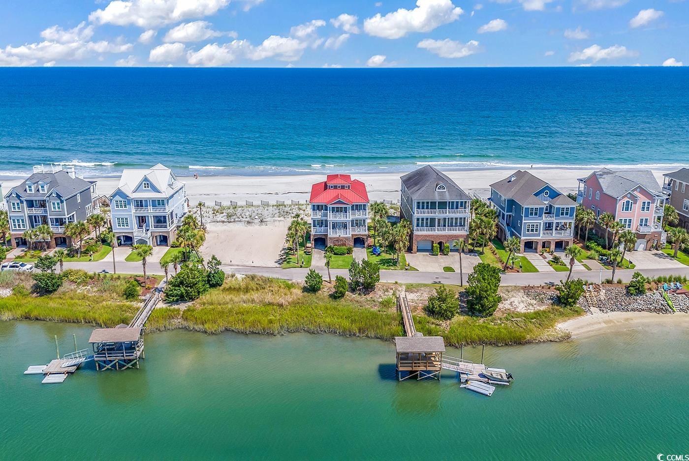 Amazing oceanfront and creekfront home on The Peninsula at Inlet Point South, Litchfield Beach. This is a gated community with 24 hour security, pool and boat landing. Large porches on the front and back to enjoy the best views around of the creek and ocean. Enjoy a cocktail and sunset views from the shared dock on Pawleys Creek. Some of the best flounder fishing in the area is right off the dock. The spacious kitchen and dining area open up to the living room, a perfect area for entertaining family and friends. Plenty of living spaces with a second upstairs den and 7 bedrooms and 7.5 baths so large groups of family and friends can enjoy. Kitchen has granite counter tops, double oven, and large breakfast bar. Fully furnished and turn key! Great rental potential. Elevator in place for convenience! Close to great shopping and fine dining in Pawleys Island. Litchfield Beach is just 25 miles to the attractions of Myrtle Beach or 70 miles for a day trip to historic Charleston, SC.