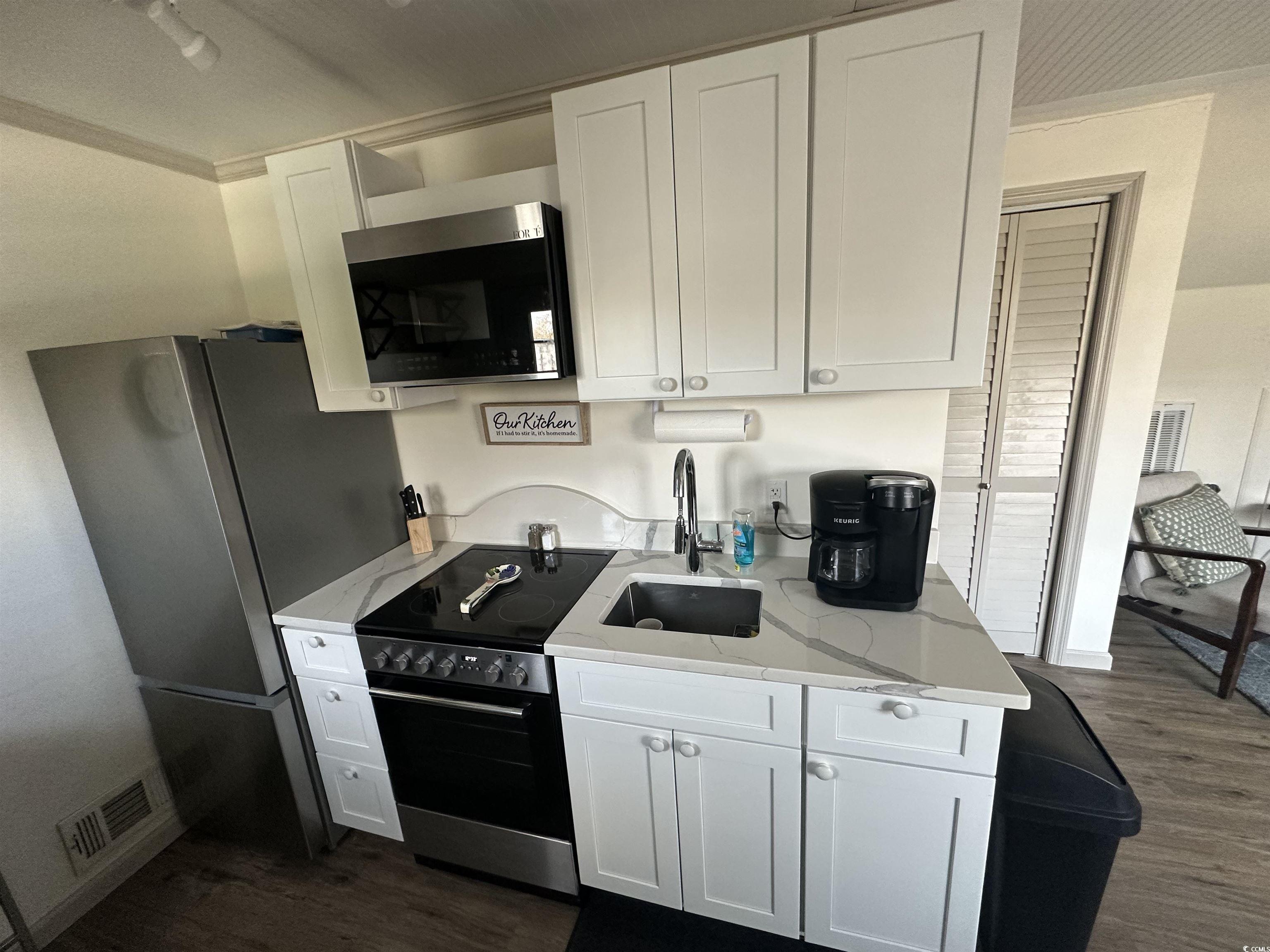 Welcome to this beautiful recently updated duplex (having a full 1 bedroom unit and a studio unit). No HOA so it is available for short term or long term rentals or just a private get away! As you walk into the front door of the 1 bedroom downstairs unit you will find a sitting room that is directly off the bedroom and on the opposite side is the living area and kitchen. LVP flooring throughout as well as new appliances. You gain entrance from the parking area in the back to the second floor studio unit. With its own sun deck and kitchenette with full size stove and refrigerator. Upstairs has LVP flooring throughout as well. The bathroom has a wonderful walk-in tiled shower! Dont let this one slip away! (Lot is 197 ft long, allowing for other possibitilities)
