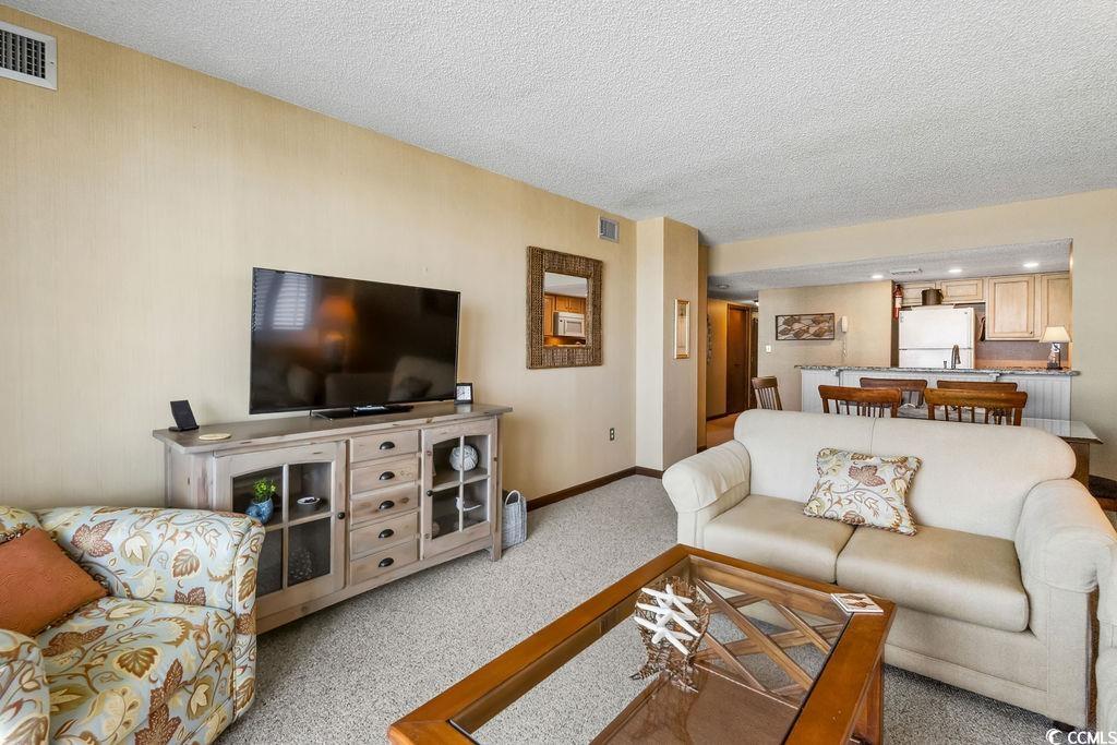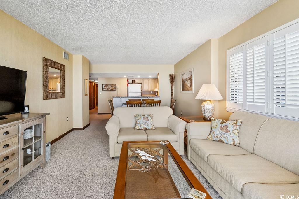 Motivated seller! Don't miss this rare opportunity to own a stunning 3-bedroom, 2-bath OCEANFRONT END UNIT in the highly sought-after Carolina Winds, nestled along the prestigious Golden Mile in Myrtle Beach! This beautifully maintained condo has never been rented during the owner's ownership and has only served as a cherished second home. Offered fully furnished, it's ready for you to move in and start enjoying the coastal lifestyle. Step inside to find a bright and spacious layout with tile and carpet flooring, plantation shutters on the side windows, and a kitchen featuring granite countertops. The oceanfront master suite boasts a king-size bed, a walk-in closet, and a luxurious tiled walk-in shower with radiant heating in the bathroom. The second bedroom includes a queen bed, and the third has two twin beds. Perfect for family and guests. With two additional hallway closets and thoughtful updates throughout, this unit offers comfort, space, and style. Enjoy panoramic views of the Atlantic Ocean and 60 miles of white sandy beaches from your private balcony. Located in the heart of Myrtle Beach, you're just minutes from world-class golf, shopping, dining, entertainment, and all the Grand Strand has to offer. Whether you're seeking a primary residence, vacation home, or investment, come live the dream!