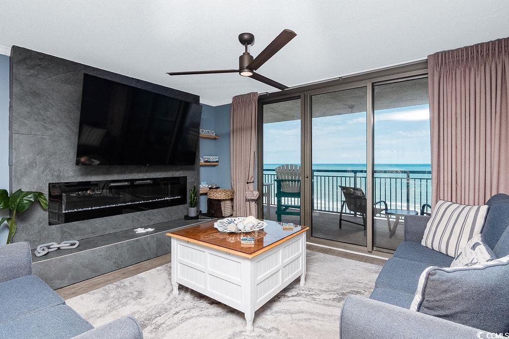 Enjoy serene, sunrise, ocean views from the balcony, living room, and primary suite, and gorgeous sunset views from the front balcony of this updated 3BR/3BA condo in the Brighton Tower, located within the prestigious, 45-acre Kingston Planation Resort. Newly tiled showers and tubs with glass doors, custom built, tile, electric fireplace, LVP flooring, new HVAC installed in 2023, new water heater, new stainless-steel appliances and new washer and dryer all installed in 2024. Three large bedrooms with updated furnishings, fixtures, and new smart TVs. Easy walk to Black Drum Brewing, and Embassy Suites Hotel, equipped with Starbucks, restaurant, gift shops and bar. Dont miss this opportunity to own your slice of heaven in this rarely available 09 stack unit of the Brighton Tower! All measurements and data are deemed reliable but not guaranteed. Buyer and/or buyer's agent to verify all information. **Certain on-site, Developer-owned amenities are only available to Hilton rental program owners and their guests, or by separate arrangement with the Developer, which may or may not be available to the Buyer. Seller makes no representations or warranties regarding those amenities and the Buyer's access to same.**