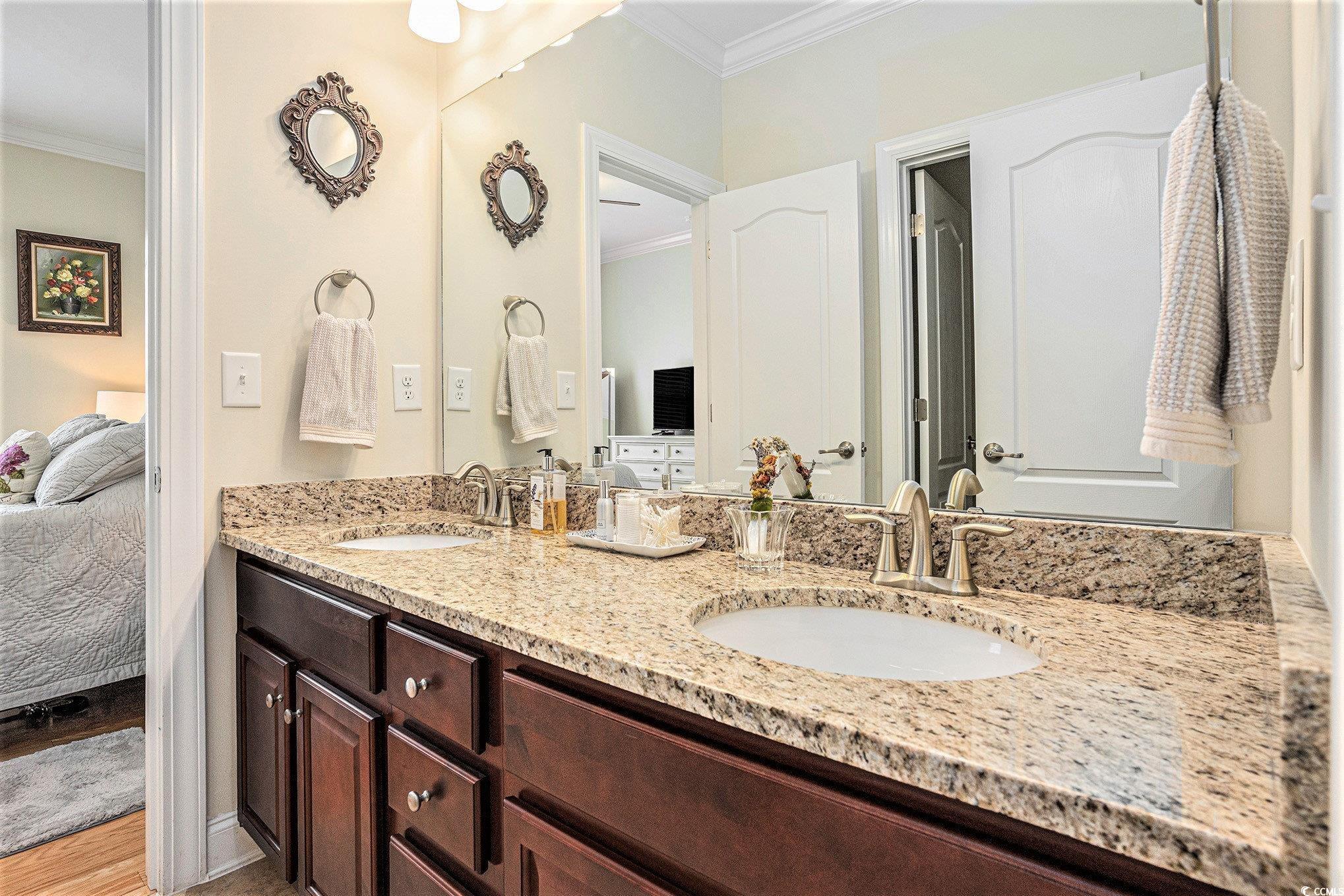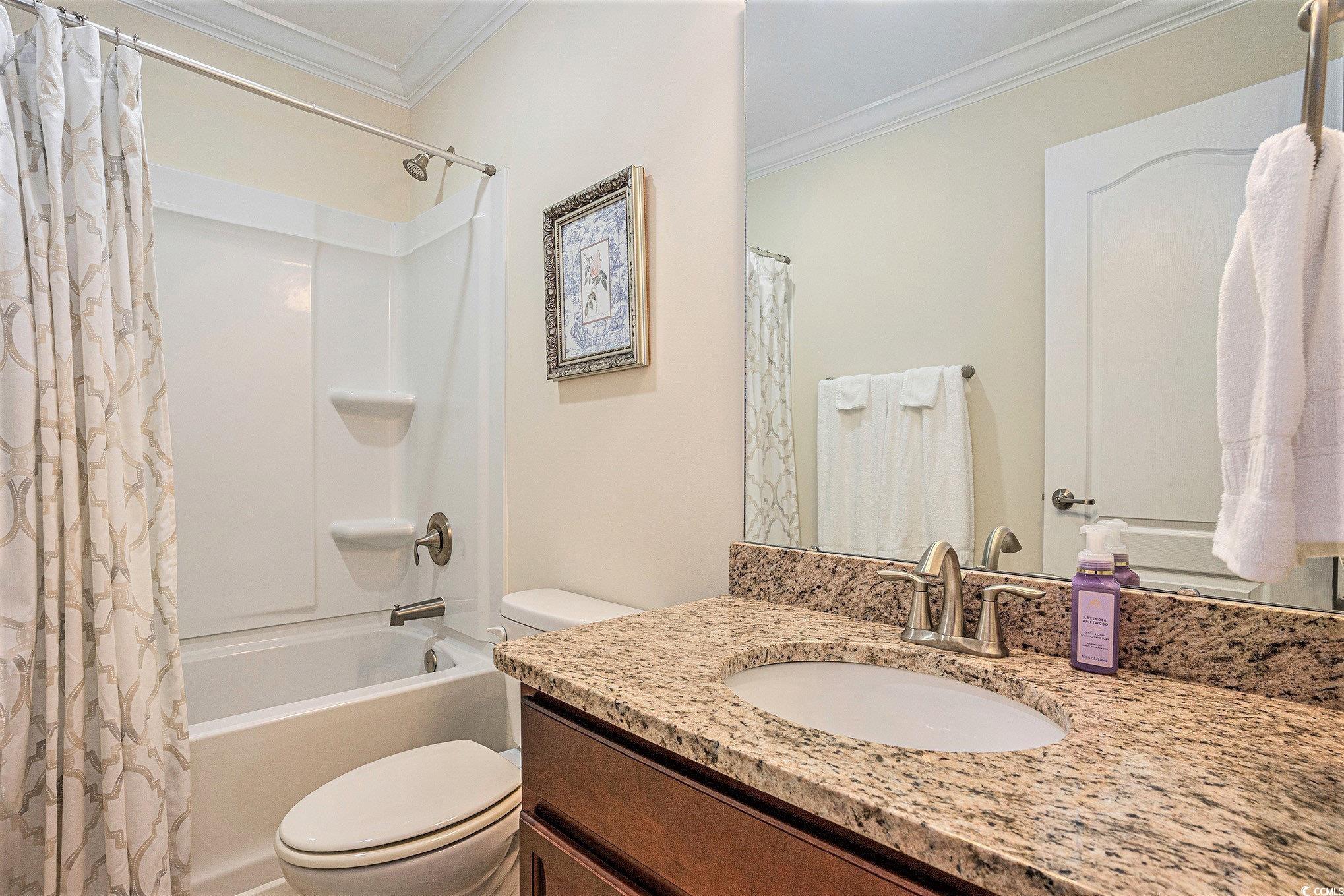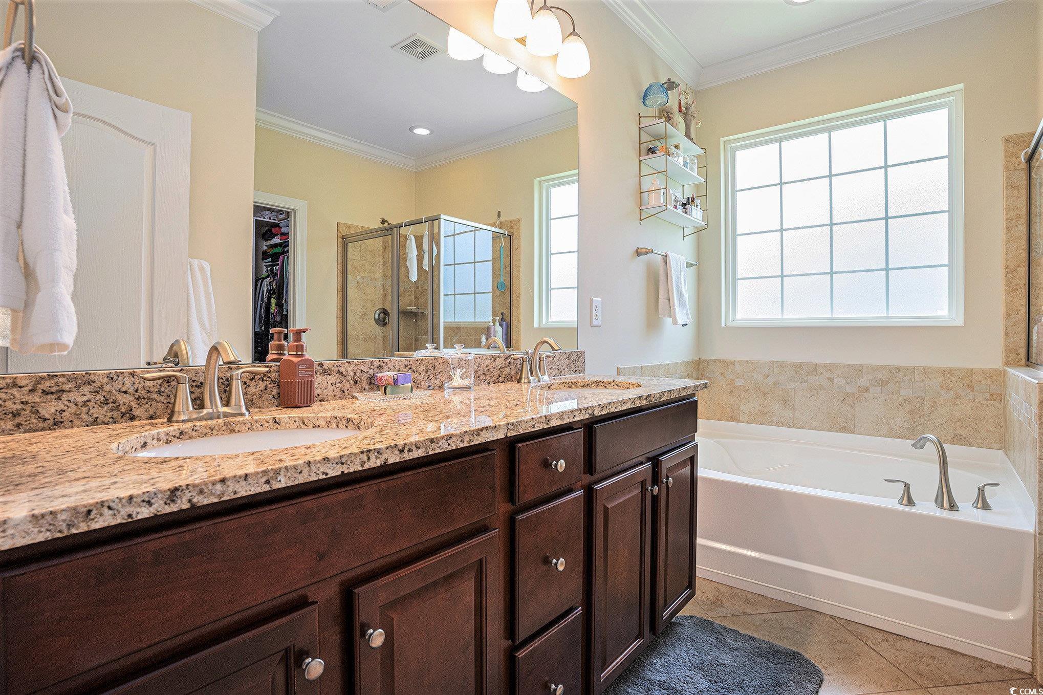 Back on Market Due to No cause of seller !!!Welcome home! Beautiful all-brick residence with a spacious three-car garage, thoughtfully designed with versatile living spaces. This home features two private entrances, including one leading to a suite with its own sitting area, kitchenette, bedroom, and full bathroomoffering flexible options for a variety of needs. Inside, you'll find a formal dining room, an open kitchen with granite countertops and stainless steel appliances, a breakfast nook, and a living area that flows seamlessly to the back of the home. The main level also includes a spacious primary suite and an additional en suite bedroom. Upstairs, a fourth bedroom with a private bath adds even more flexibility to the layout. The exterior showcases a large driveway, additional garage space, a fenced yard, and upgraded epoxy finishes in the screened porch and garage floors. This home has upgraded electrical with a whole house Generac generator and electrical surge protector, providing stability and power protection at all times. Additional features include updated lighting, wood flooring, crown molding throughout, plus a tankless natural gas water heater, gas heating, and a gas range. Located in a gated section of Carolina Forest, this home offers convenience to shopping, dining, and entertainment in the Myrtle Beach area. Move-in ready with thoughtful upgrades throughoutthis home truly stands out.