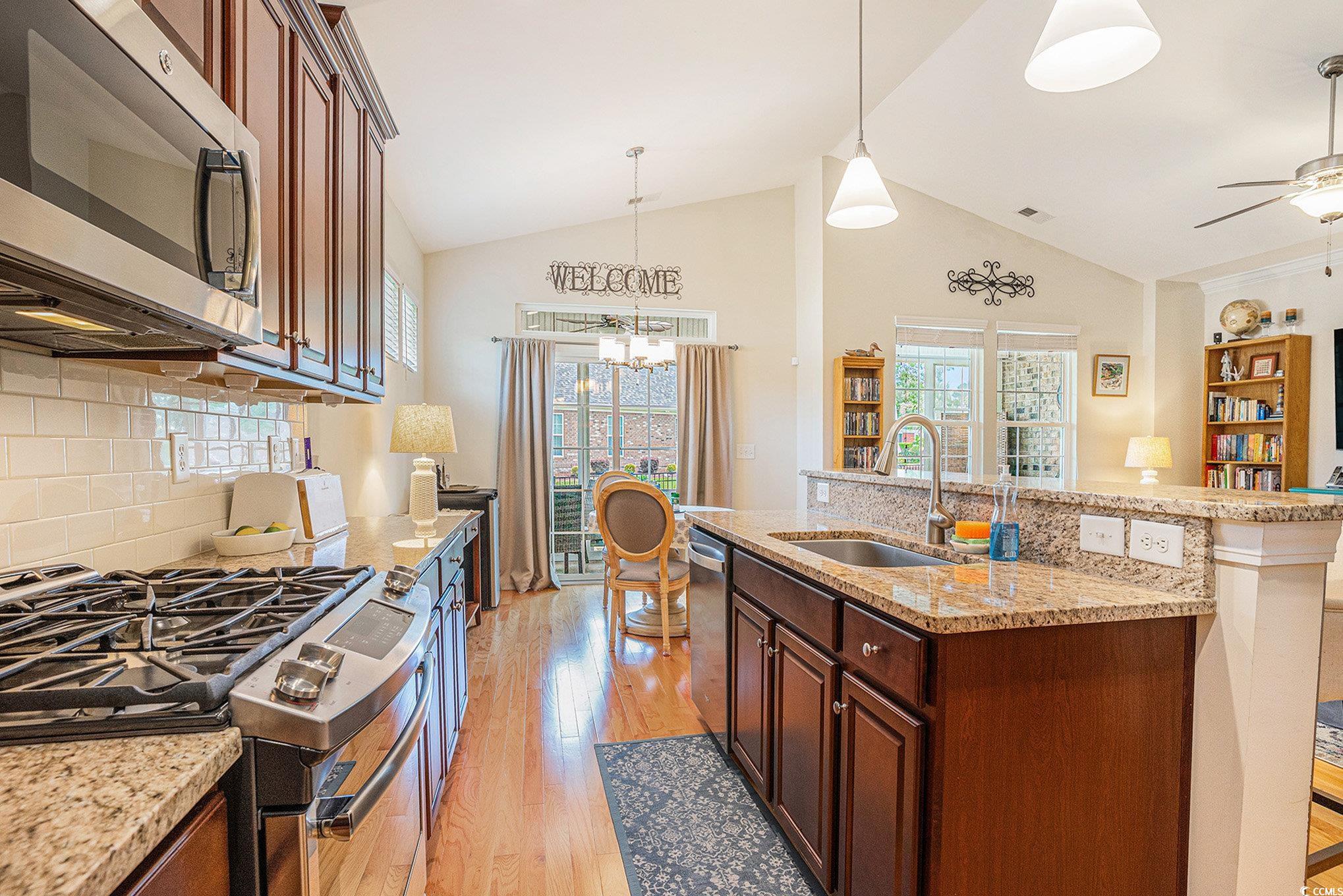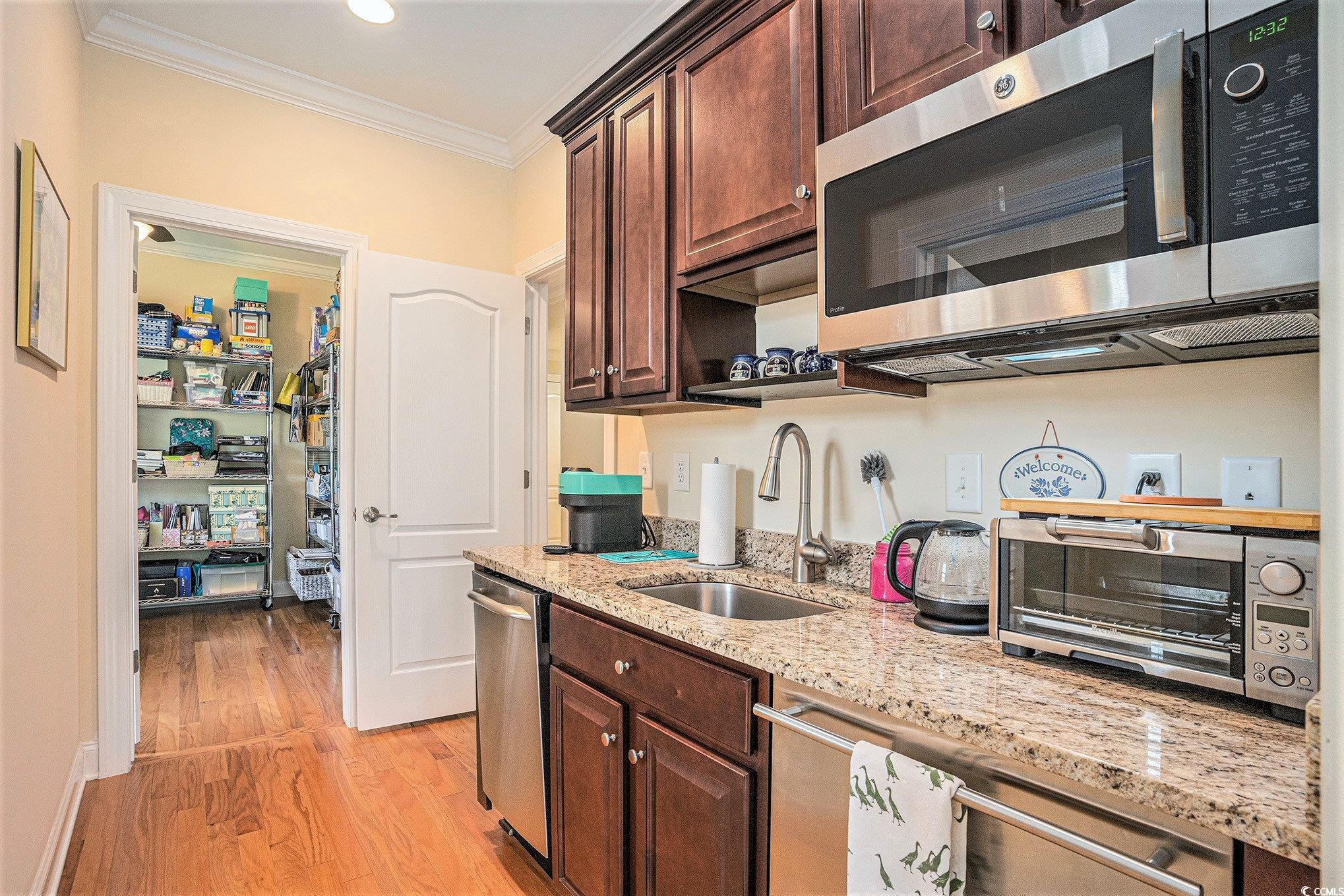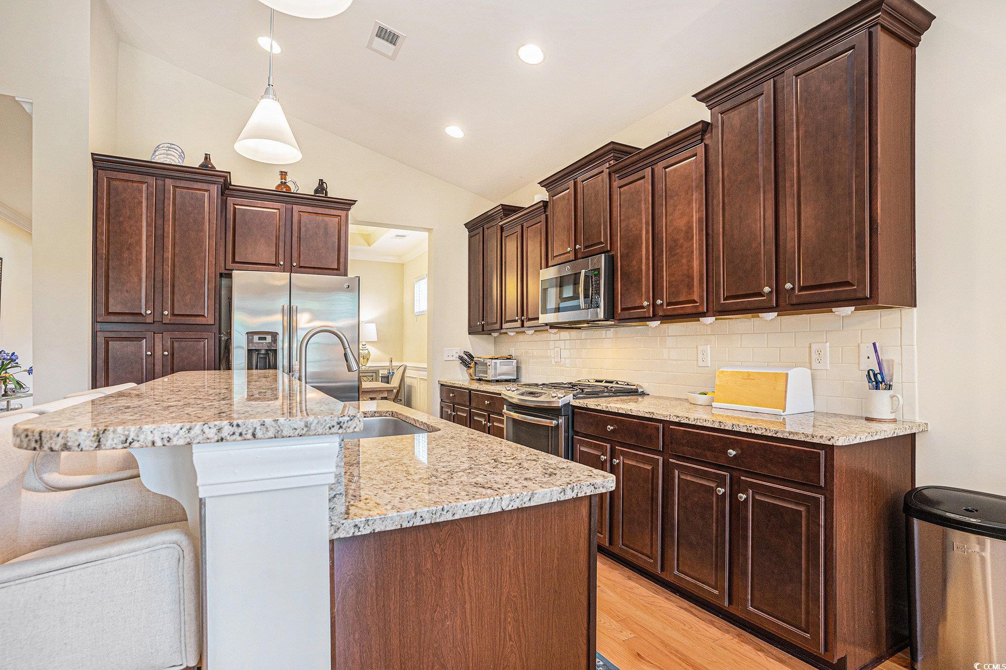 Back on Market Due to No cause of seller !!!Welcome home! Beautiful all-brick residence with a spacious three-car garage, thoughtfully designed with versatile living spaces. This home features two private entrances, including one leading to a suite with its own sitting area, kitchenette, bedroom, and full bathroomoffering flexible options for a variety of needs. Inside, you'll find a formal dining room, an open kitchen with granite countertops and stainless steel appliances, a breakfast nook, and a living area that flows seamlessly to the back of the home. The main level also includes a spacious primary suite and an additional en suite bedroom. Upstairs, a fourth bedroom with a private bath adds even more flexibility to the layout. The exterior showcases a large driveway, additional garage space, a fenced yard, and upgraded epoxy finishes in the screened porch and garage floors. This home has upgraded electrical with a whole house Generac generator and electrical surge protector, providing stability and power protection at all times. Additional features include updated lighting, wood flooring, crown molding throughout, plus a tankless natural gas water heater, gas heating, and a gas range. Located in a gated section of Carolina Forest, this home offers convenience to shopping, dining, and entertainment in the Myrtle Beach area. Move-in ready with thoughtful upgrades throughoutthis home truly stands out.