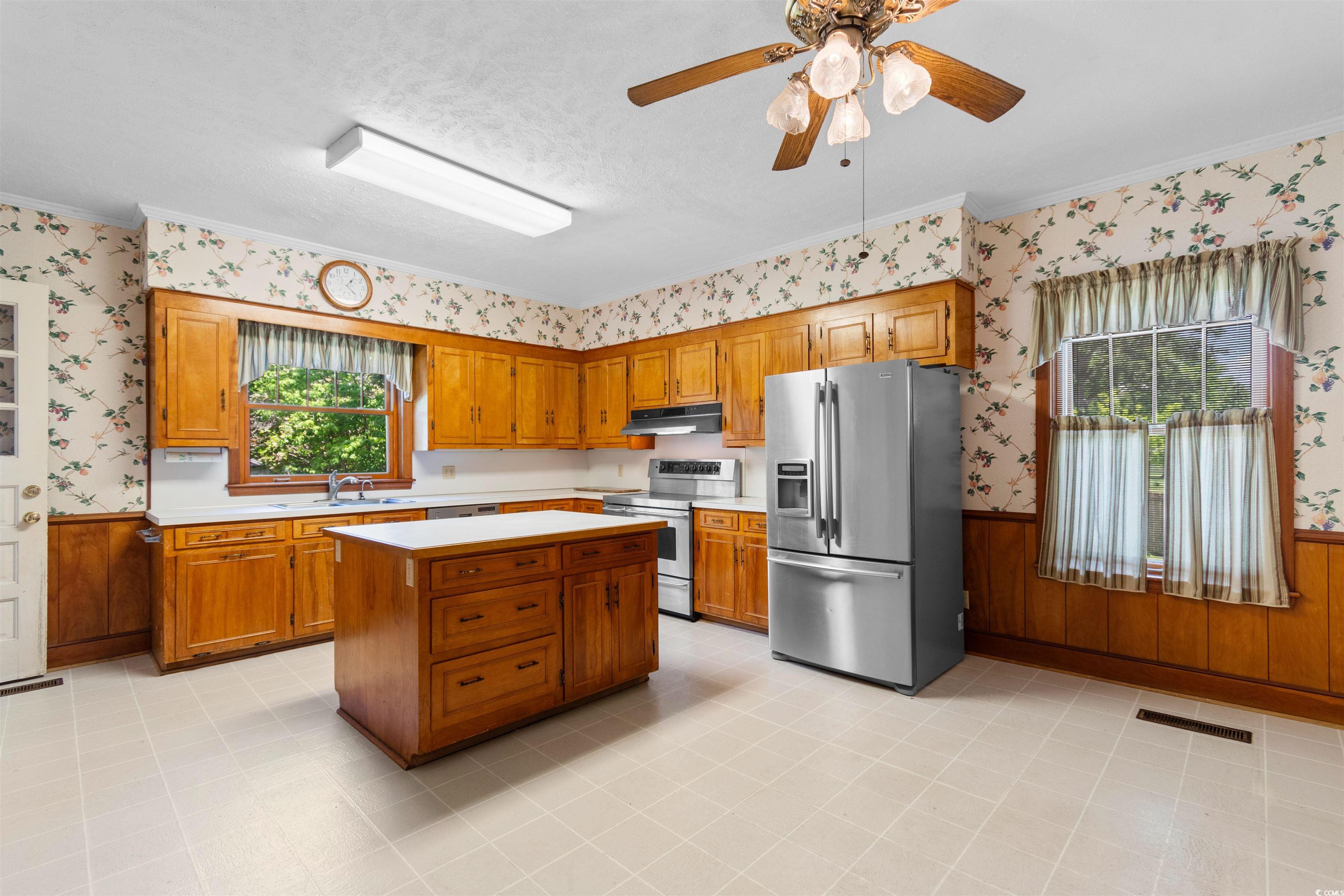 FamilyRoom: CeilingFans, Fireplace, PanelingWainscoting