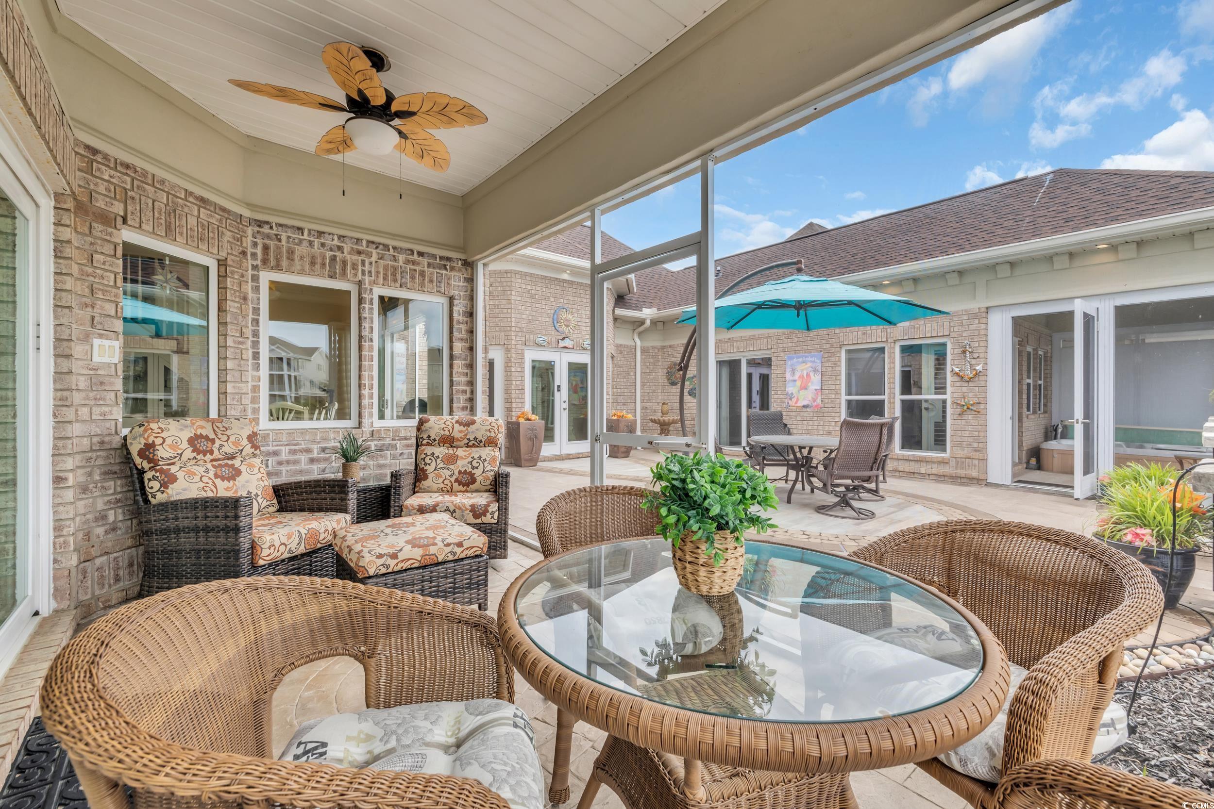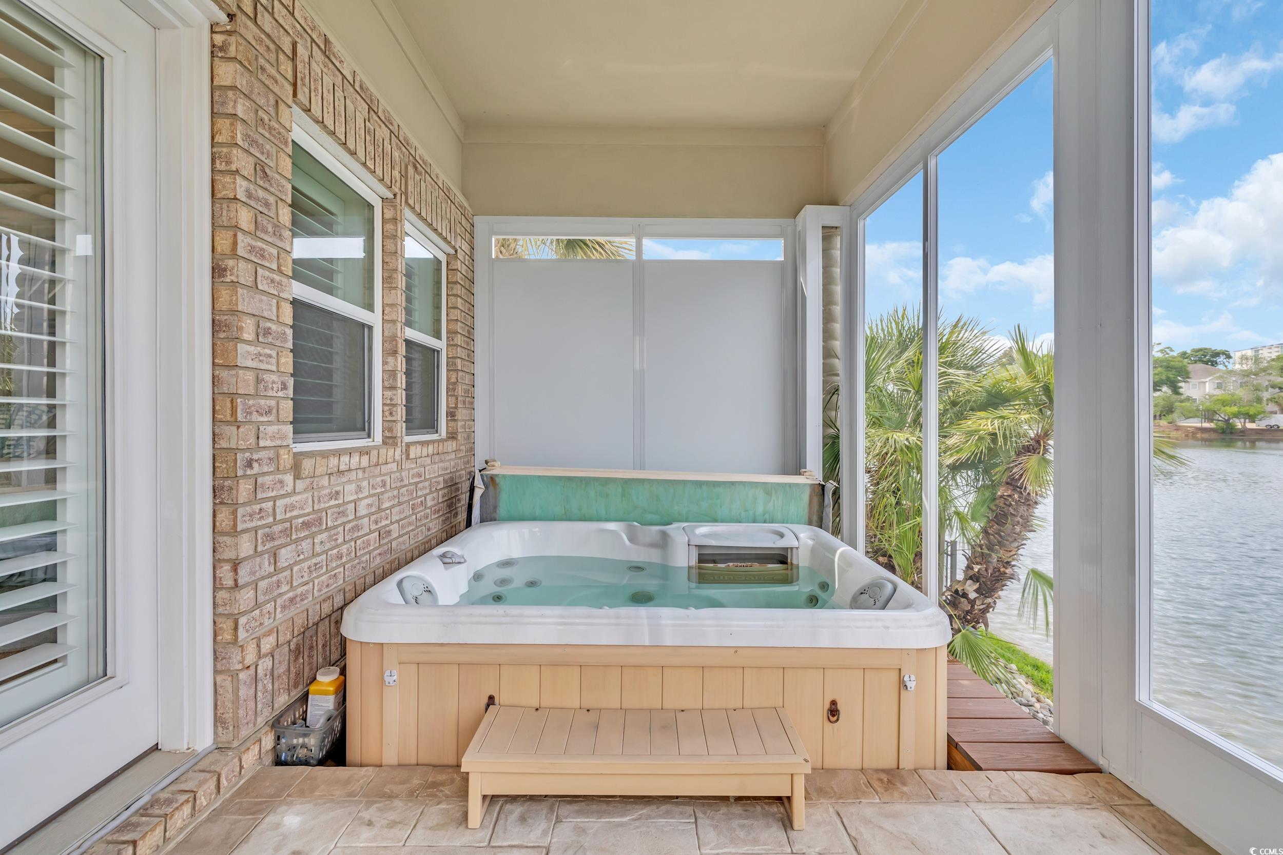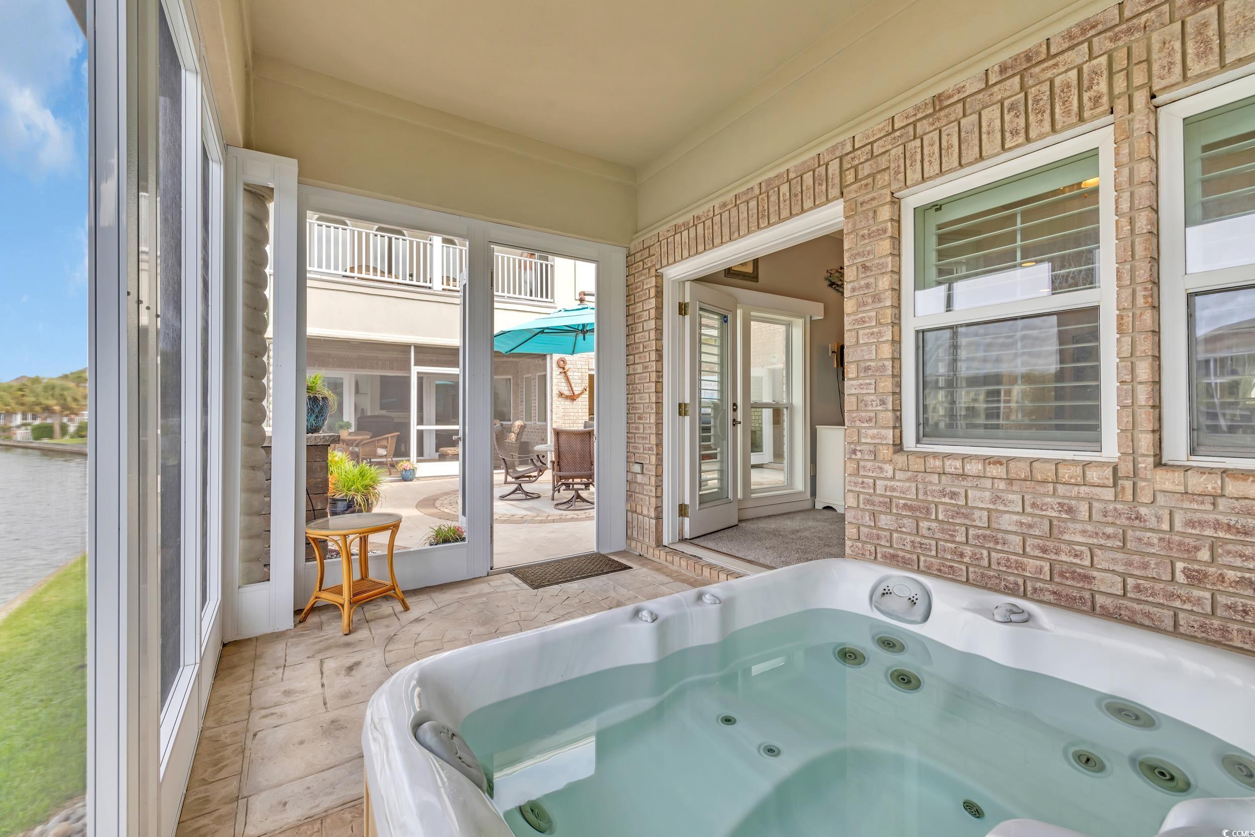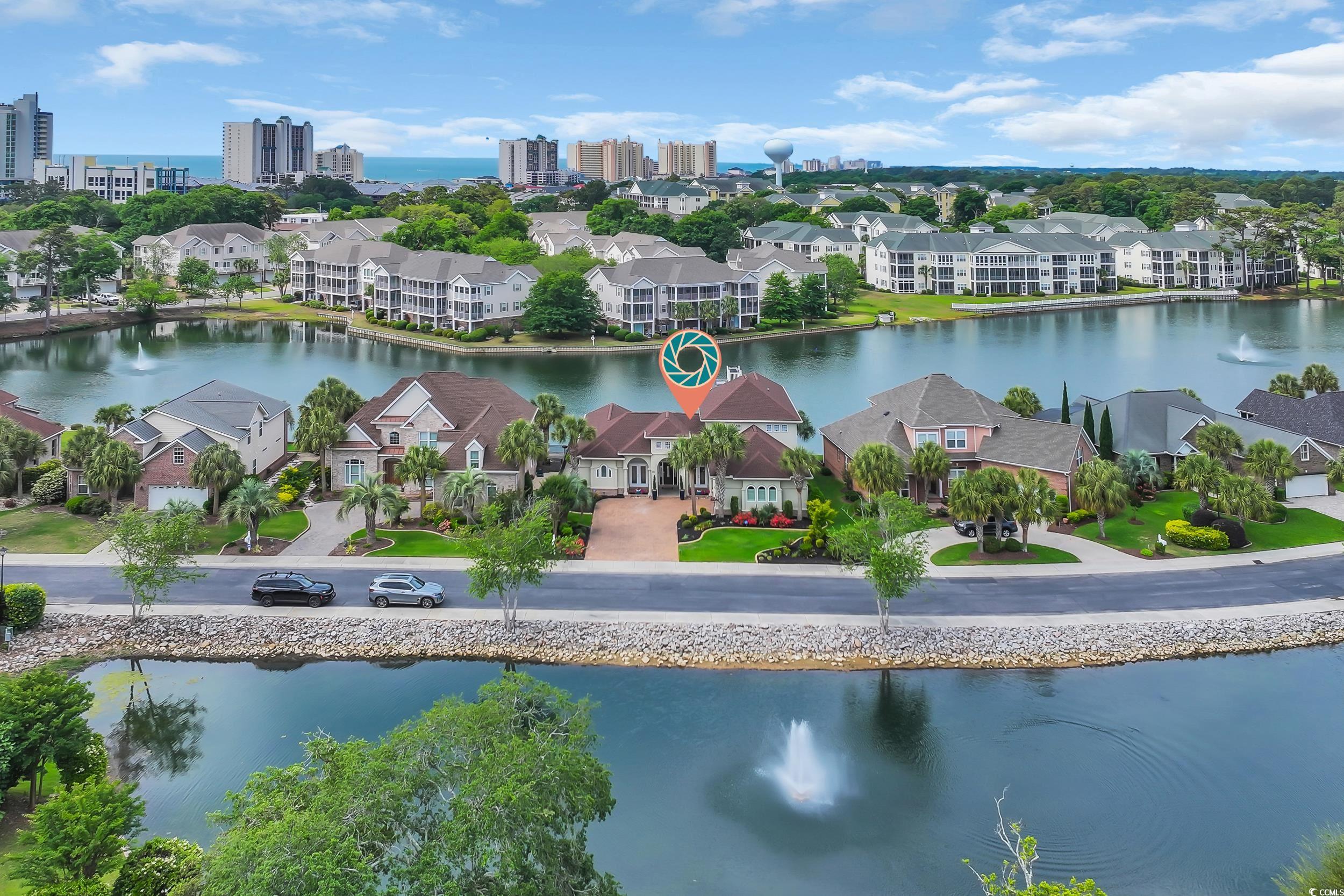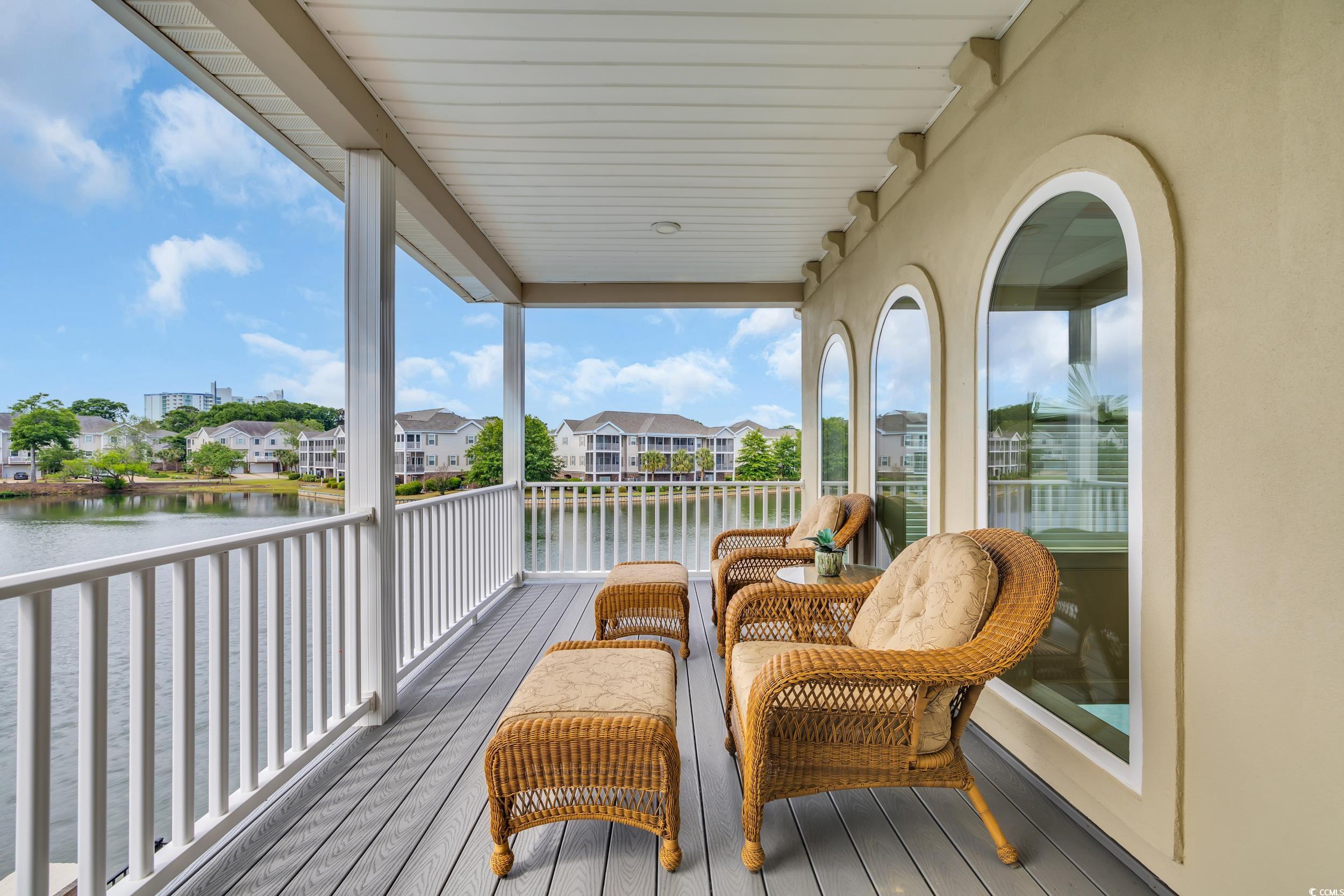 Discover the perfect blend of elegance and comfort in this stunning Mediterranean-style home, nestled on a lake in the premiere gated community of Seaside Plantation in North Myrtle Beach. Featuring meticulously landscaped gardens, palm trees and brick pavers, this stately waterfront residence creates a serene and inviting atmosphere. As you step into the grand foyer, you are greeted with architecture and elegance. The primary suite with its own private wing, includes a luxurious bathroom, custom walk in closet and enclosed spa retreat overlooking the water. The main level is spacious and includes an additional bedroom with en-suite and a dedicated office. The gourmet kitchen is a chef's delight, featuring updated quartzite counter tops and modern appliances, ideal for cooking and entertaining. A seamless flow carries you through the dining area and living room with soaring cathedral ceilings, gas fireplace and floor-to-ceiling windows that flood the home with natural light and spectacular water views. The second-floor features two bedrooms, a full bathroom and additional living space complete with a wet bar. The inviting second floor balcony provides an ideal retreat for guests seeking privacy and relaxation. For outdoor living, enjoy the screened porch retreat or step out to the private courtyard oasis that offers tranquility, making it ideal spot for entertaining or alfresco dining. This harmonious blend of indoor and outdoor living spaces ensures you can enjoy the serene surroundings year-round. Seaside Plantation is a premiere neighborhood that offers gated luxury living with amenities including a community center, swimming pool, heated spa and more. With just a short walk or golf cart ride to the beach, you're also minutes from local dining, shopping, golf and entertainment. Don't miss out on the opportunity to own this stunning coastal home. Call today to schedule your private showing!
