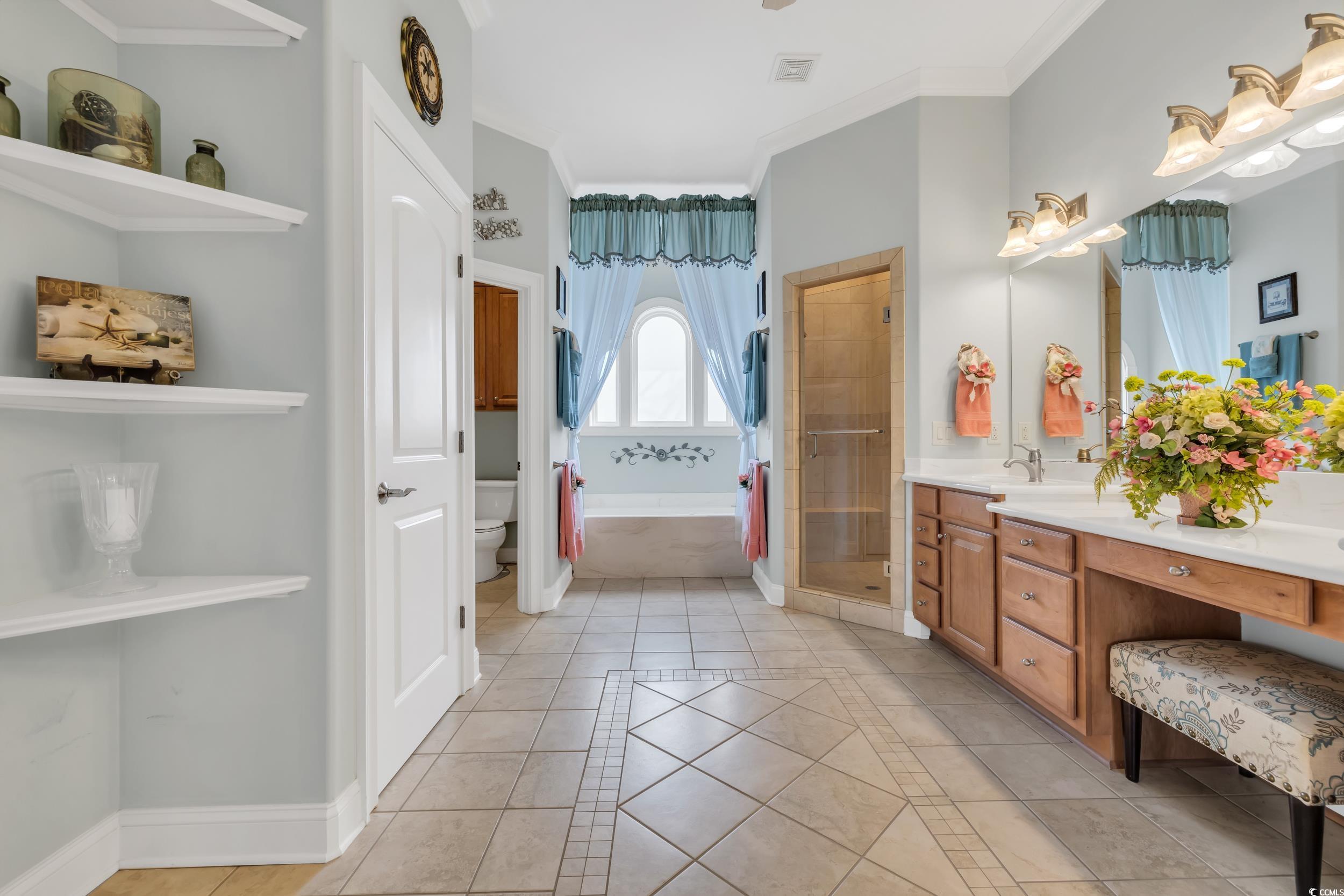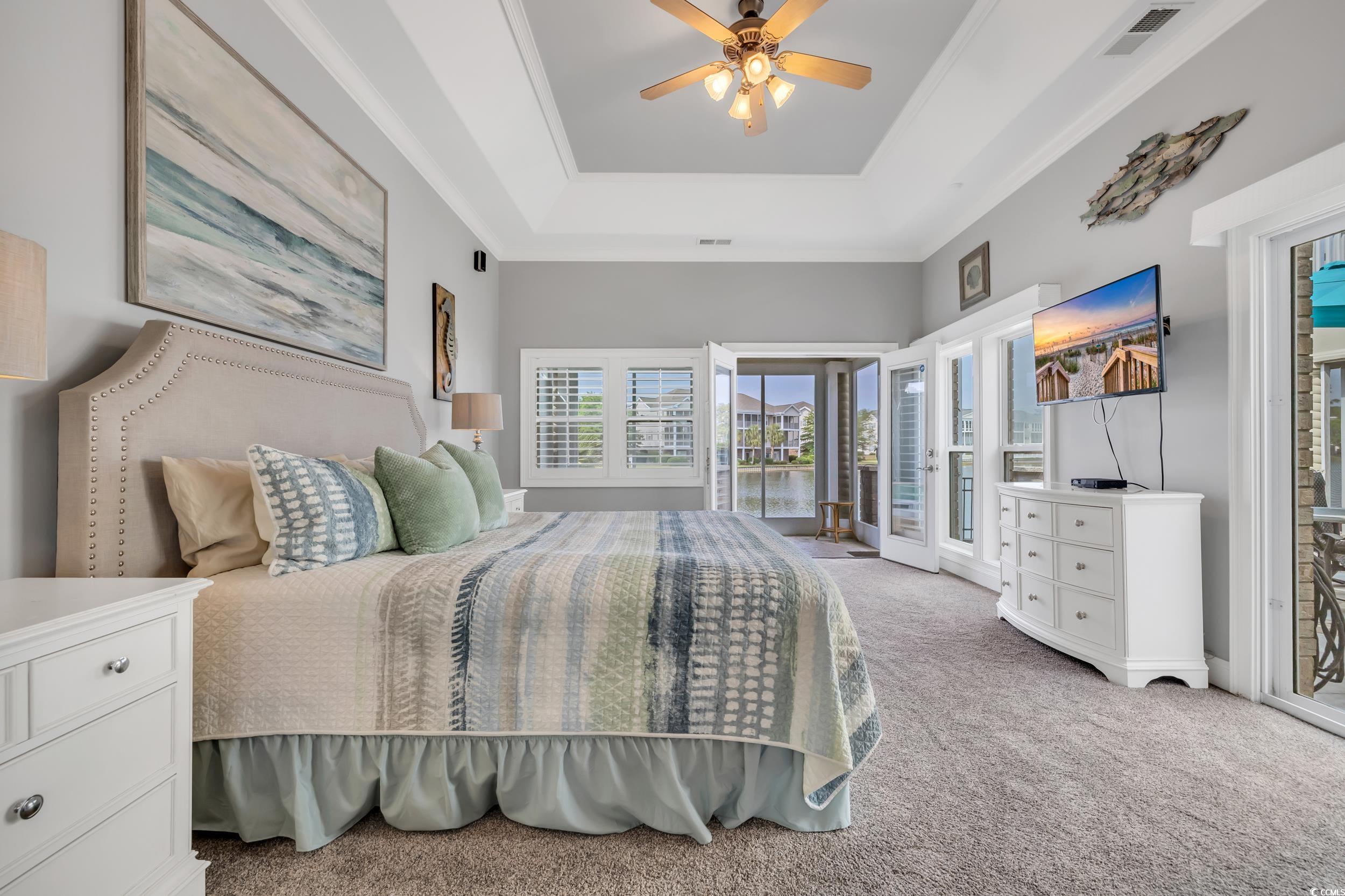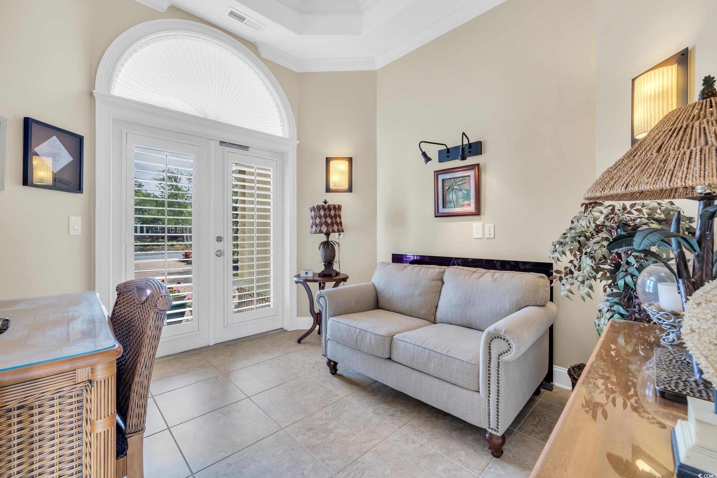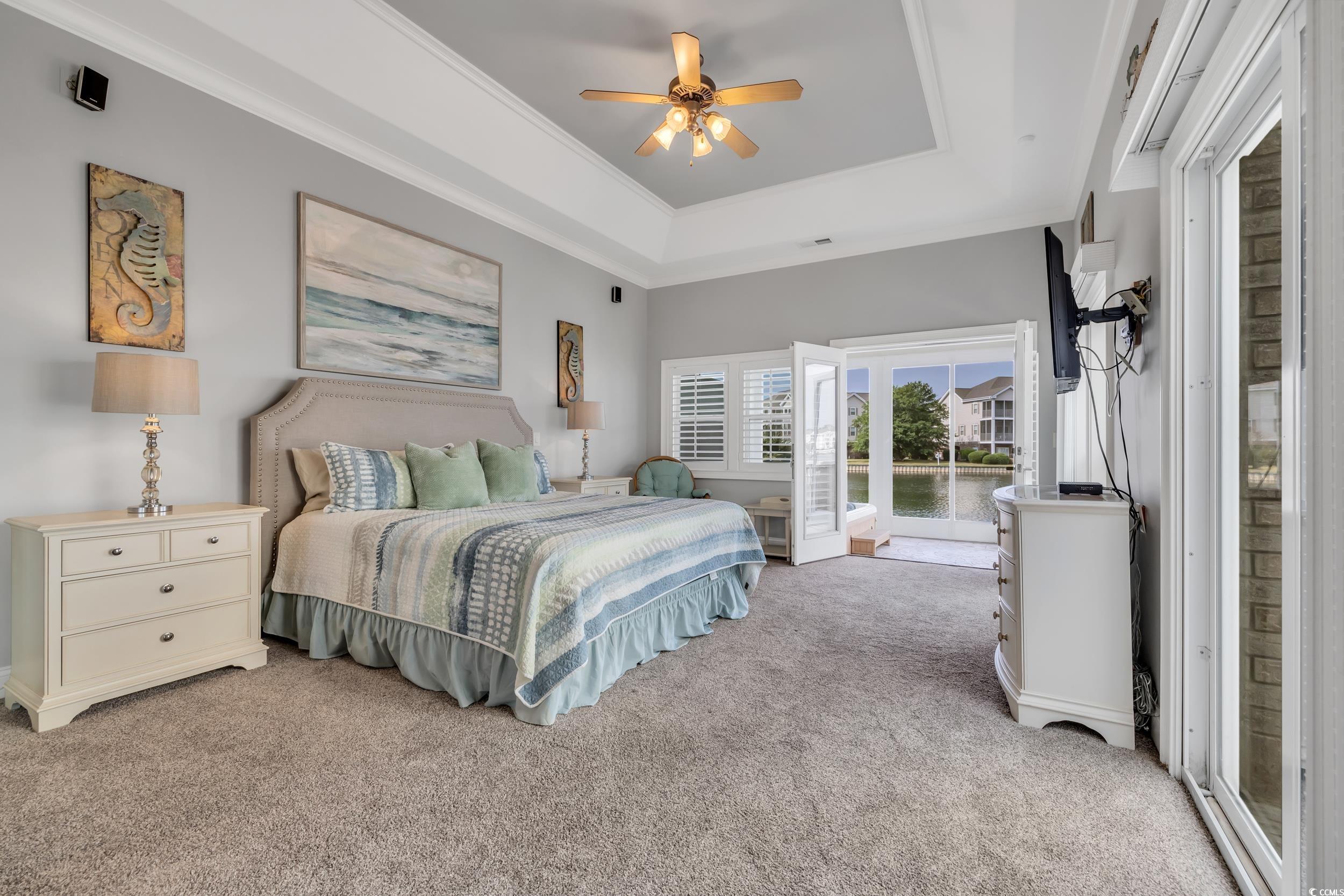 Discover the perfect blend of elegance and comfort in this stunning Mediterranean-style home, nestled on a lake in the premiere gated community of Seaside Plantation in North Myrtle Beach. Featuring meticulously landscaped gardens, palm trees and brick pavers, this stately waterfront residence creates a serene and inviting atmosphere. As you step into the grand foyer, you are greeted with architecture and elegance. The primary suite with its own private wing, includes a luxurious bathroom, custom walk in closet and enclosed spa retreat overlooking the water. The main level is spacious and includes an additional bedroom with en-suite and a dedicated office. The gourmet kitchen is a chef's delight, featuring updated quartzite counter tops and modern appliances, ideal for cooking and entertaining. A seamless flow carries you through the dining area and living room with soaring cathedral ceilings, gas fireplace and floor-to-ceiling windows that flood the home with natural light and spectacular water views. The second-floor features two bedrooms, a full bathroom and additional living space complete with a wet bar. The inviting second floor balcony provides an ideal retreat for guests seeking privacy and relaxation. For outdoor living, enjoy the screened porch retreat or step out to the private courtyard oasis that offers tranquility, making it ideal spot for entertaining or alfresco dining. This harmonious blend of indoor and outdoor living spaces ensures you can enjoy the serene surroundings year-round. Seaside Plantation is a premiere neighborhood that offers gated luxury living with amenities including a community center, swimming pool, heated spa and more. With just a short walk or golf cart ride to the beach, you're also minutes from local dining, shopping, golf and entertainment. Don't miss out on the opportunity to own this stunning coastal home. Call today to schedule your private showing!