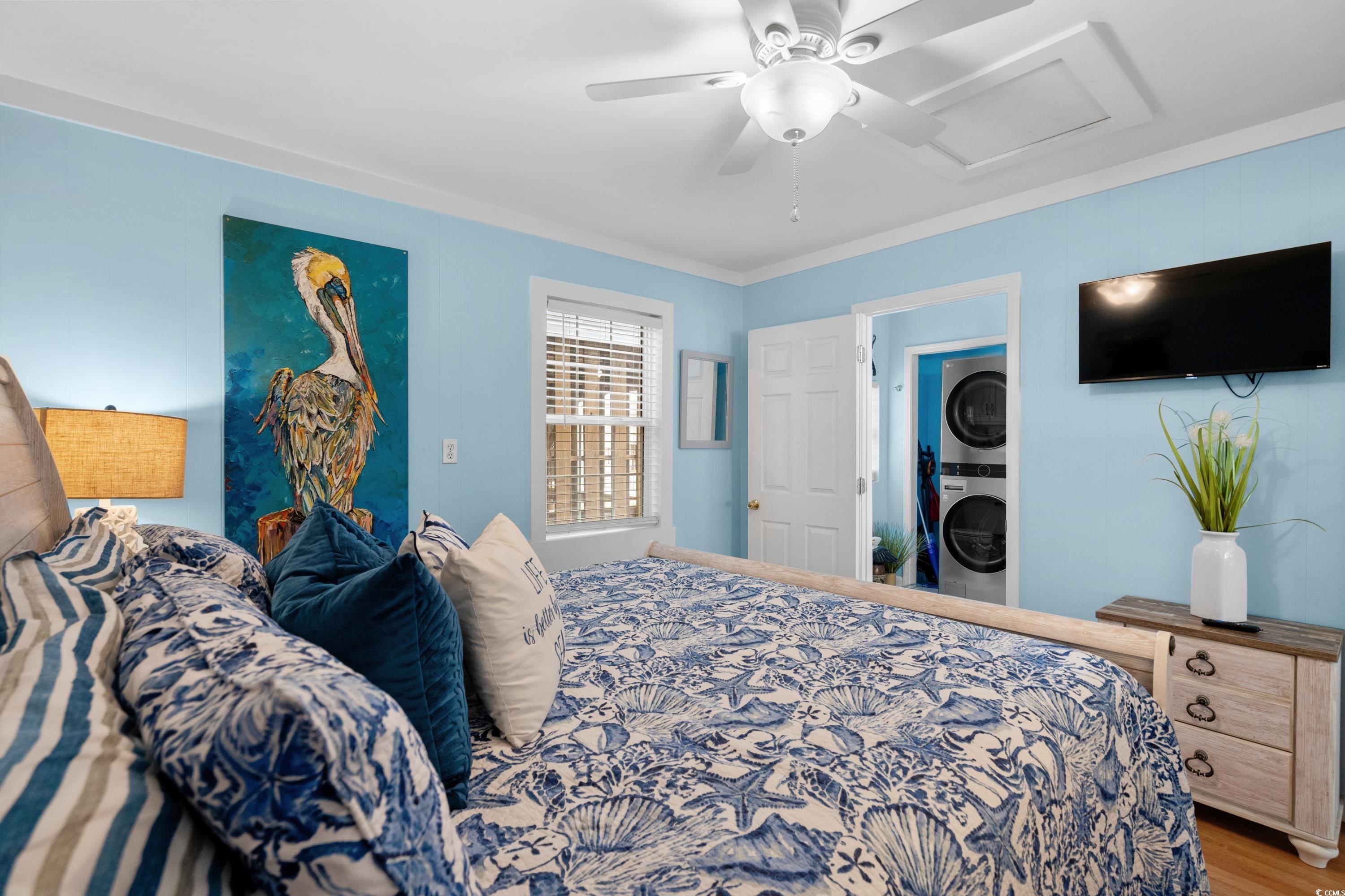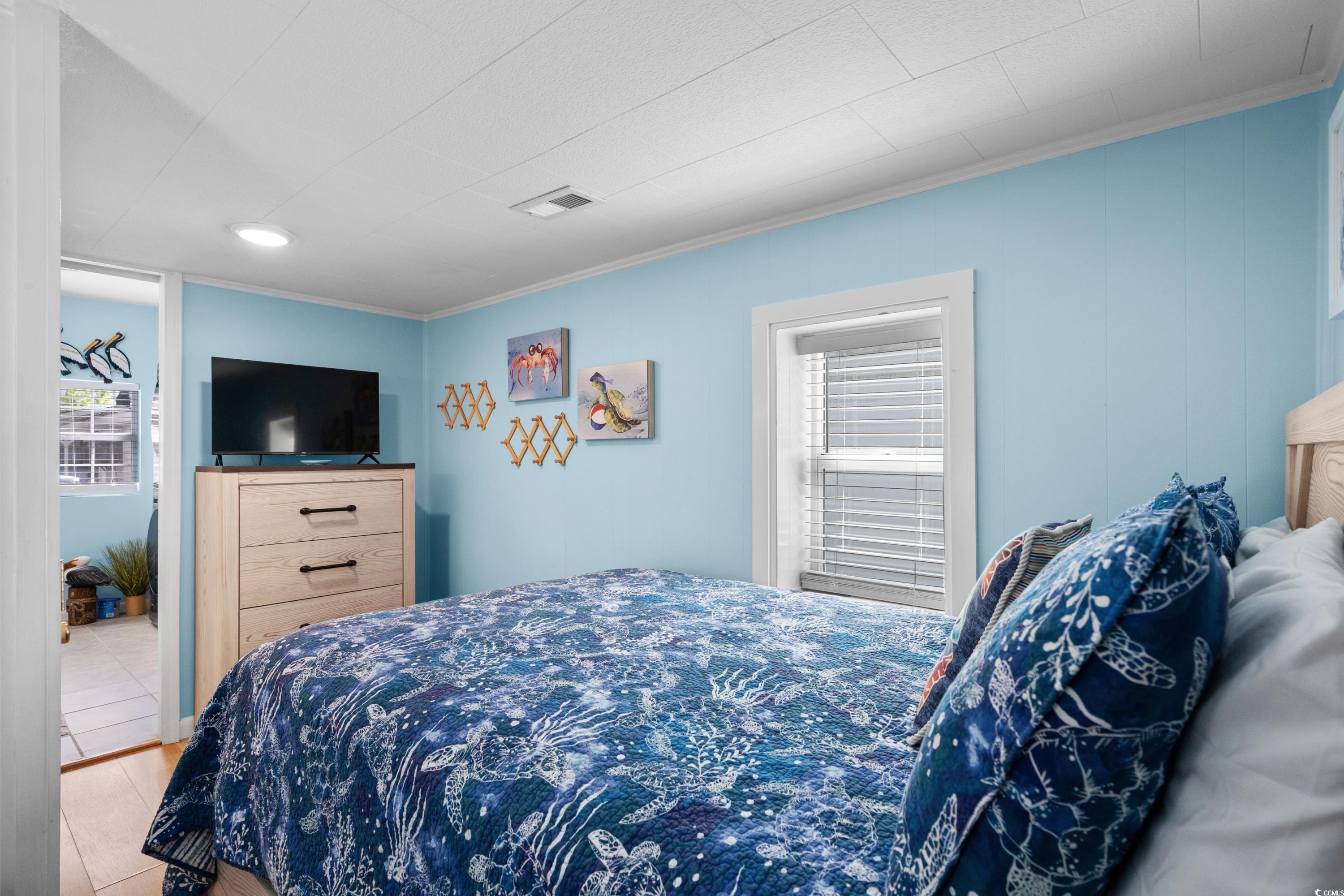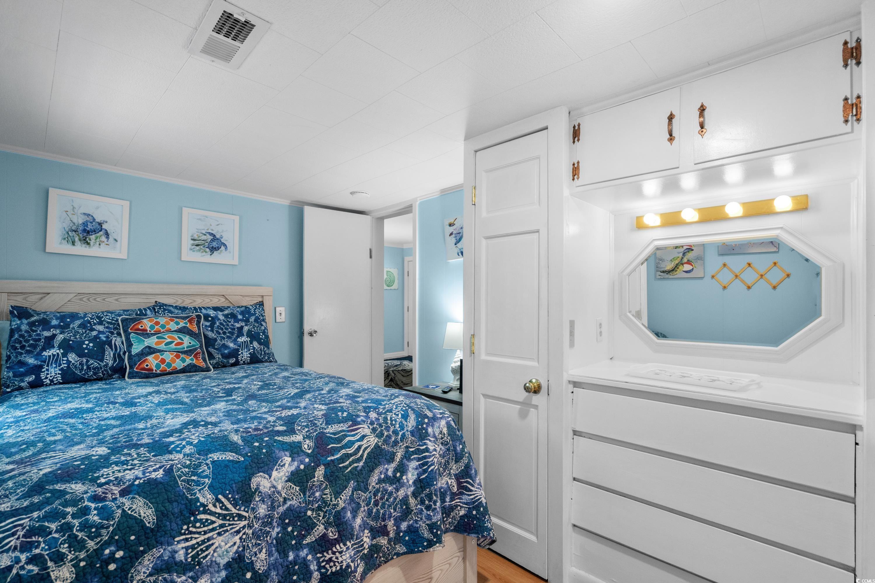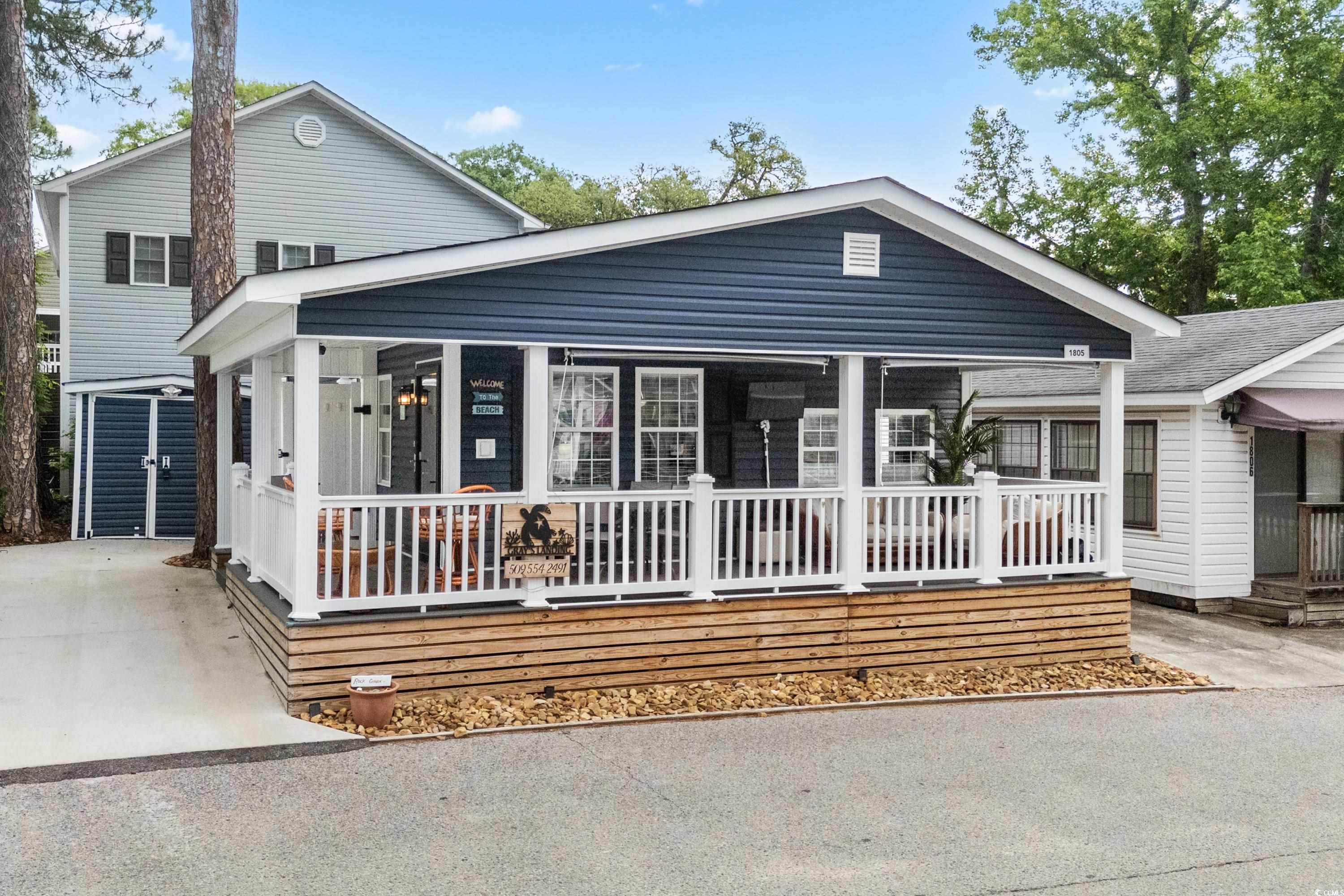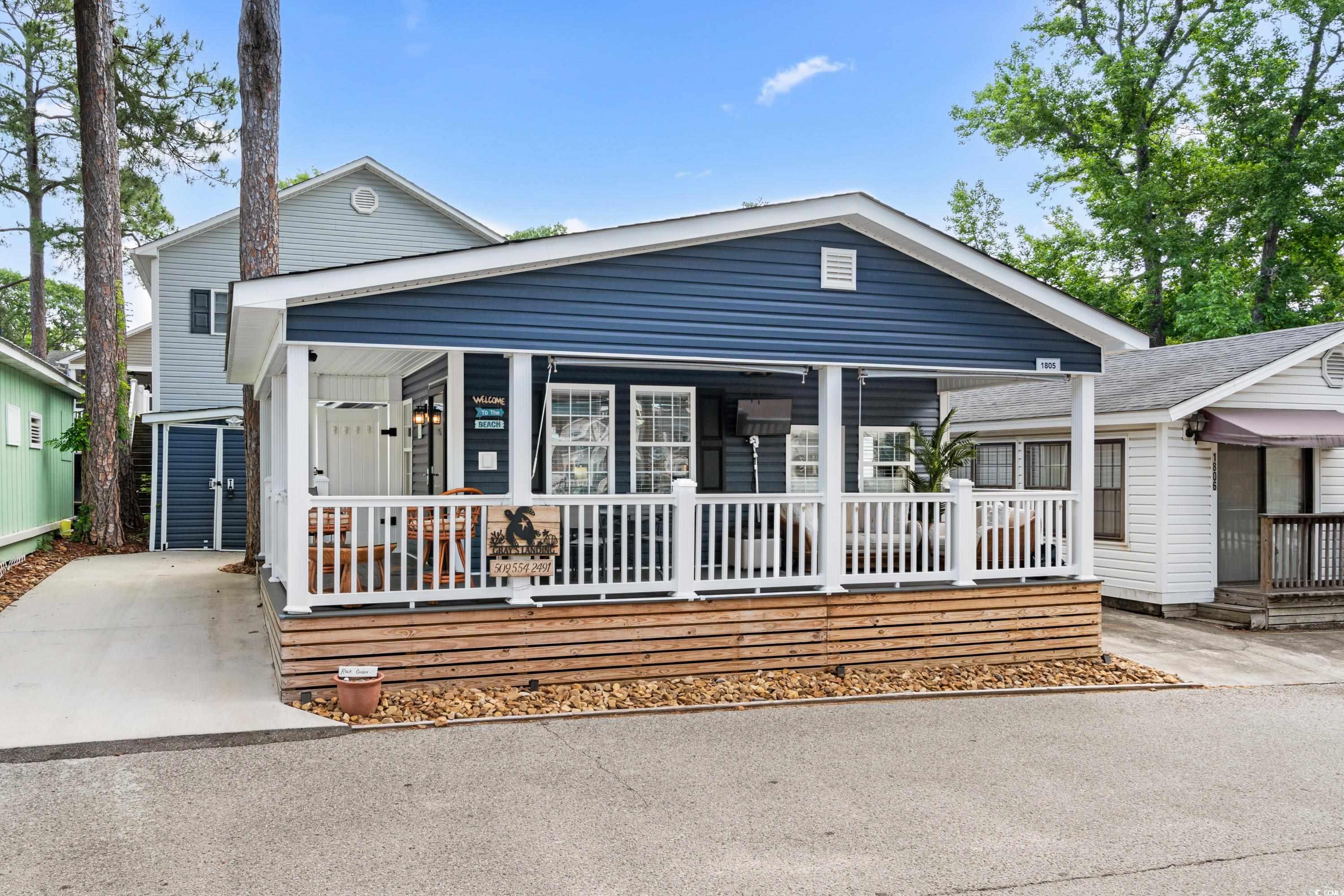 Completely remodeled 2 bedroom/1 bath property located in Ocean Lakes. 2023 improvements: New roof, vinyl siding, covered front porch, side porch, composite decking, underpinning, huge outdoor shower, water heater, granite counters, furniture (including outdoor furniture), paint, blinds, appliances including dishwasher and washer/dryer (2025), concrete driveway, lighting, ceiling fans, and dcor. This is a must see! Comfort, elegance, and front porch relaxation can be found here at site 1805 located within the gates of the award-winning Ocean Lakes Family Campground. With 2-bedroom, 1 full bathroom and a spacious kitchen with stainless steel appliances, this home is perfectly situated on the south side of the campground. Home offers a large and open living room, a generously proportioned kitchen with plenty of counter and prep space, and a fully updated bathroom with new (2025) washer/dryer. On the exterior of the home, you will be sure to love the large covered front porch, TV, and ceiling fan, a concrete driveway, and a spacious outdoor storage building. As you enter you have a large living room with dining area, off the living room is the updated kitchen with stainless steel appliances, granite counters, tile backsplash, and island. Bedroom #1 has a king size bed and connects to the full bath. Bedroom #2 is off the living room that also connects to the full bath with a sliding barn door. Enjoy relaxing on the huge covered front porch with TV and ceiling fan. Owner has installed sun screens to enjoy the porch and provide shade on those hot summer afternoons. Outside storage building offers plenty of space for a golf cart and additional storage. Home is being sold fully furnished (new washer/dryer is negotiable, golf cart isn't included but may be sold separately). This home is perfectly situated for outdoor entertainment after those long days at the beach. The kitchen offers an island with granite counter. The possibilities of this home are endless! Don't let this one pass-by! Home is conveniently located close to all the amazing amenities Ocean Lakes has to offer! Amenities included are indoor/outdoor pools, lazy river, waterpark, mini-golf, arcade, basketball courts, volleyball courts, and much more! Come check out this property today! All measurements are approximate and not guaranteed. Buyer responsible for verification.