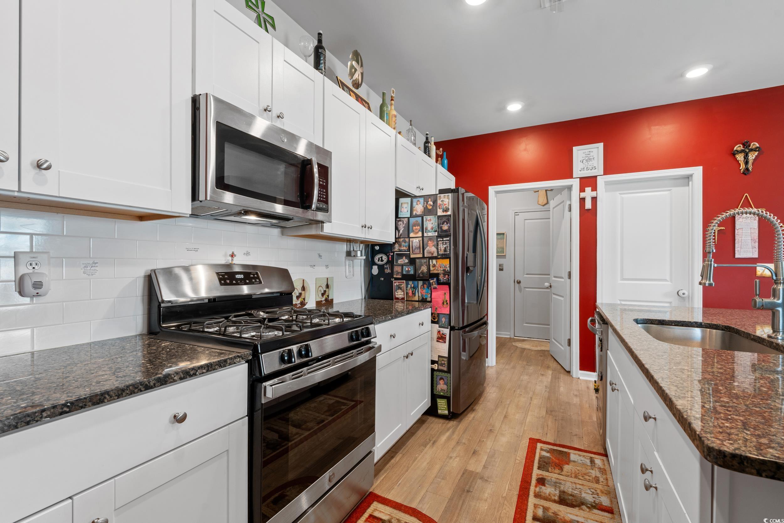 Ready to plunge into a world bursting with COLOR? Adore vibrant vibes? This home is your technicolor dreamboat! Not your cup of tea? No worriesits just a paint job away from becoming your canvas! Picture this: A majestic two-story abode with a sky-high 20 ft ceiling entrance, 5 bedrooms, a duo of full baths, and a nifty powder room. Enter an open-concept paradise with sleek 36"" white cabinets, a swanky 3x6 subway tile backsplash, and dazzling granite countertops in the kitchen. Shaw laminate floors glide through the main area, alongside GEs stainless steel gang: a gas range, microwave, dishwasher, and disposal. Get set for LED extravaganza with recessed lighting, Moen fixtures, soft-close toilets, and a Rinnai tankless water heater. The cozy living room is perfect for hosting fun shenanigans, complete with sliding glass doors to a sun-kissed backyard. The first floor Owners Suite is a 14'x16' treasure, featuring a lavish Master Bath with an elevated double vanity, walk-in shower, and closet fit for a fashionista. Upstairs, the loft area turns into a playland, flanked with 4 spacious bedrooms. The second bathroom is efficiency central with a double vanity and separate shower nook. Extra goodies include a fully fenced backyard, a top-tier security system with a carbon monoxide detector, fire alarm, motion sensors, and a Ring doorbell camera keeps you secure. Delight in low HOA fees at The Retreat at North Village, just 7.8 miles from North Myrtle Beach and minutes from dining and shopping galore. Dont let this gem escape, book your tour today!