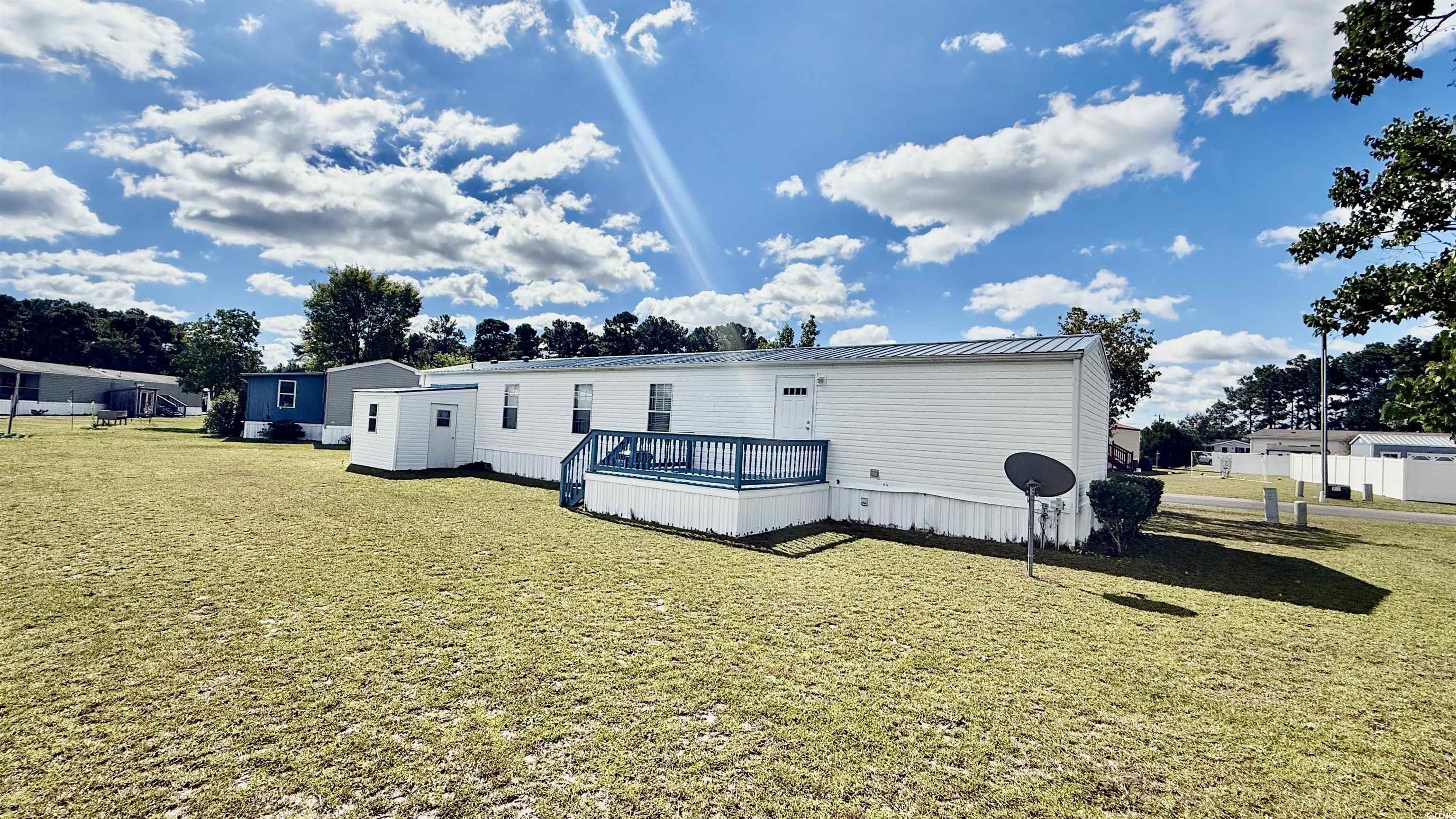 Situated on leased land, this immaculate home is in the lovely neighborhood of Carolina Tides. This beautiful 1997 home looks like it is brand new. Well maintained and very spacious. Featurung 3 bedroom and 2 baths, this 980 sq ft home is perfect for anyone that wants to be close to historic downtown Conway, Myrtle Beach, Coastal Carolina University, as well as be close to medical facilities, shopping, and dining. This home offers a split floor plan, a spacious backyard, and the nice attached outdoor storage shed will surly come in handy. The neighborhood offers a great swimming pool, and kids playground. Make your showing request today. Call your agent or the listing agent for more information. Carolina Tides is offering 6 Months FREE Lot Rent to new buyers who go under contract before December 31, 2025.